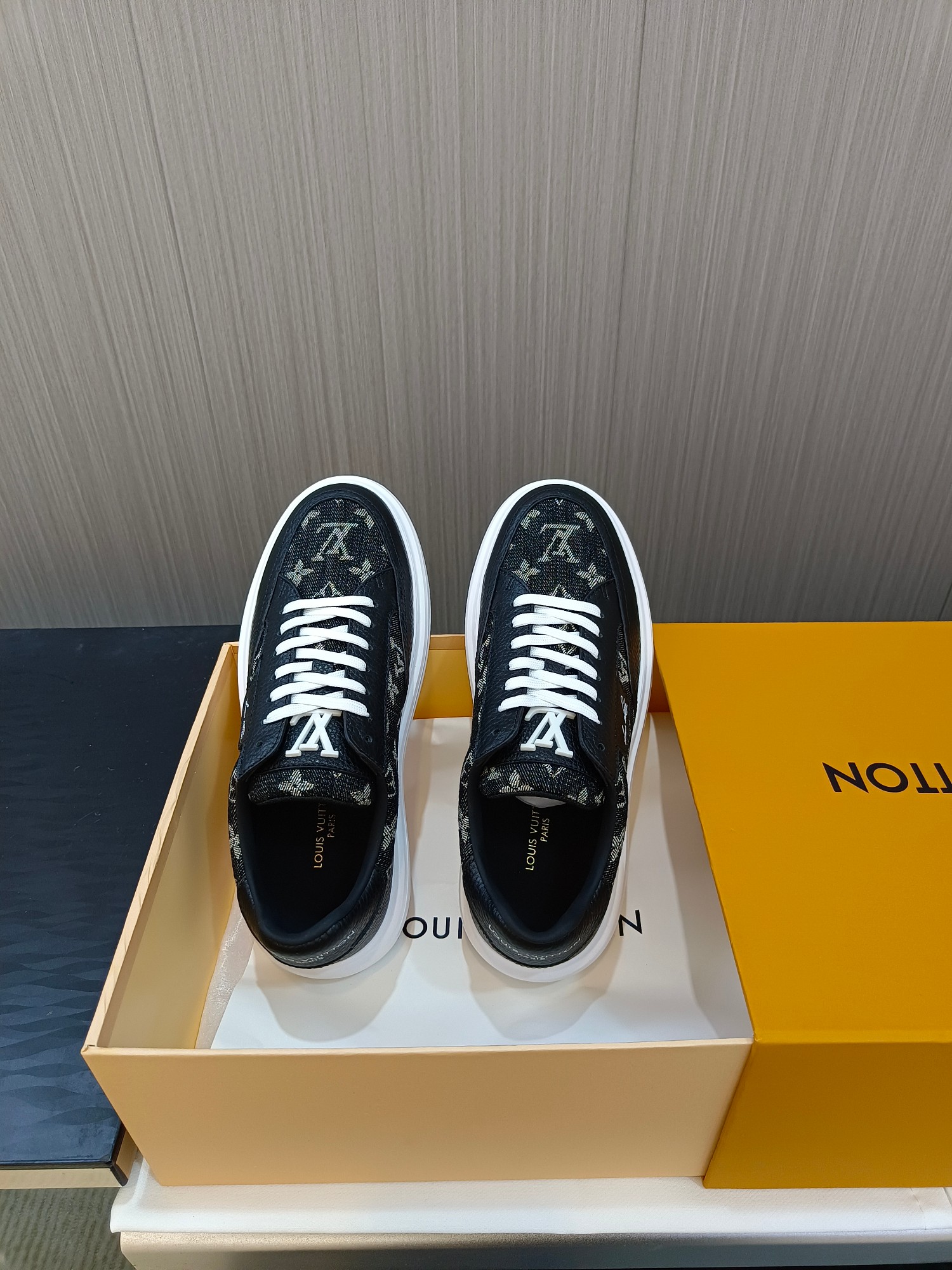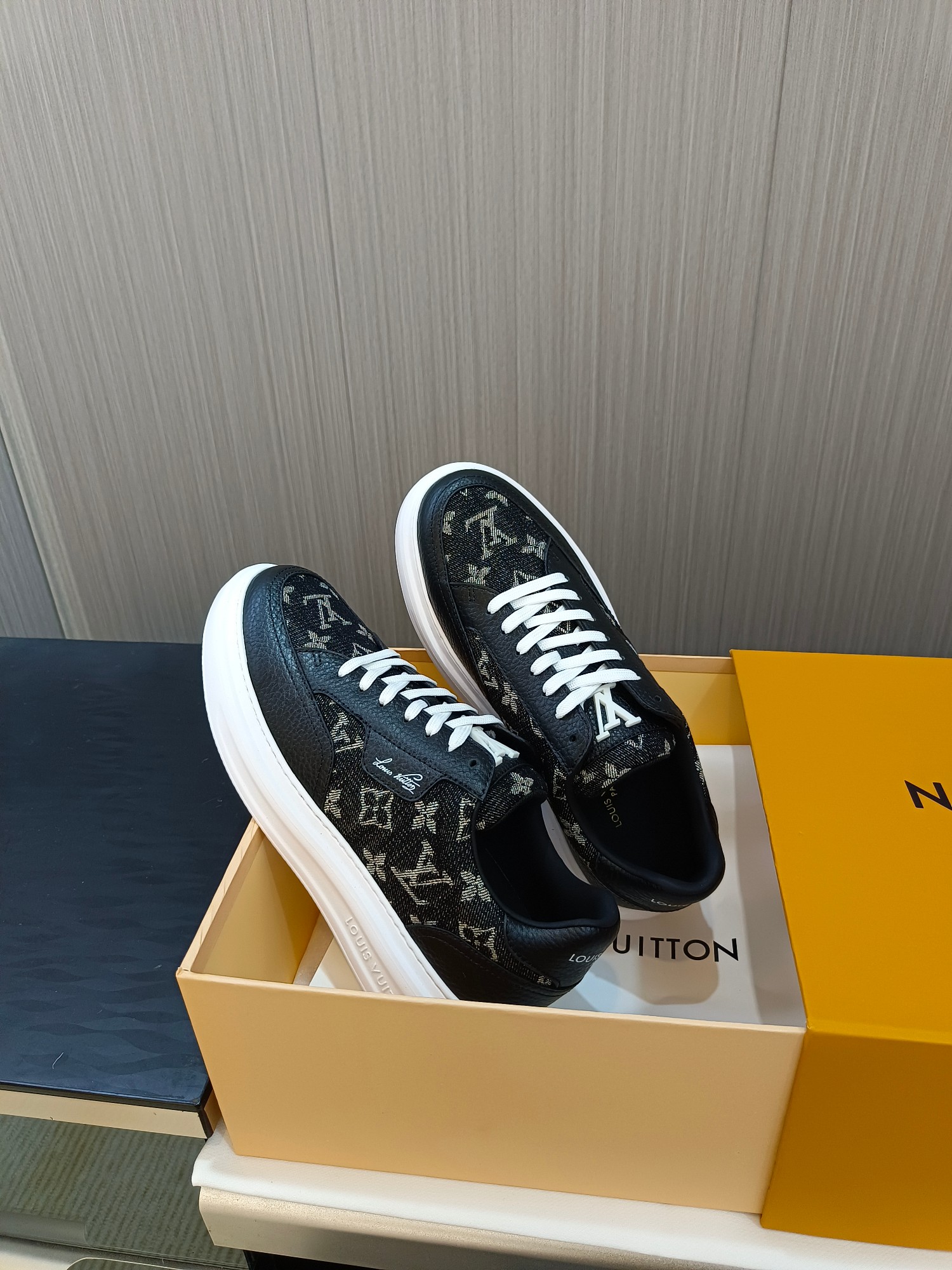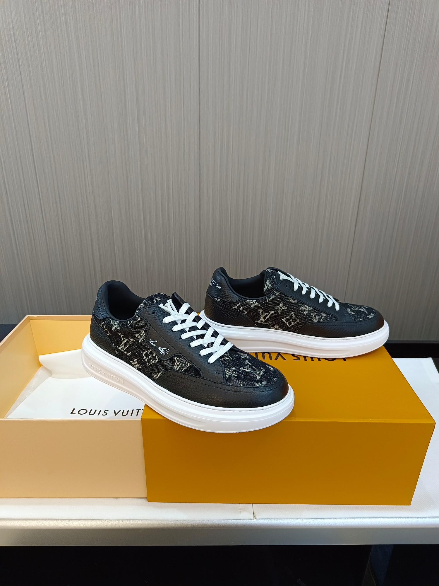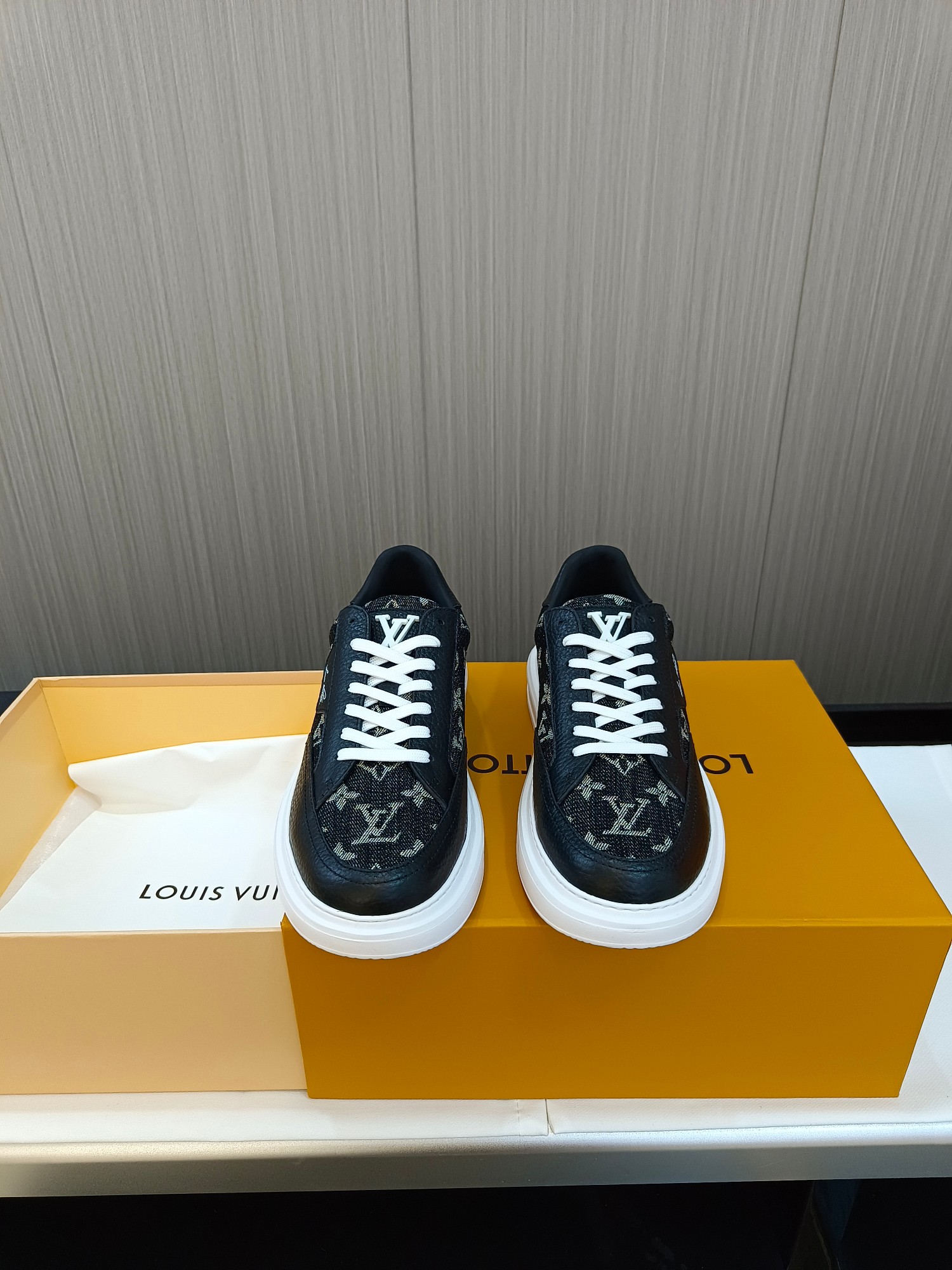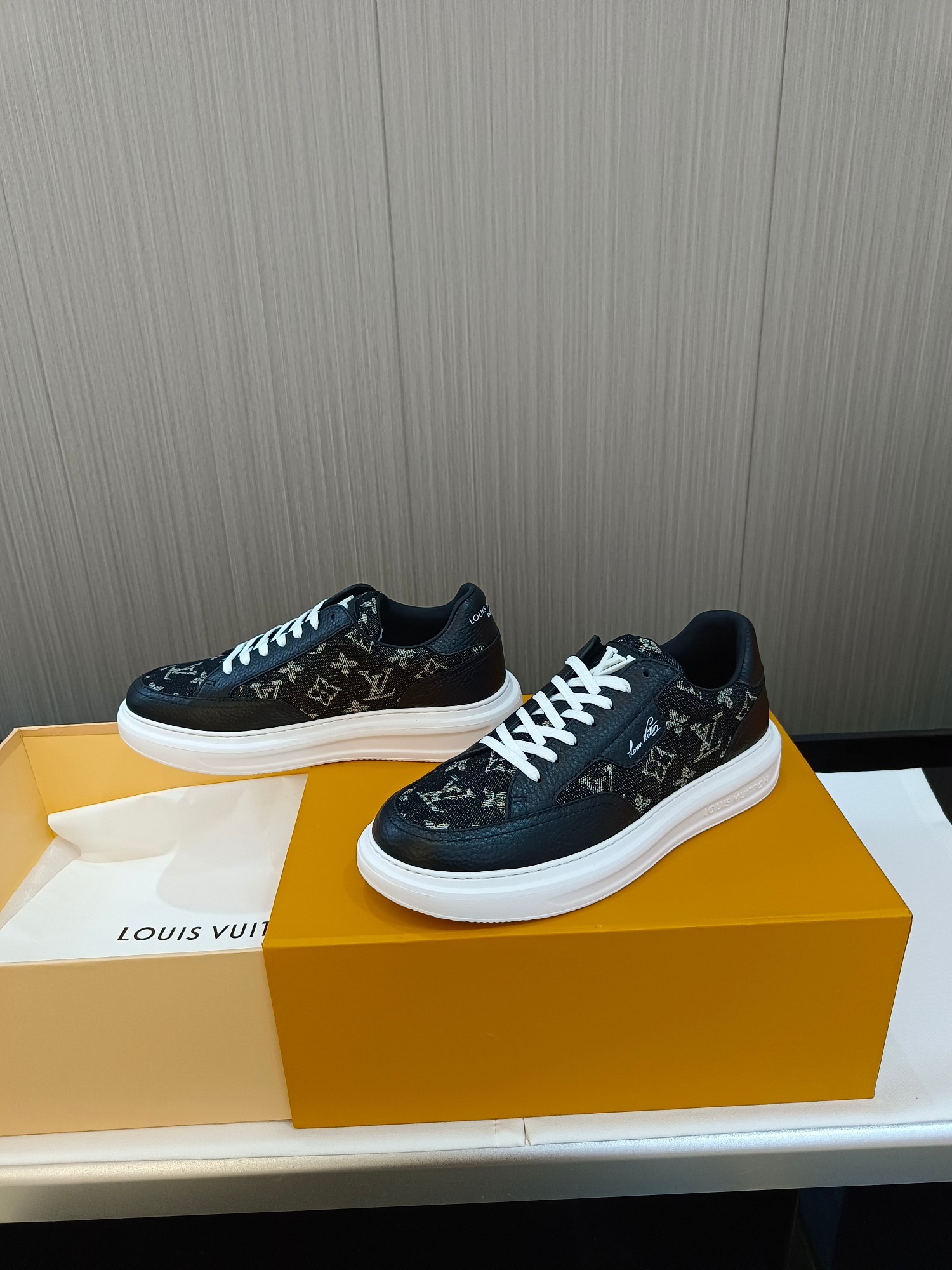 这款鞋子是AAAAA 1:1 质量 (非常棒). 使用了和原版一模一样的材料. 商标部分也保持了和路易威登/Louis Vuitton一样. 图片拍摄是实物鞋子拍摄, 您所收到的实物保证和我们图片一模一样.