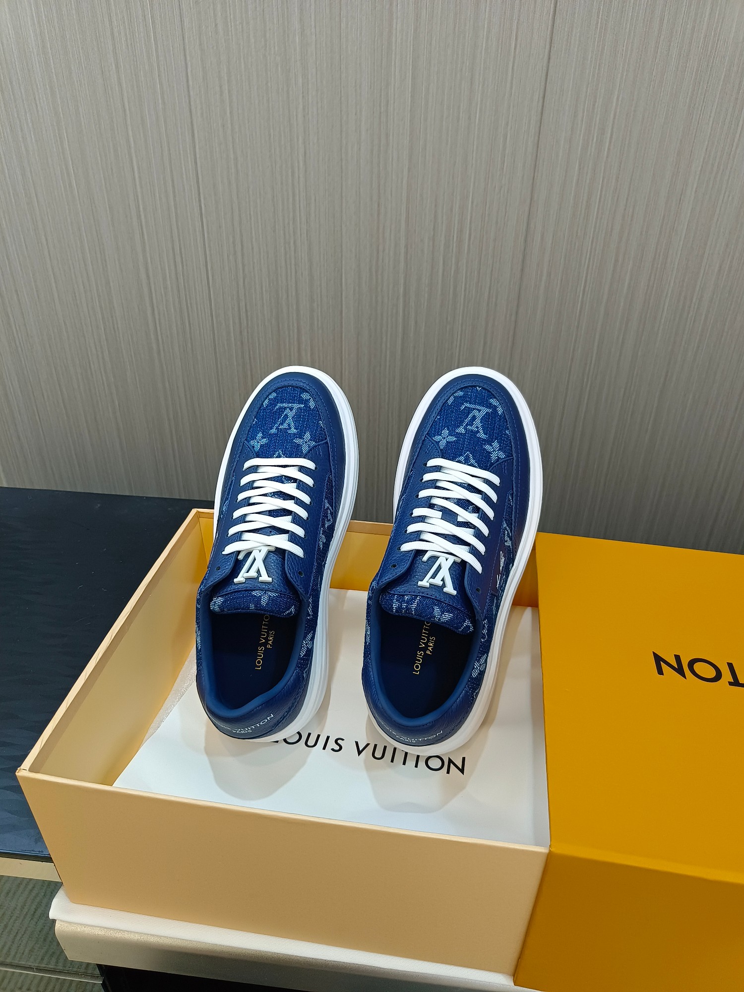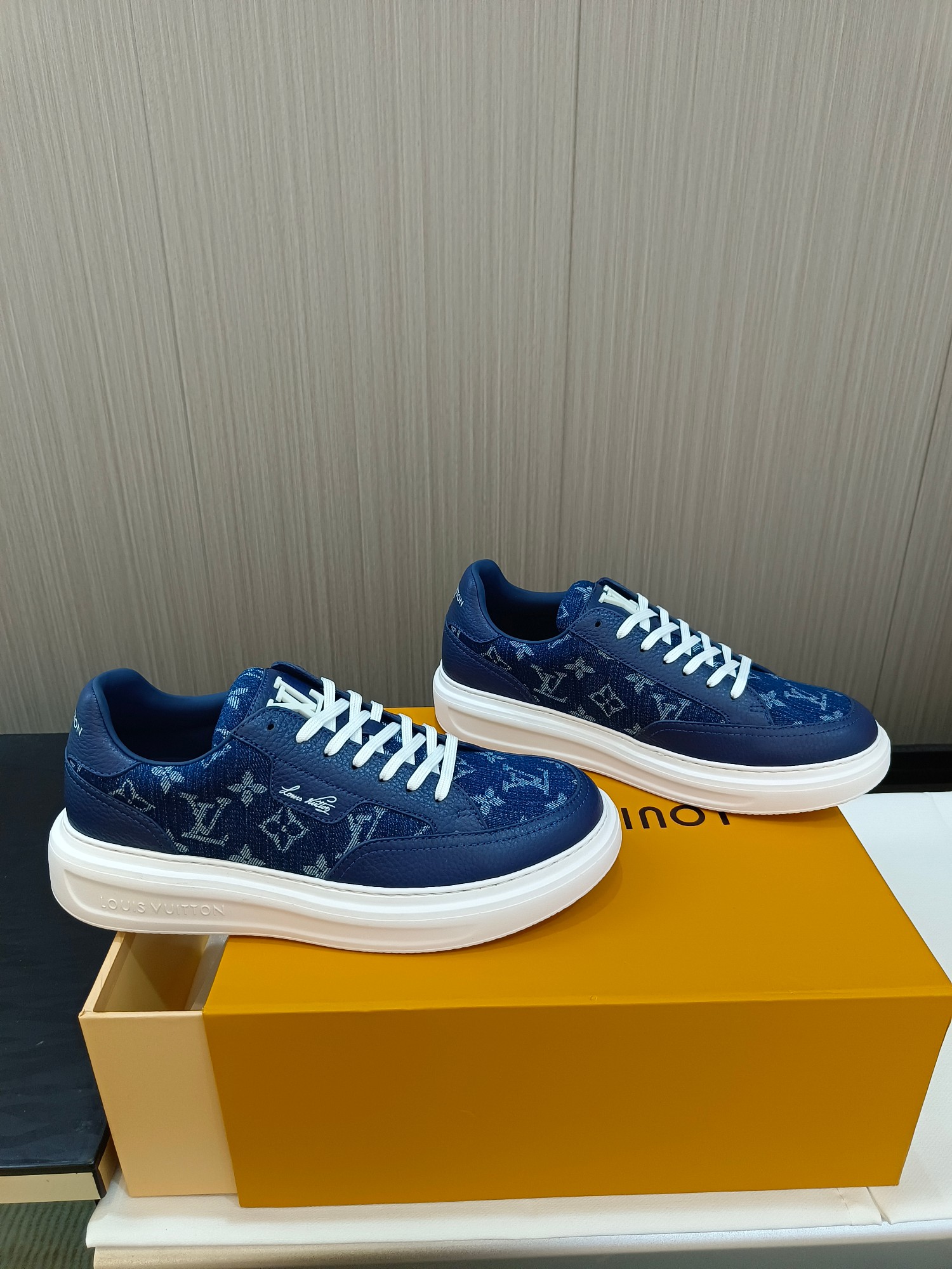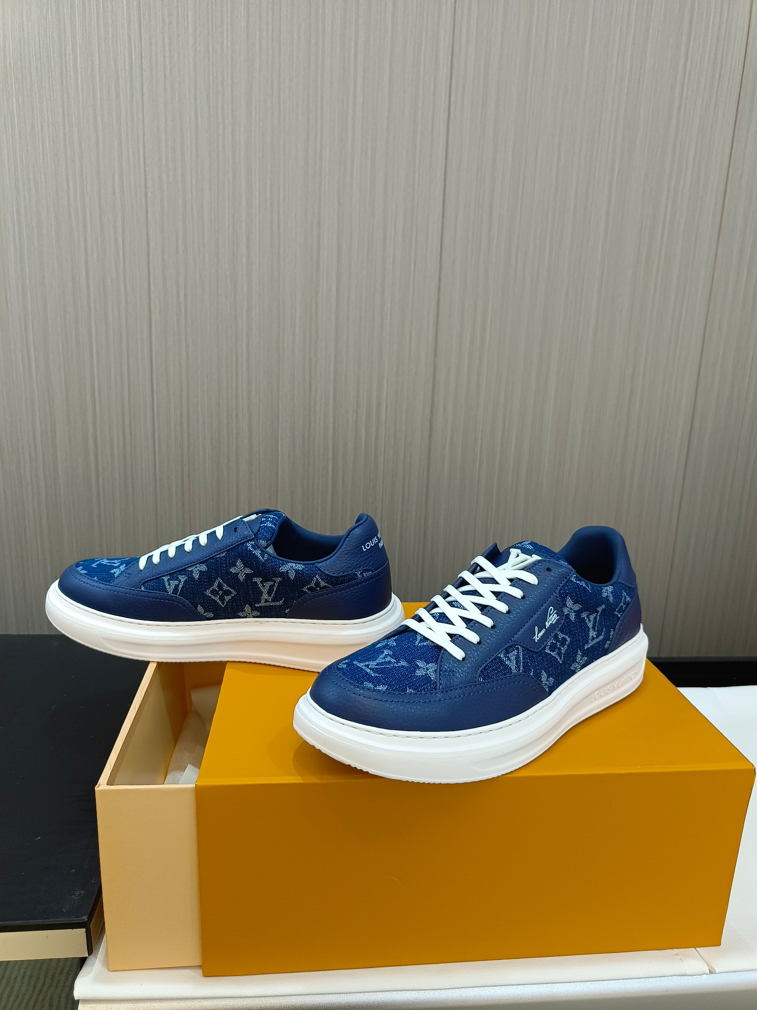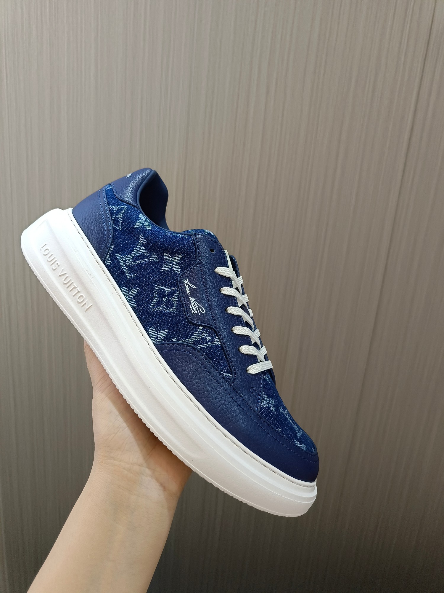 这款鞋子是AAAAA 1:1 质量 (非常棒). 使用了和原版一模一样的材料. 商标部分也保持了和路易威登/Louis Vuitton一样. 图片拍摄是实物鞋子拍摄, 您所收到的实物保证和我们图片一模一样.