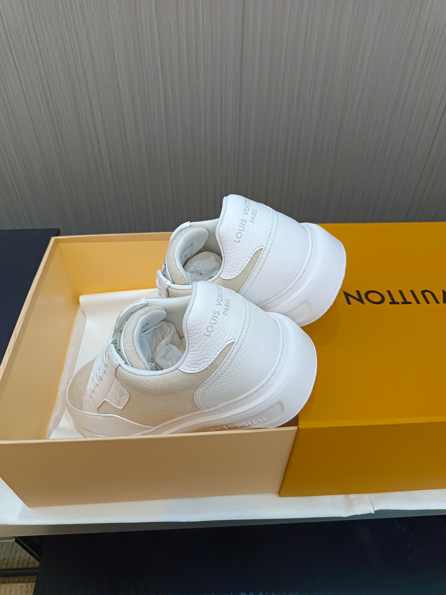 这款鞋子是AAAAA 1:1 质量 (非常棒). 使用了和原版一模一样的材料. 商标部分也保持了和路易威登/Louis Vuitton一样. 图片拍摄是实物鞋子拍摄, 您所收到的实物保证和我们图片一模一样.