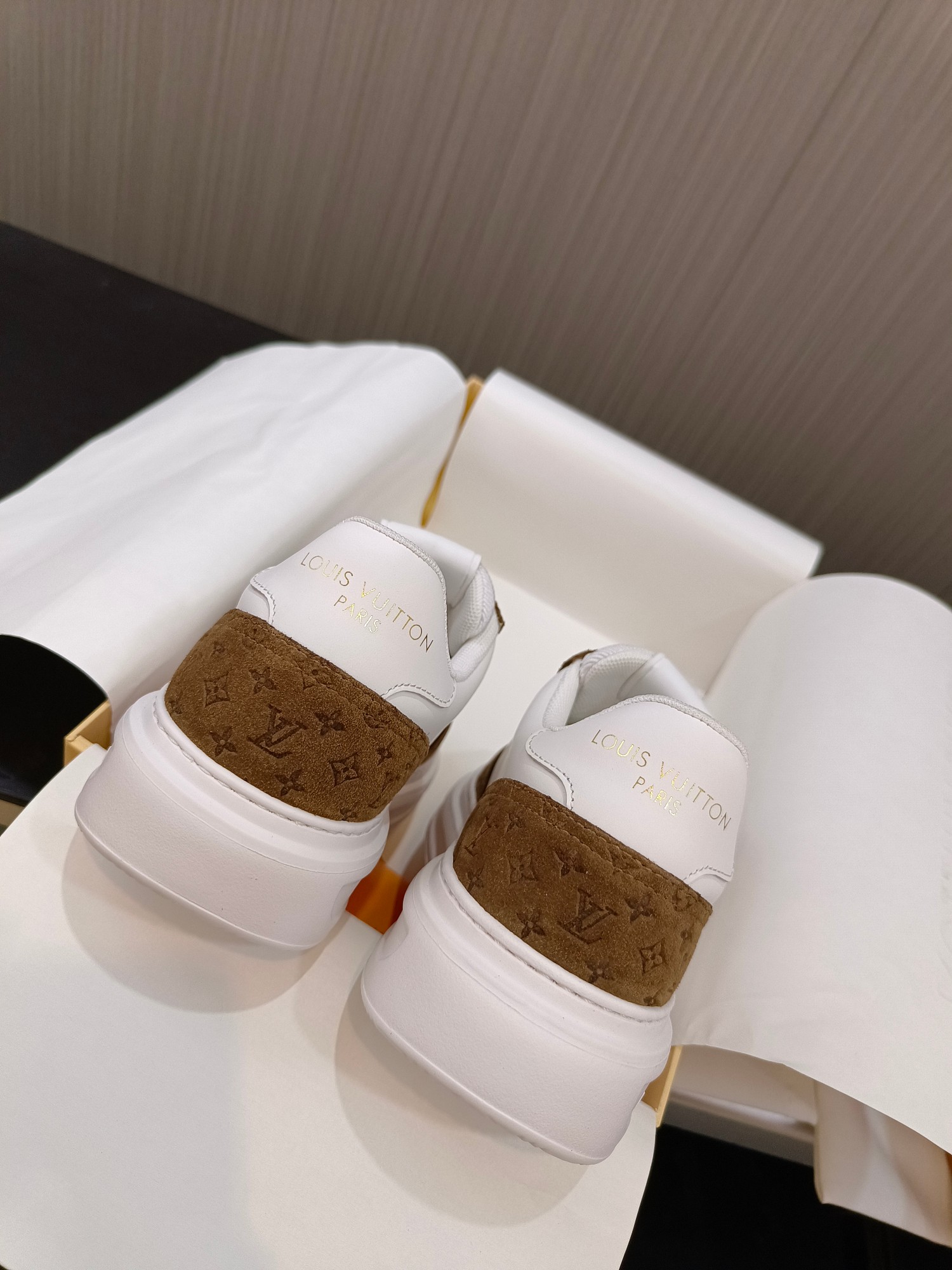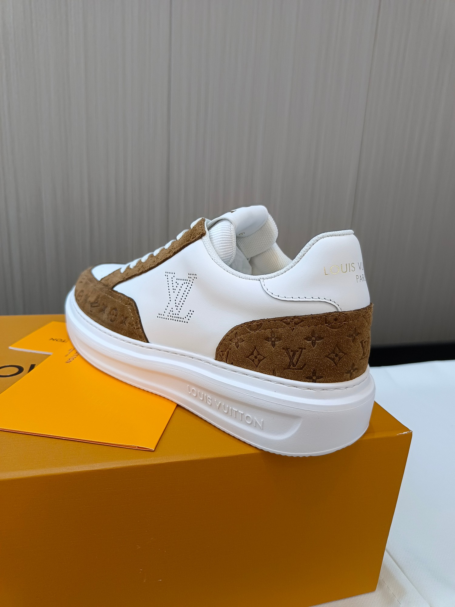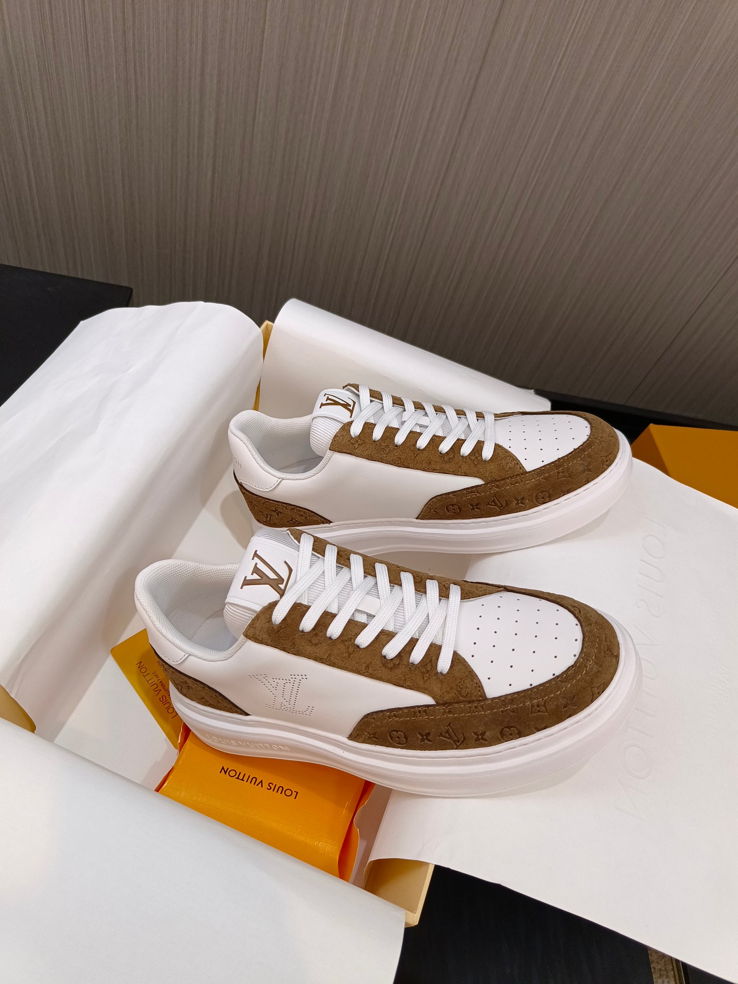 这款鞋子是AAAAA 1:1 质量 (非常棒). 使用了和原版一模一样的材料. 商标部分也保持了和路易威登/Louis Vuitton一样. 图片拍摄是实物鞋子拍摄, 您所收到的实物保证和我们图片一模一样.