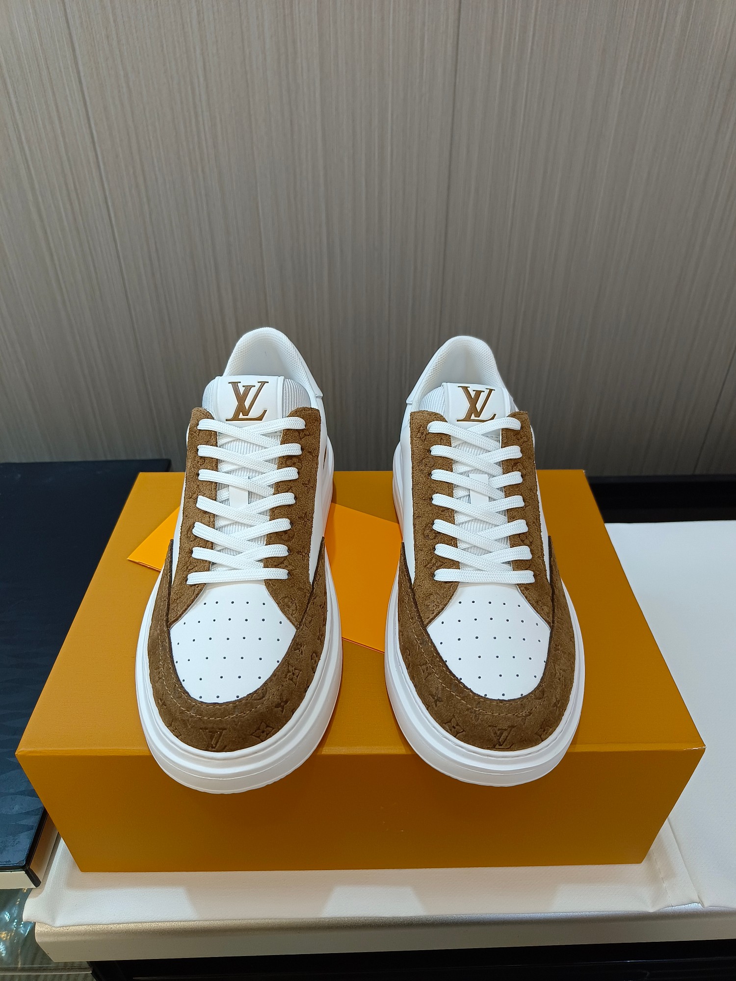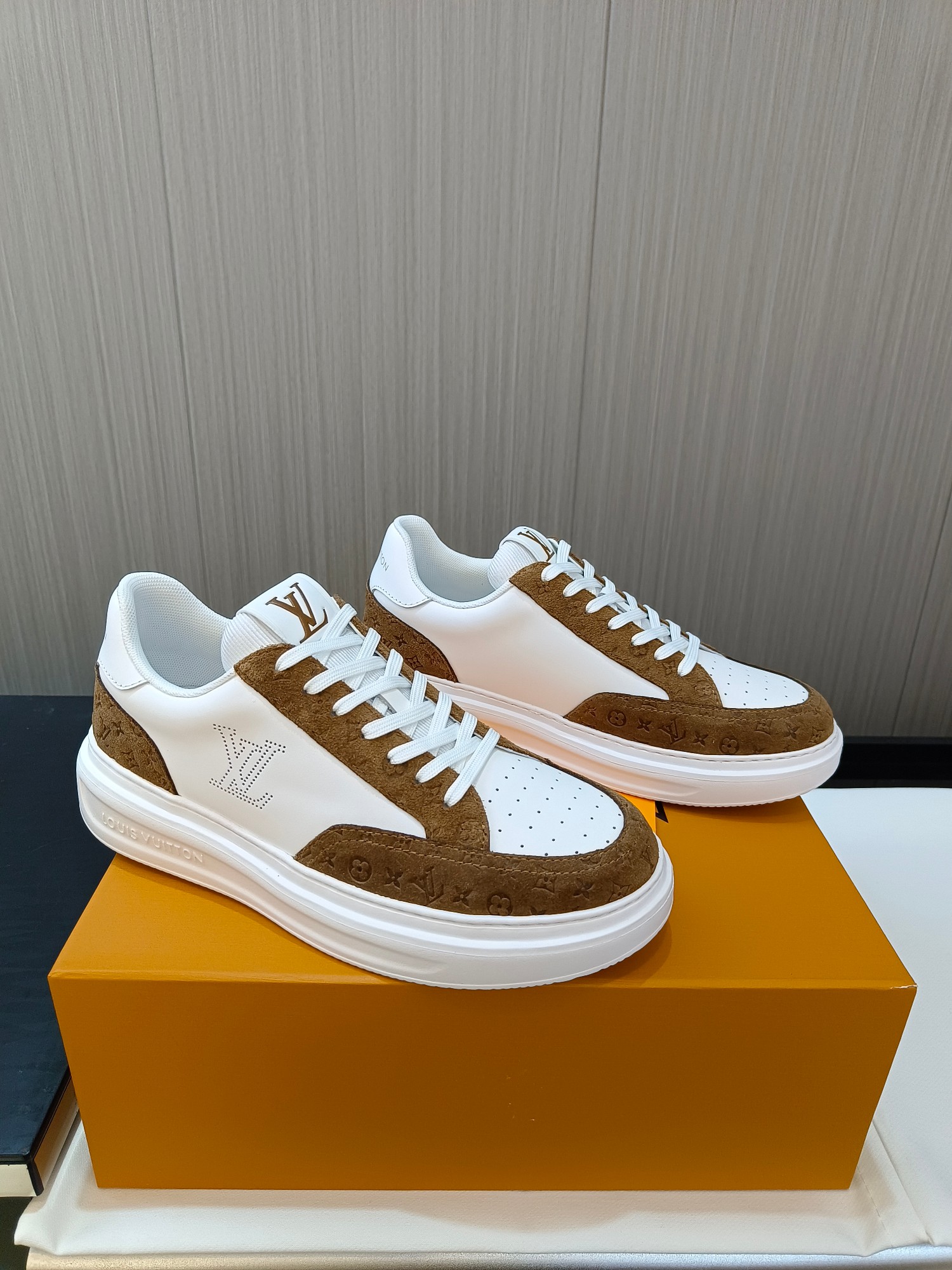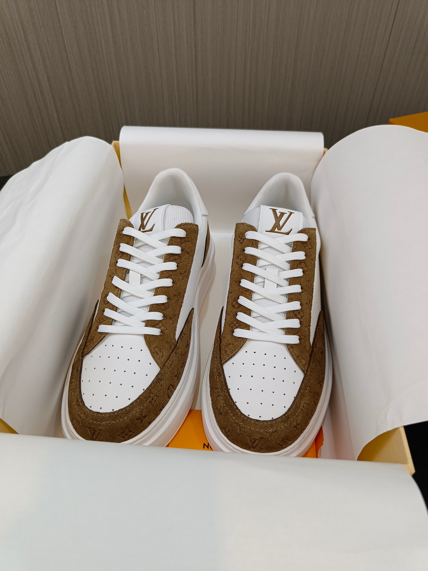 这款鞋子是AAAAA 1:1 质量 (非常棒). 使用了和原版一模一样的材料. 商标部分也保持了和路易威登/Louis Vuitton一样. 图片拍摄是实物鞋子拍摄, 您所收到的实物保证和我们图片一模一样.