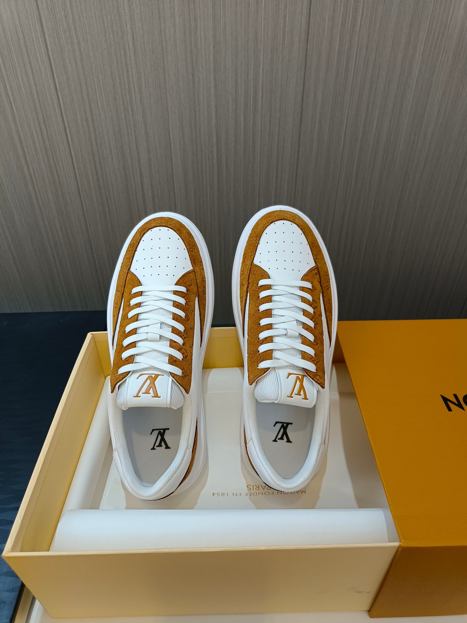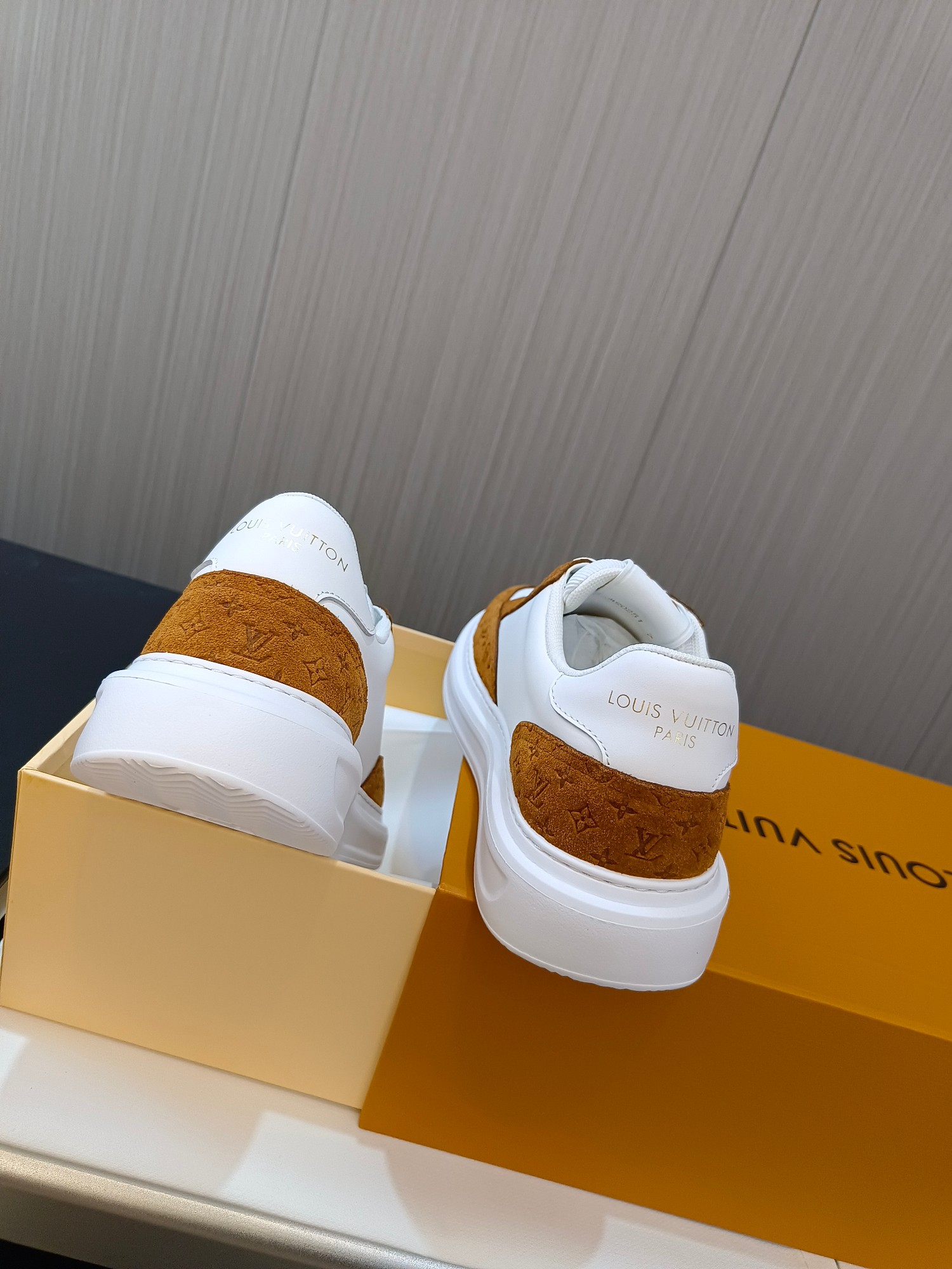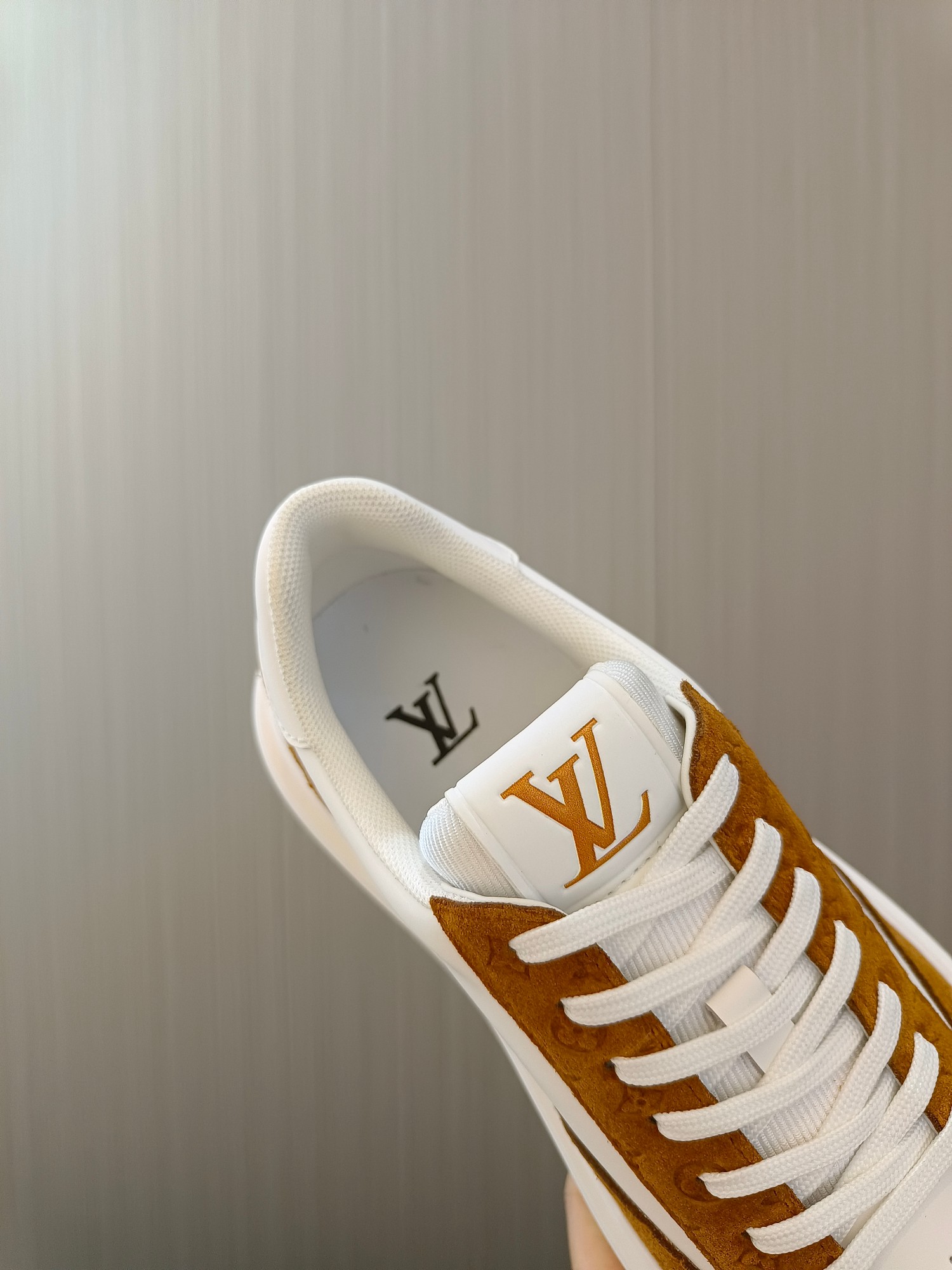 这款鞋子是AAAAA 1:1 质量 (非常棒). 使用了和原版一模一样的材料. 商标部分也保持了和路易威登/Louis Vuitton一样. 图片拍摄是实物鞋子拍摄, 您所收到的实物保证和我们图片一模一样.