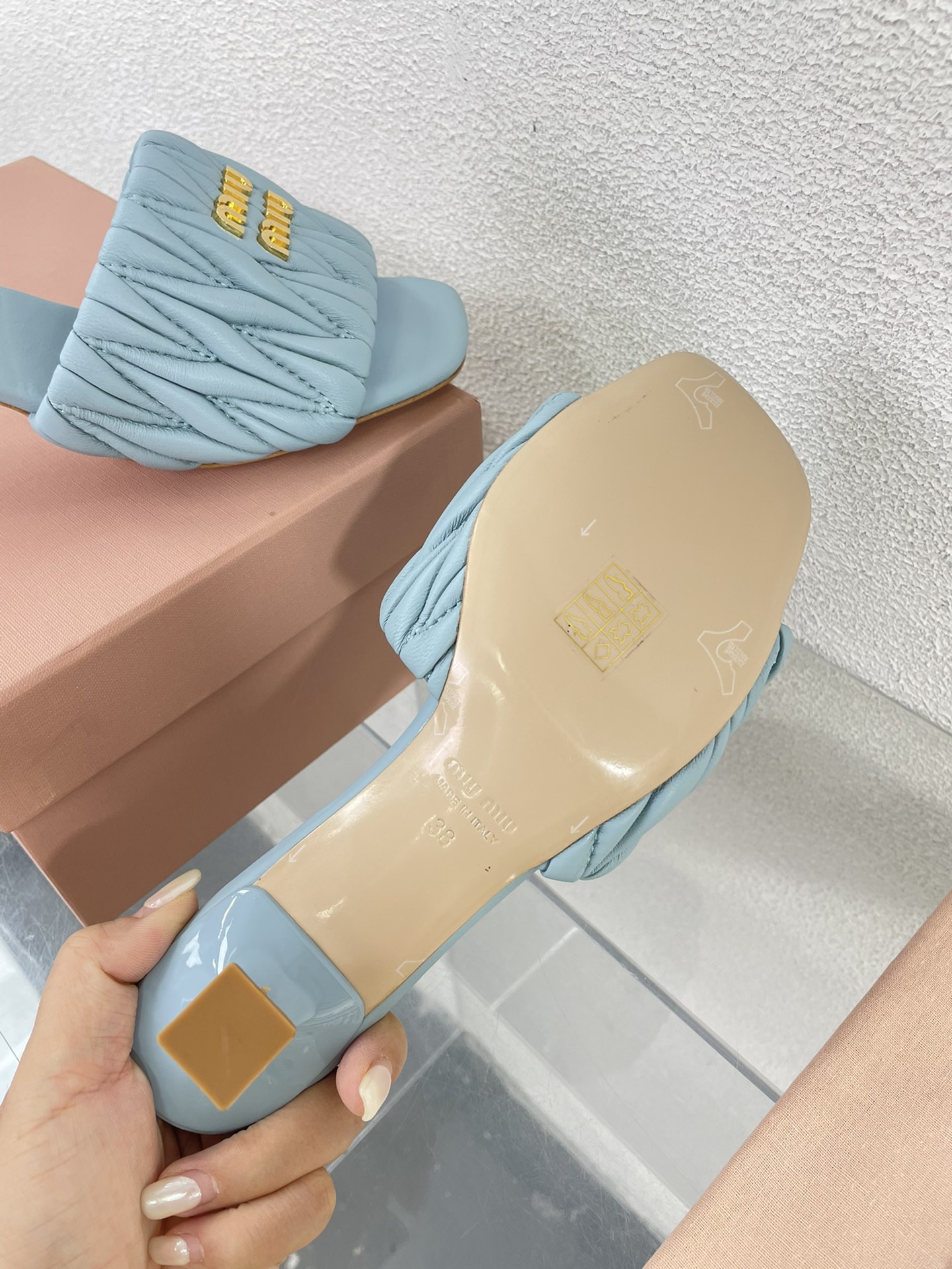 这款鞋子是AAAAA 1:1 质量 (非常棒). 使用了和原版一模一样的材料. 商标部分也保持了和缪缪/Miu Miu一样. 图片拍摄是实物鞋子拍摄, 您所收到的实物保证和我们图片一模一样.