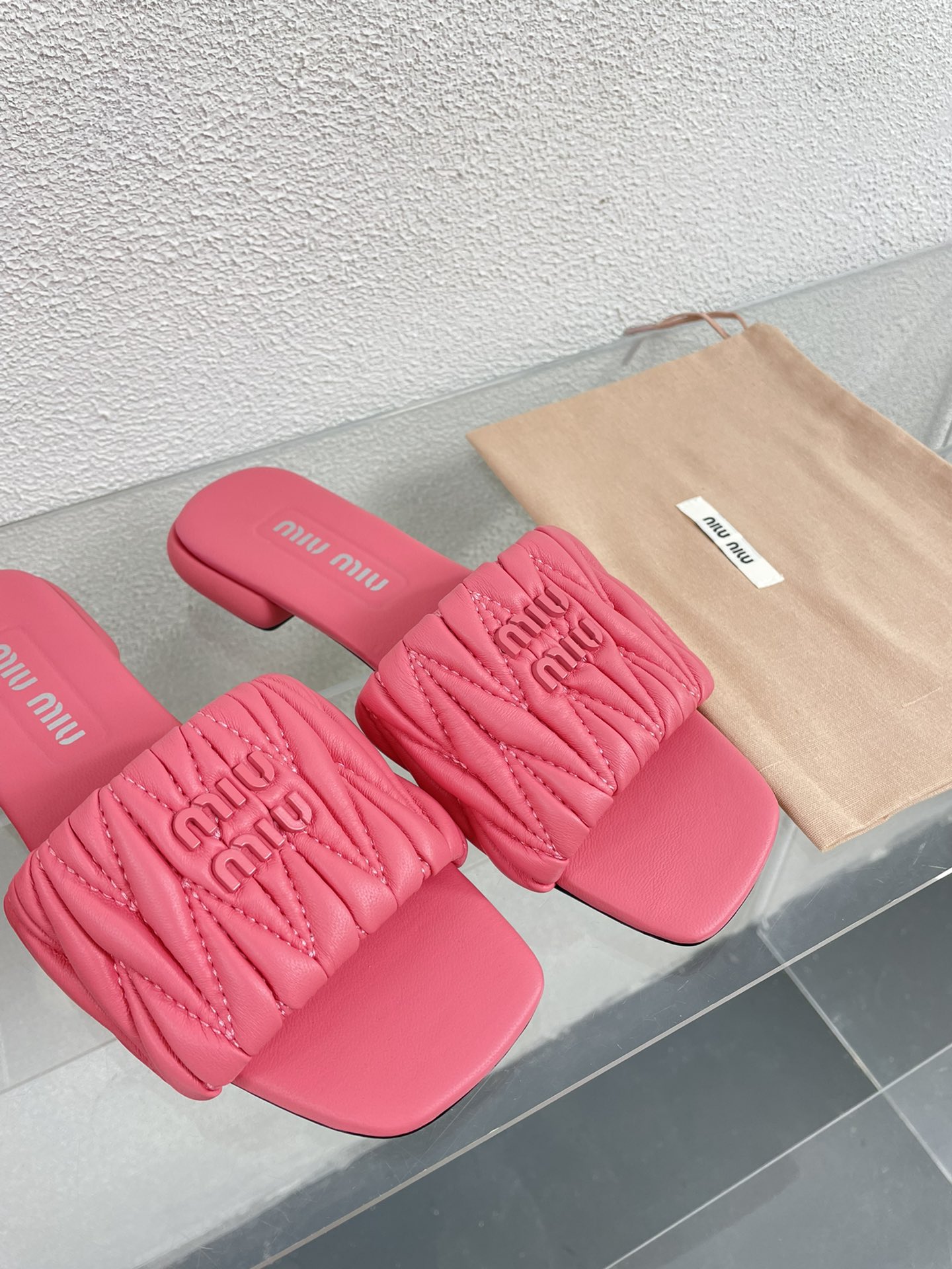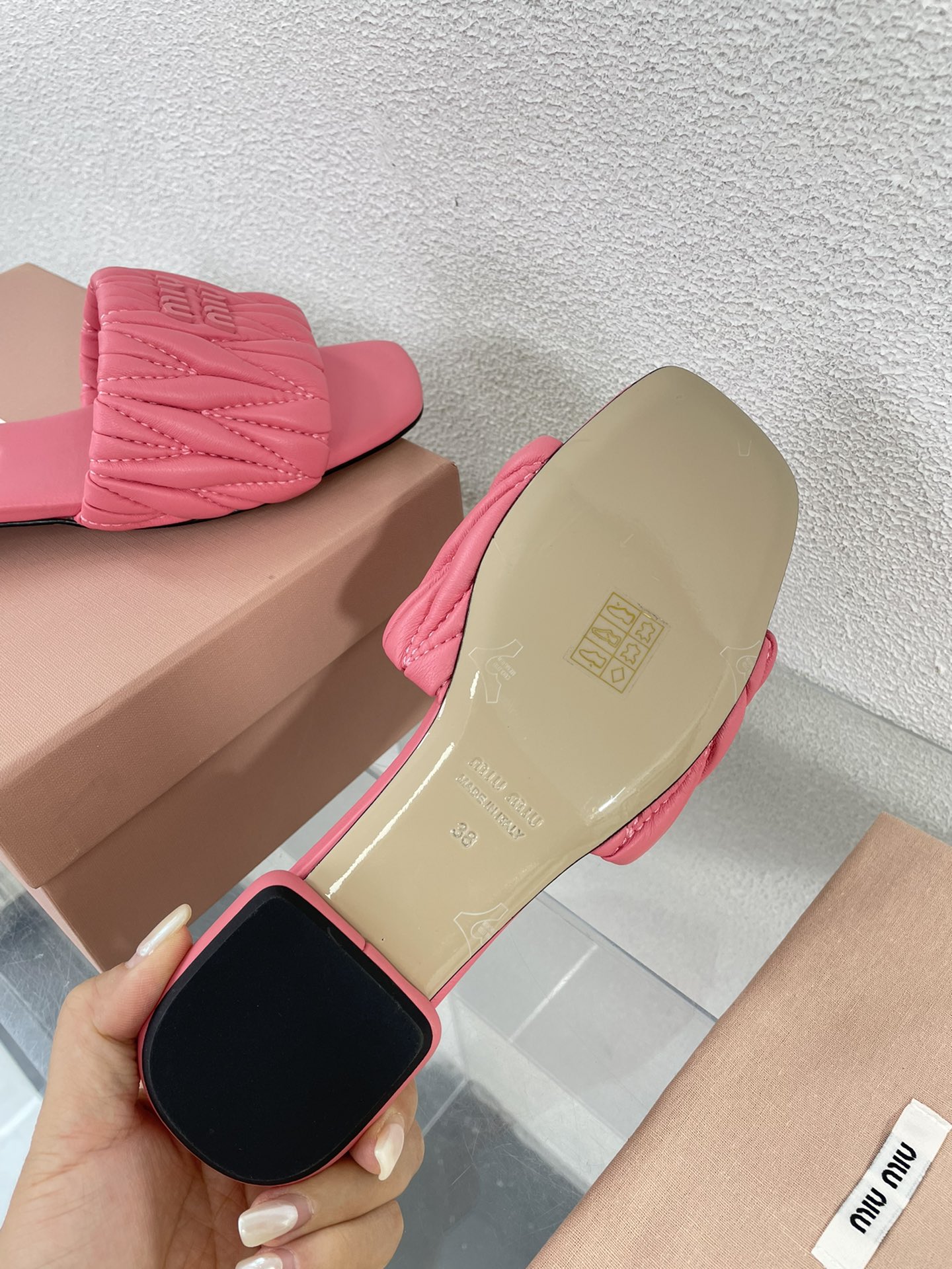 这款鞋子是AAAAA 1:1 质量 (非常棒). 使用了和原版一模一样的材料. 商标部分也保持了和缪缪/Miu Miu一样. 图片拍摄是实物鞋子拍摄, 您所收到的实物保证和我们图片一模一样.