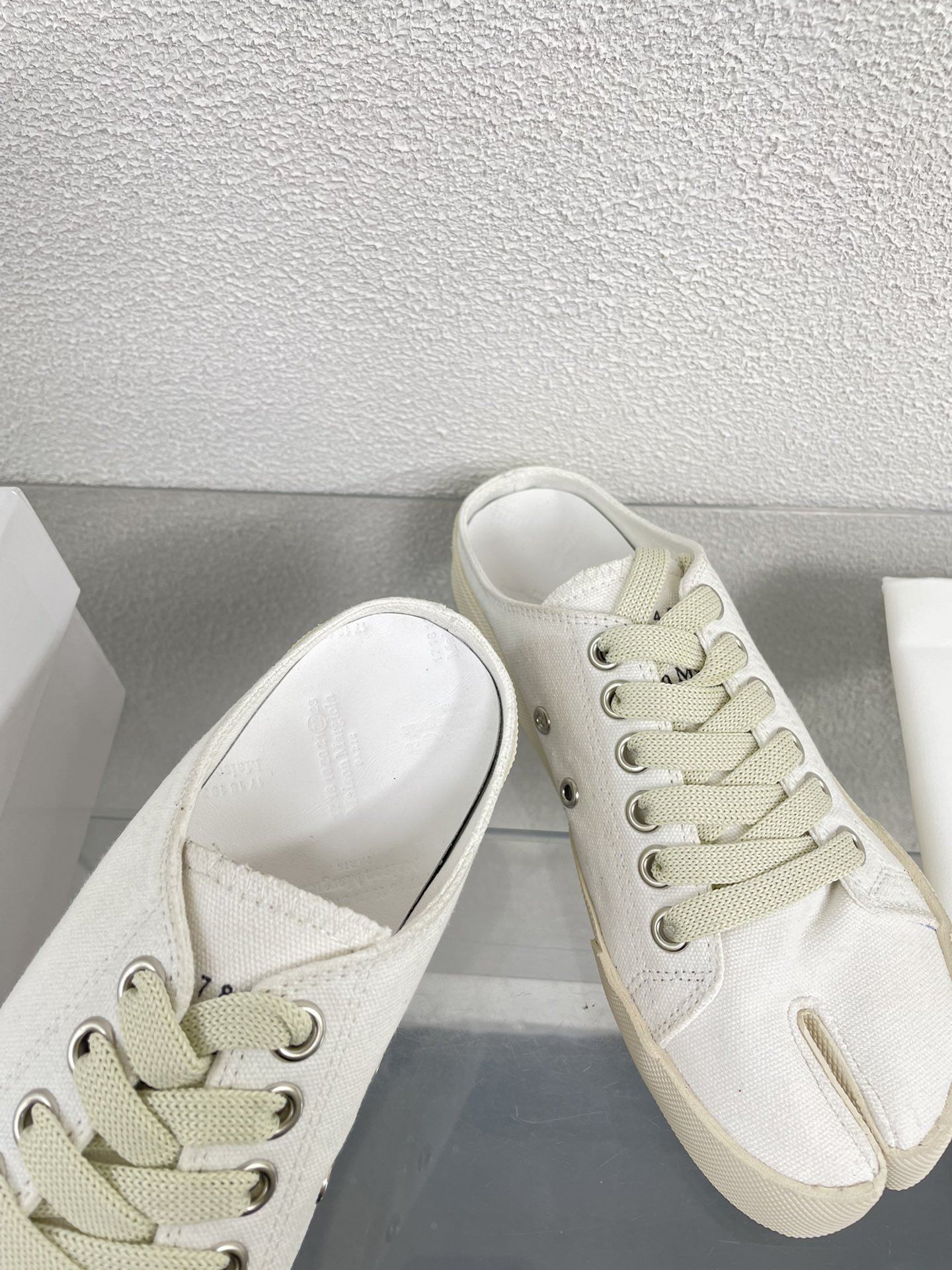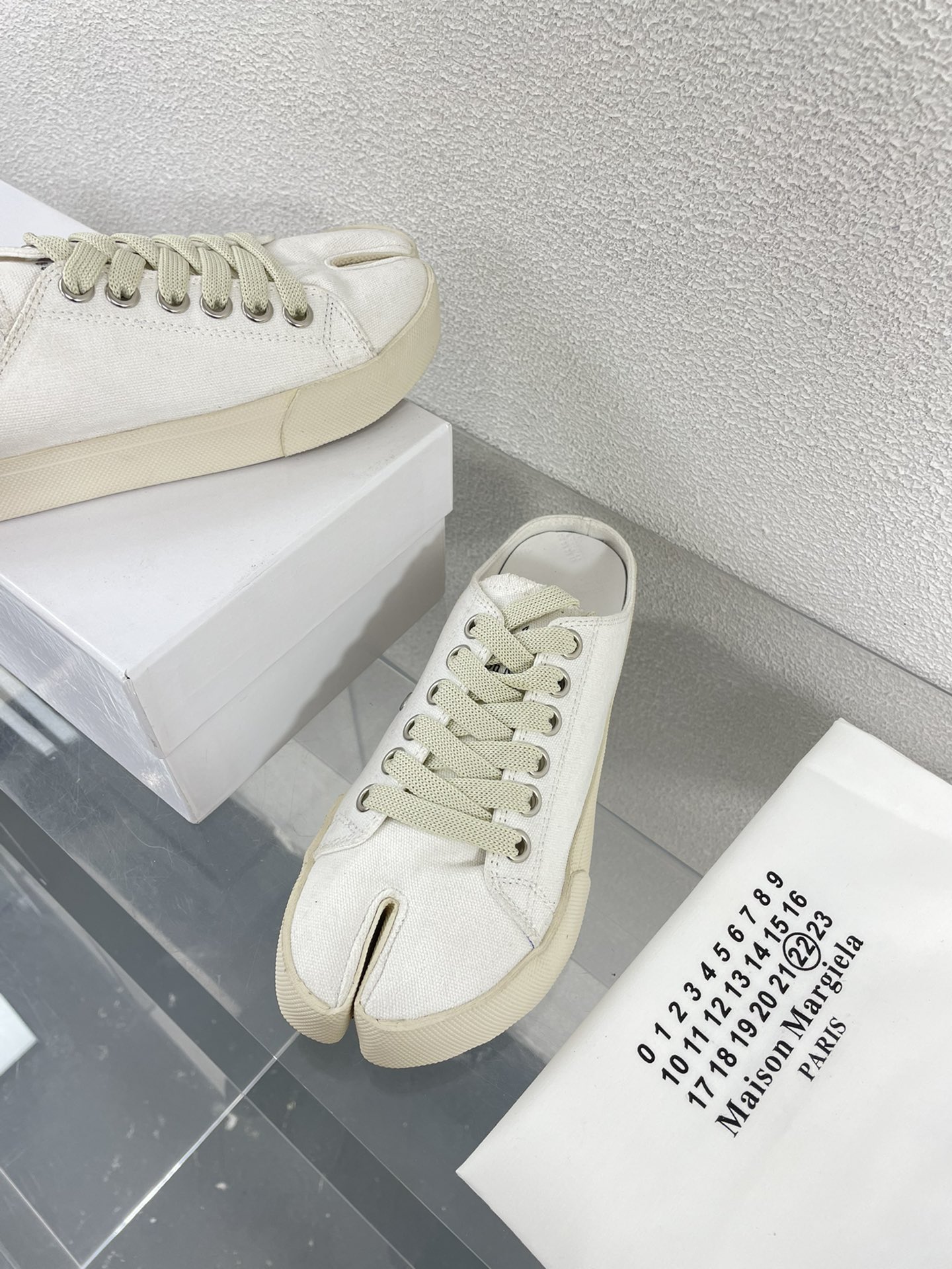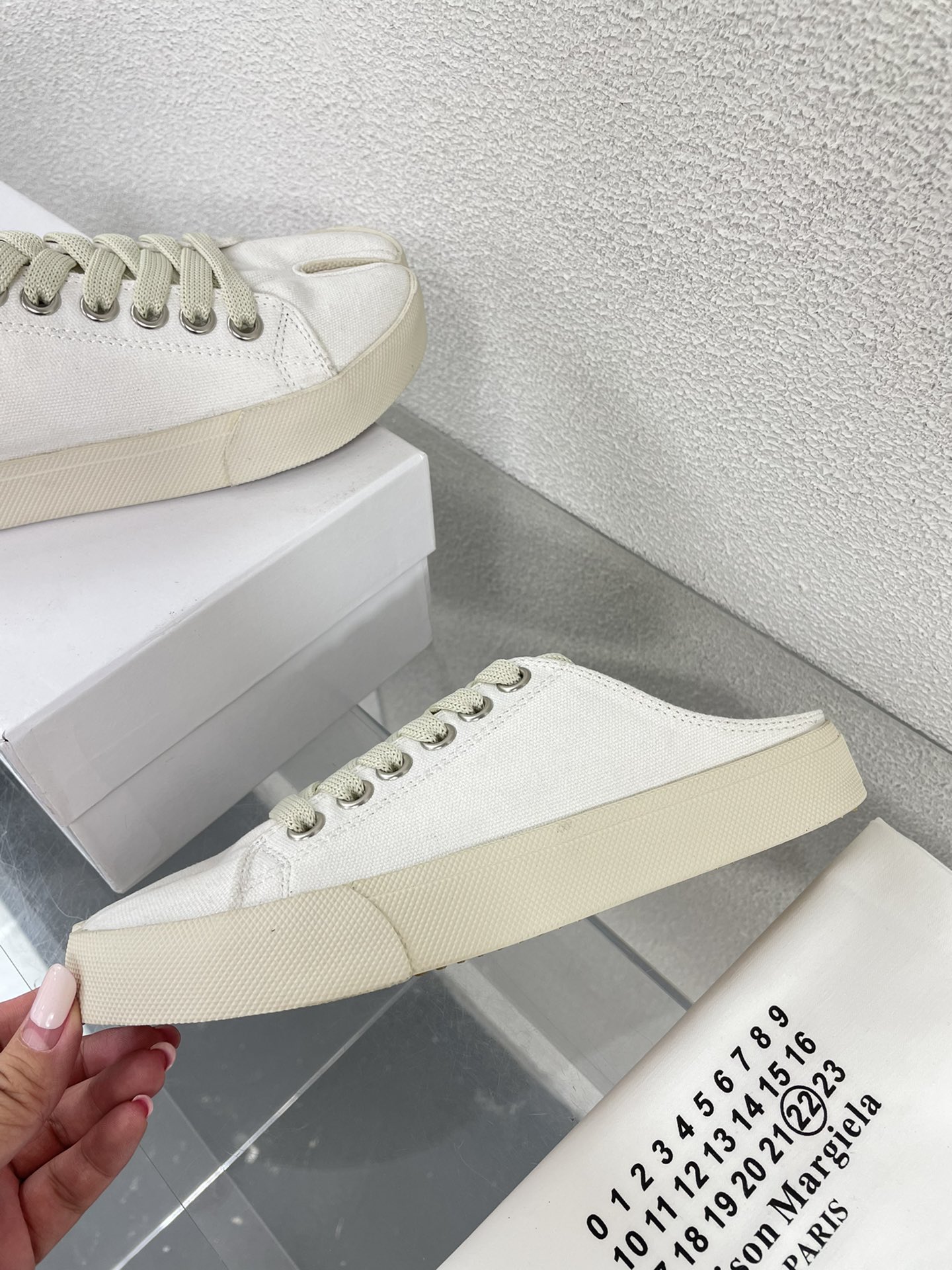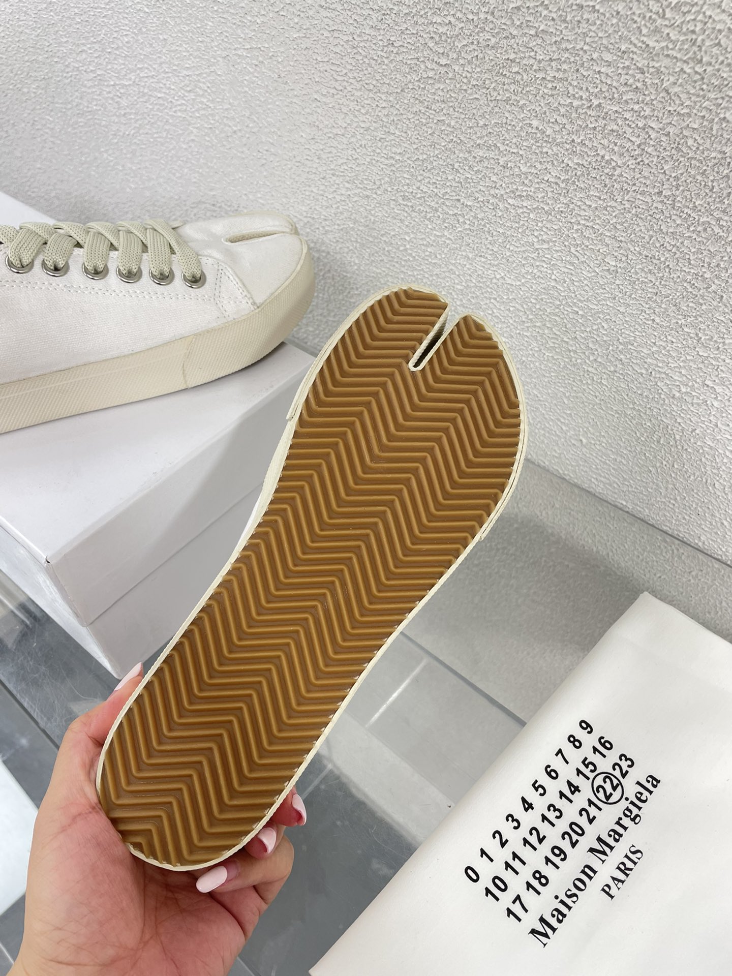 这款鞋子是AAAAA 1:1 质量 (非常棒). 使用了和原版一模一样的材料. 商标部分也保持了和Maison Margiela一样. 图片拍摄是实物鞋子拍摄, 您所收到的实物保证和我们图片一模一样.