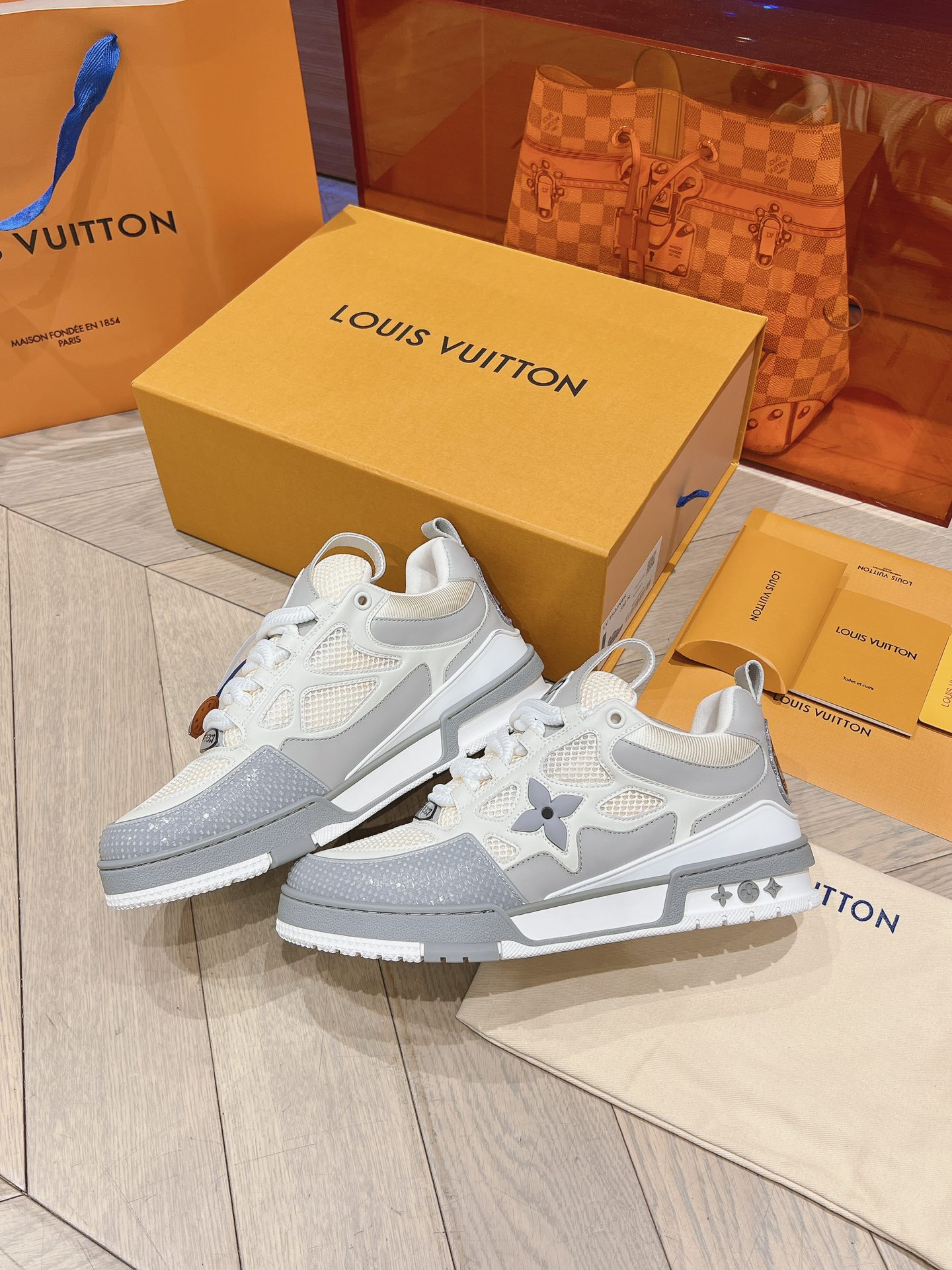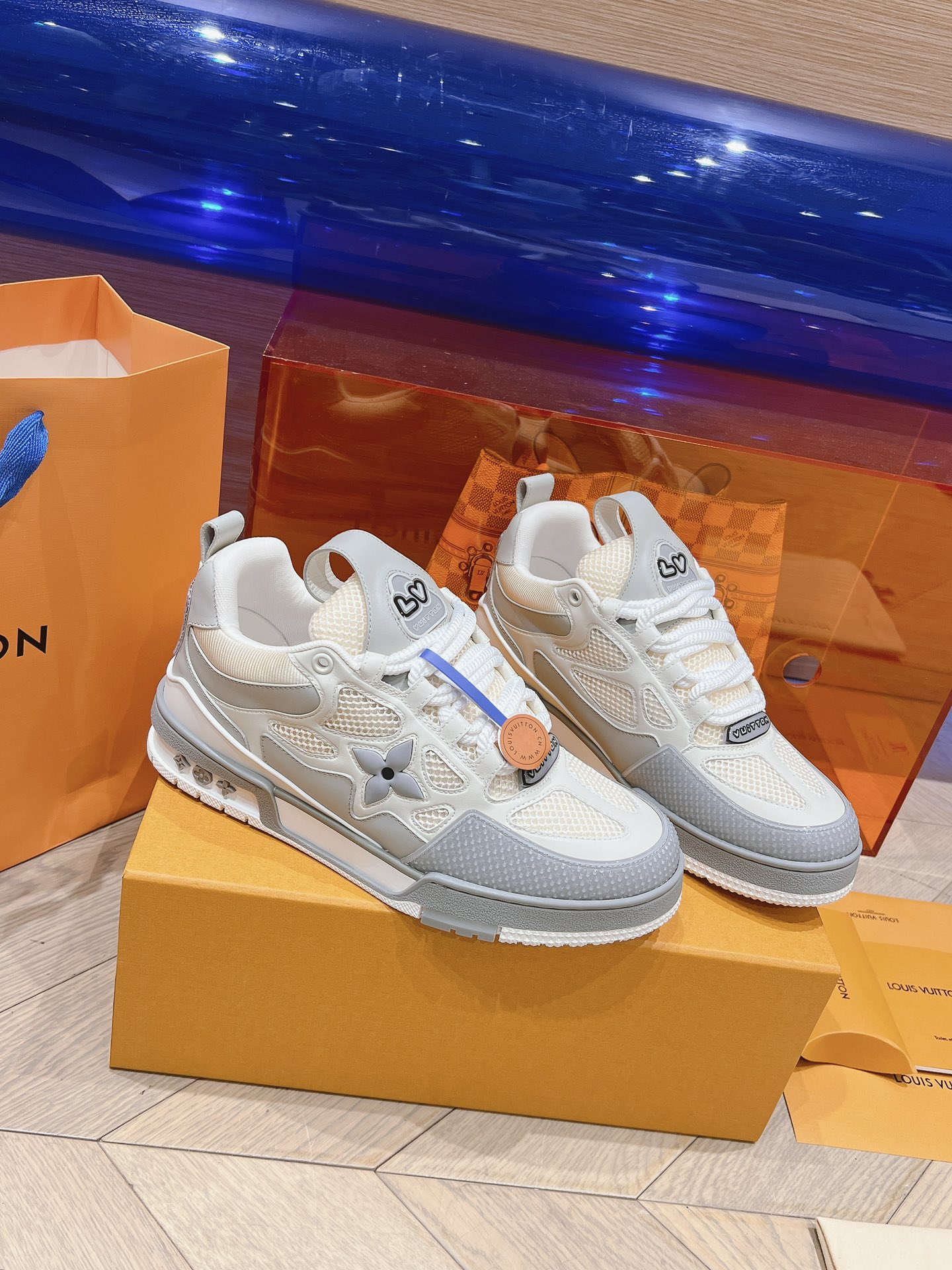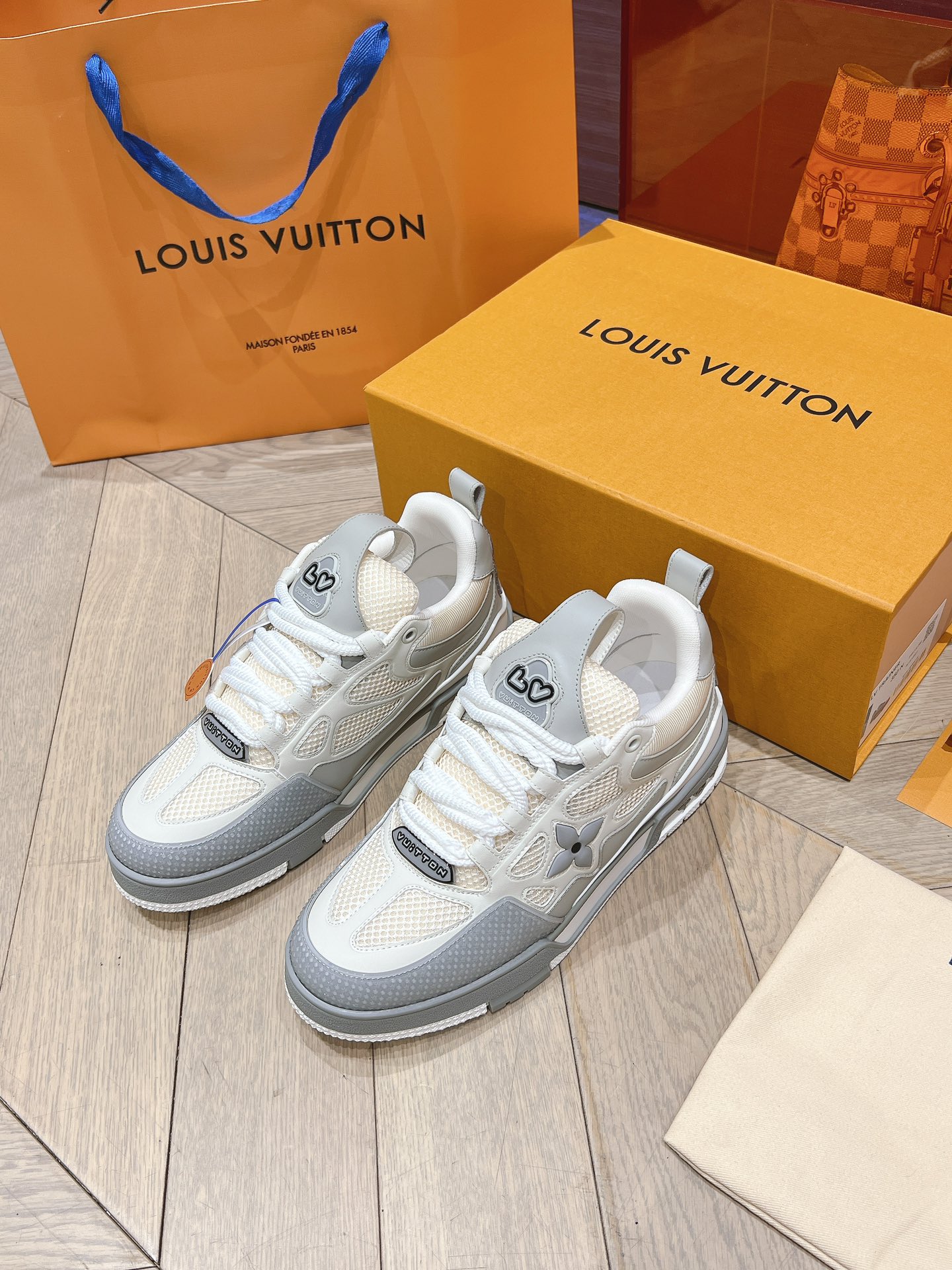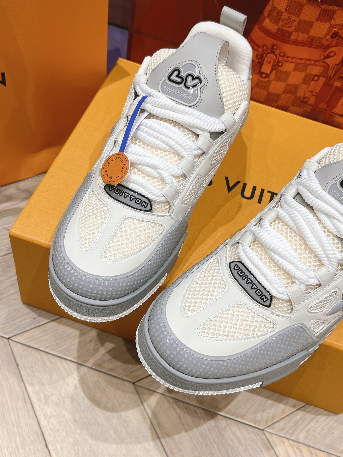 这款鞋子是AAAAA 1:1 质量 (非常棒). 使用了和原版一模一样的材料. 商标部分也保持了和路易威登/Louis Vuitton一样. 图片拍摄是实物鞋子拍摄, 您所收到的实物保证和我们图片一模一样.