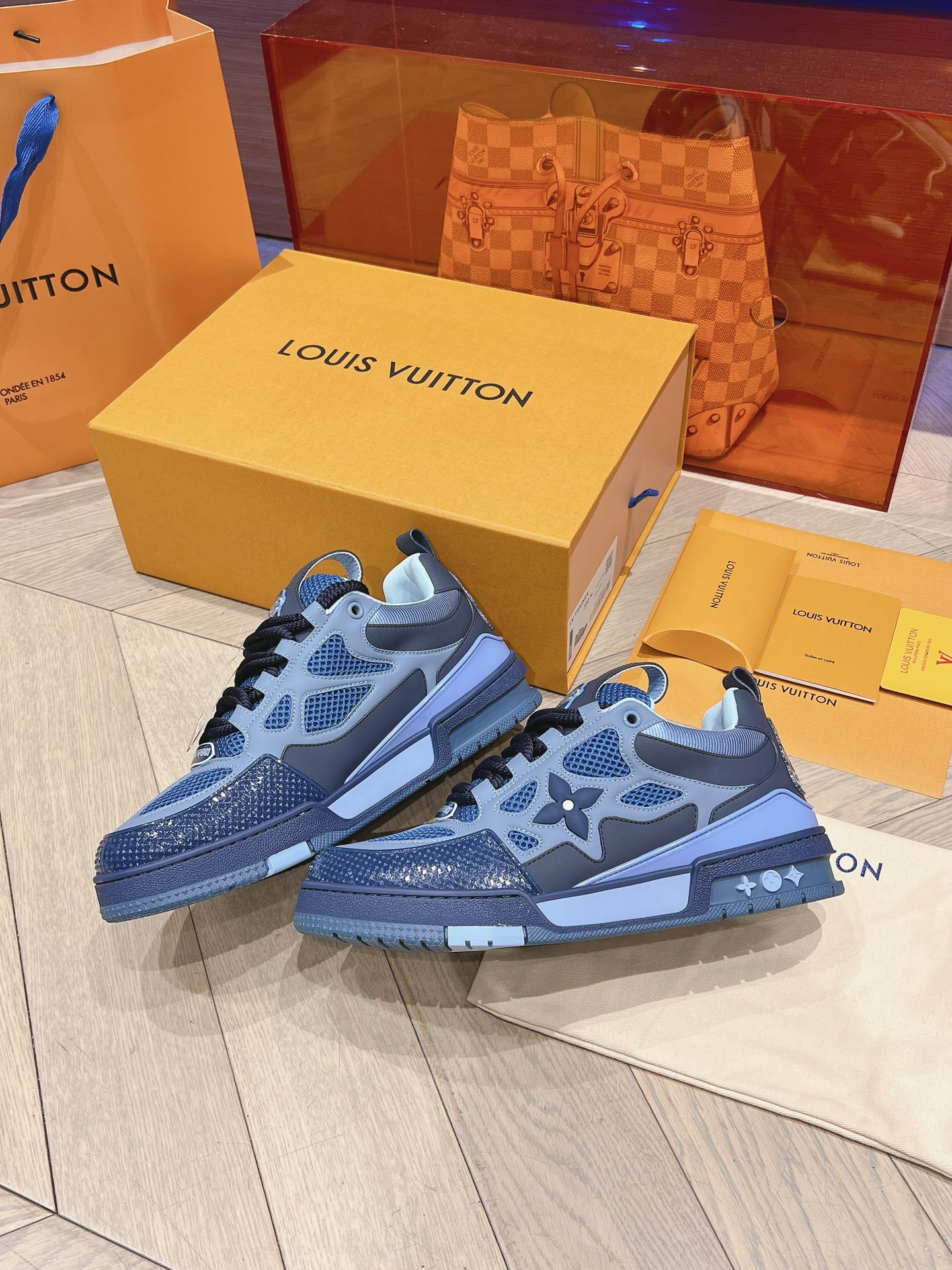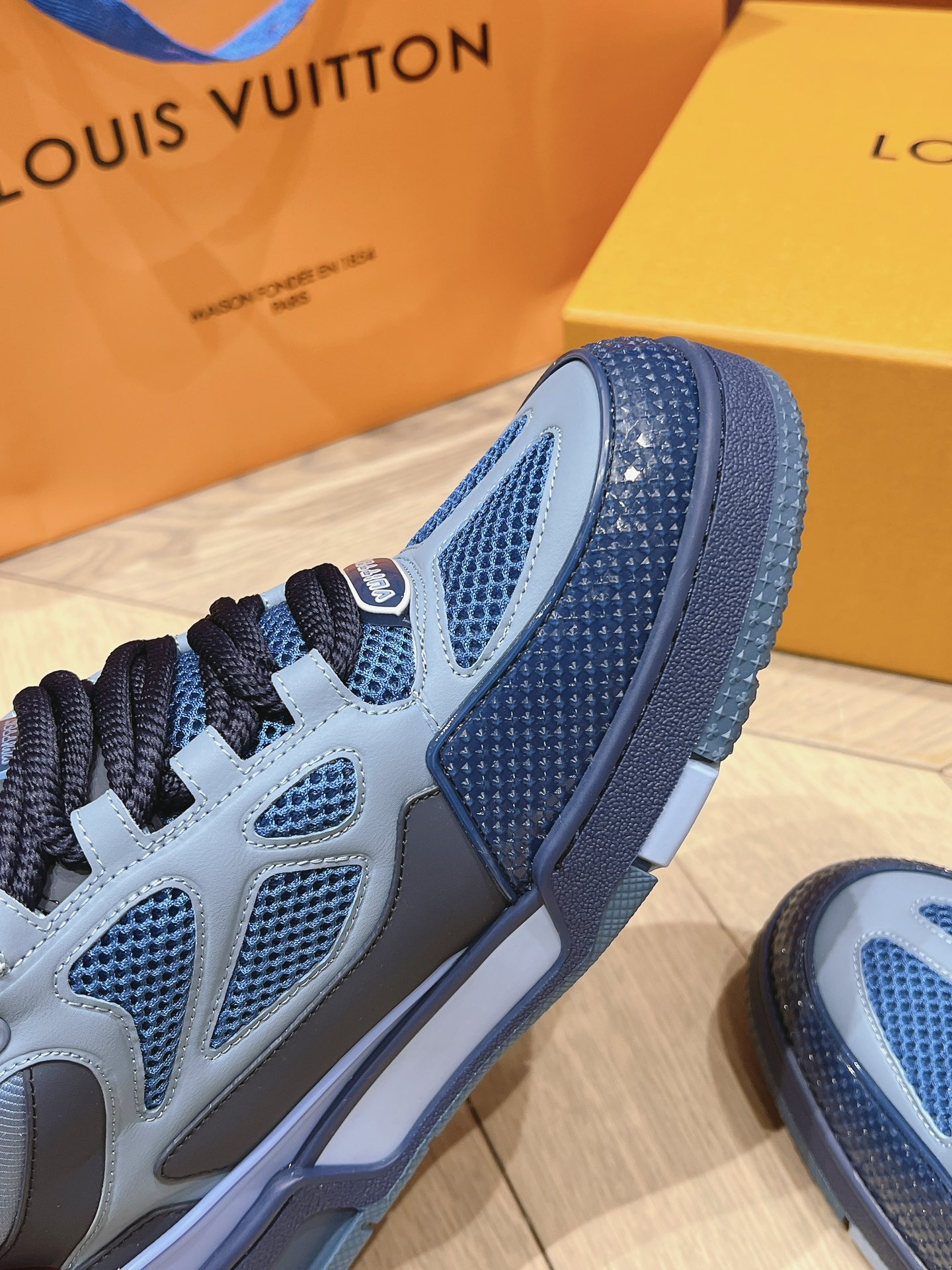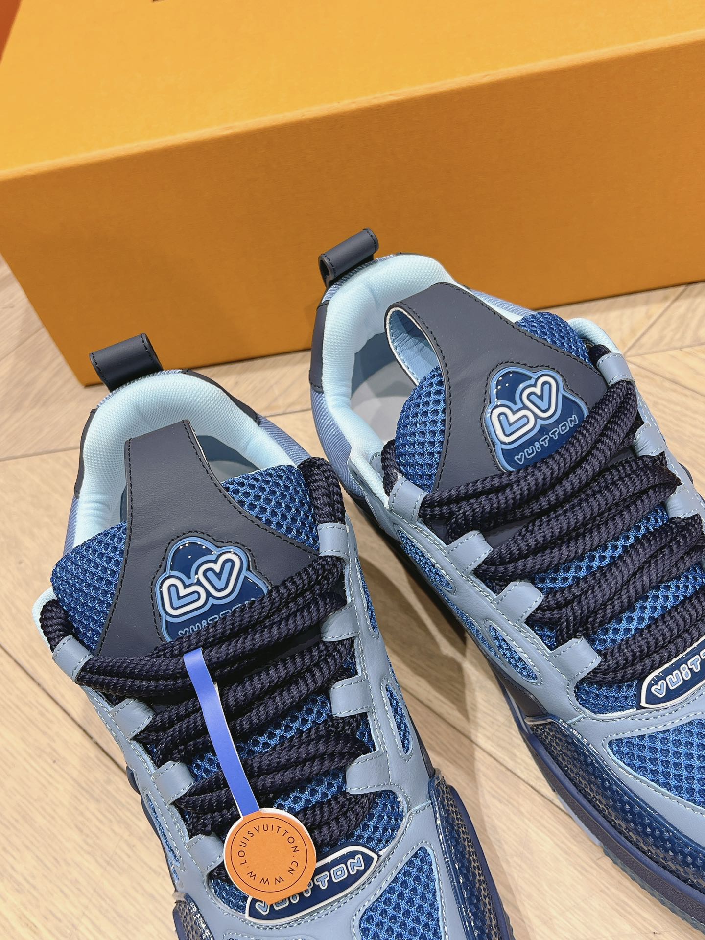 这款鞋子是AAAAA 1:1 质量 (非常棒). 使用了和原版一模一样的材料. 商标部分也保持了和路易威登/Louis Vuitton一样. 图片拍摄是实物鞋子拍摄, 您所收到的实物保证和我们图片一模一样.