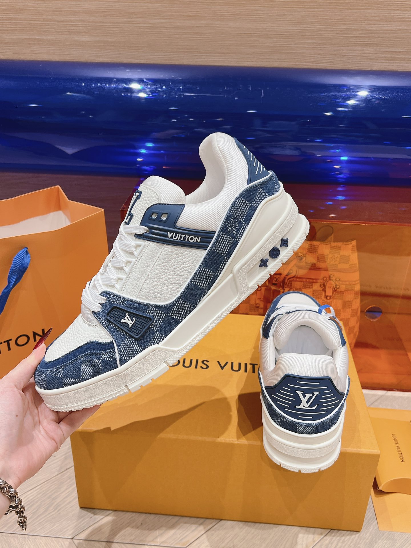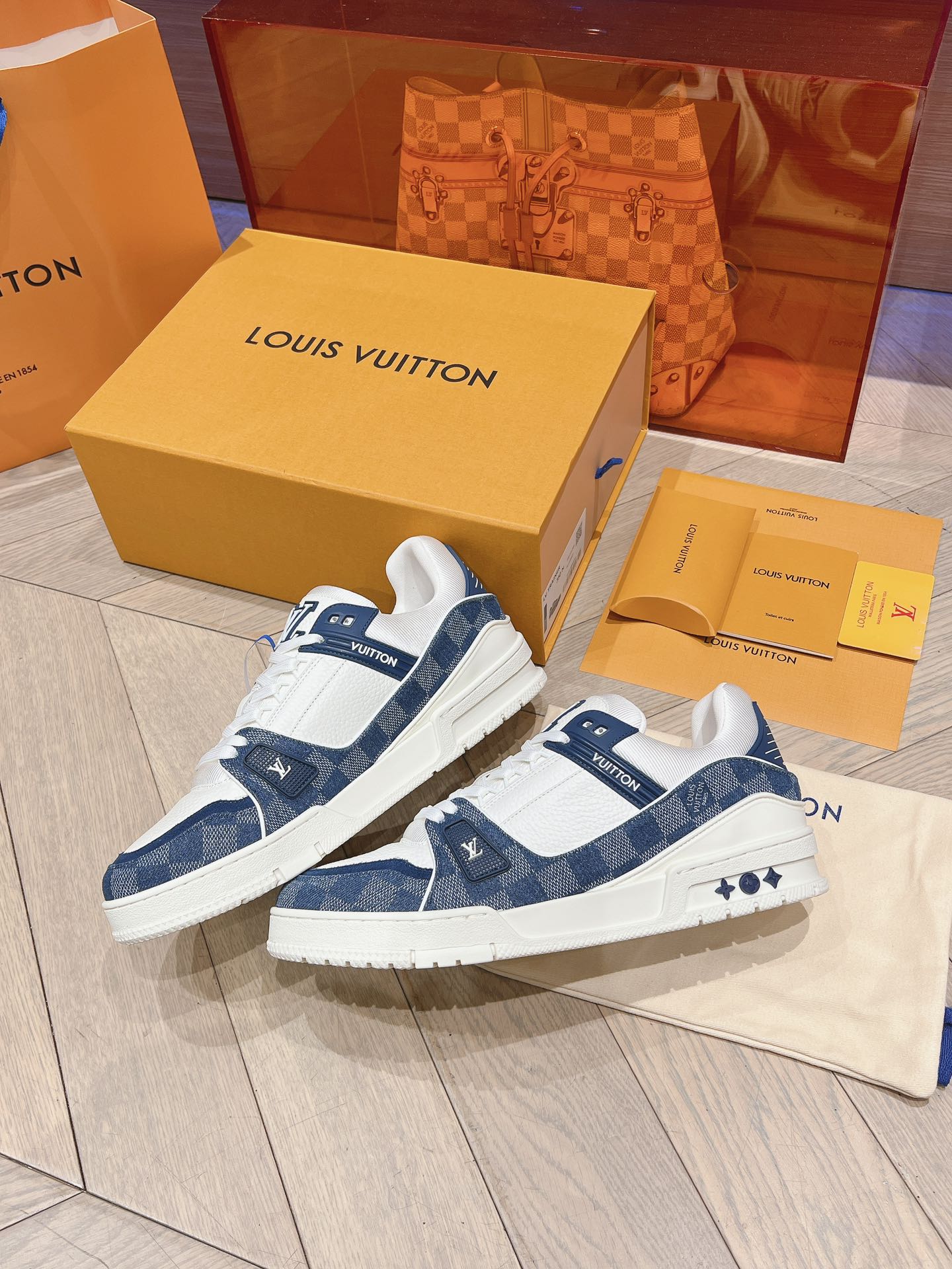 这款鞋子是AAAAA 1:1 质量 (非常棒). 使用了和原版一模一样的材料. 商标部分也保持了和路易威登/Louis Vuitton一样. 图片拍摄是实物鞋子拍摄, 您所收到的实物保证和我们图片一模一样.