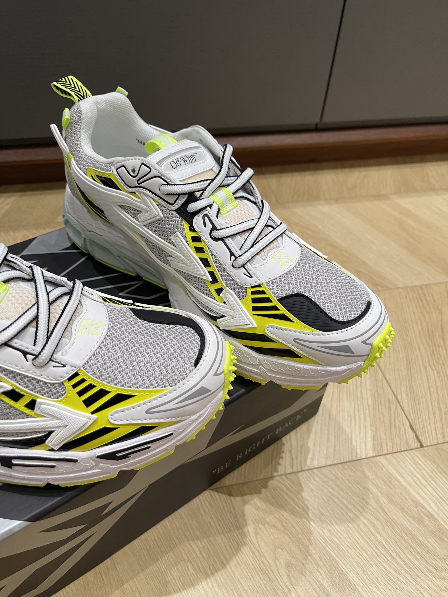 这款鞋子是AAAAA 1:1 质量 (非常棒). 使用了和原版一模一样的材料. 商标部分也保持了和OFF WHITE一样. 图片拍摄是实物鞋子拍摄, 您所收到的实物保证和我们图片一模一样.