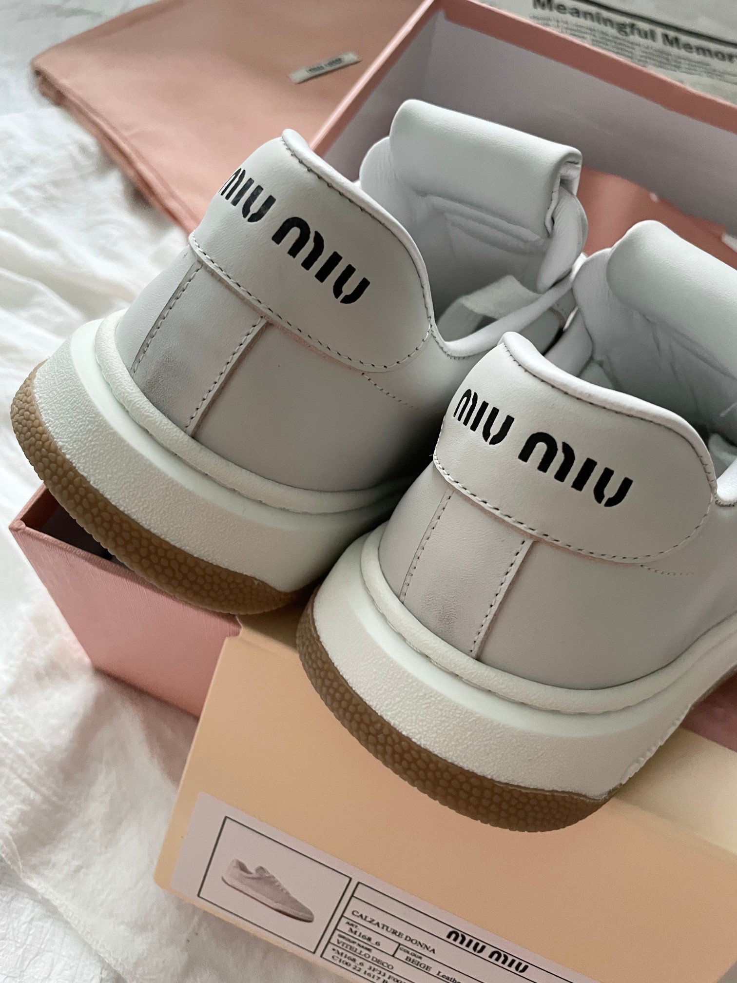 这款鞋子是AAAAA 1:1 质量 (非常棒). 使用了和原版一模一样的材料. 商标部分也保持了和缪缪/Miu Miu一样. 图片拍摄是实物鞋子拍摄, 您所收到的实物保证和我们图片一模一样.
