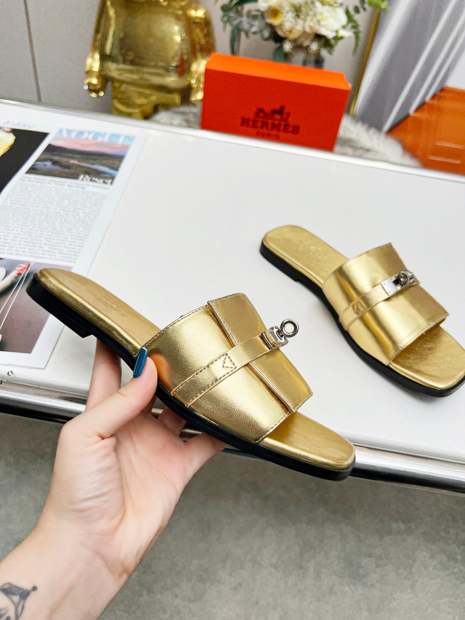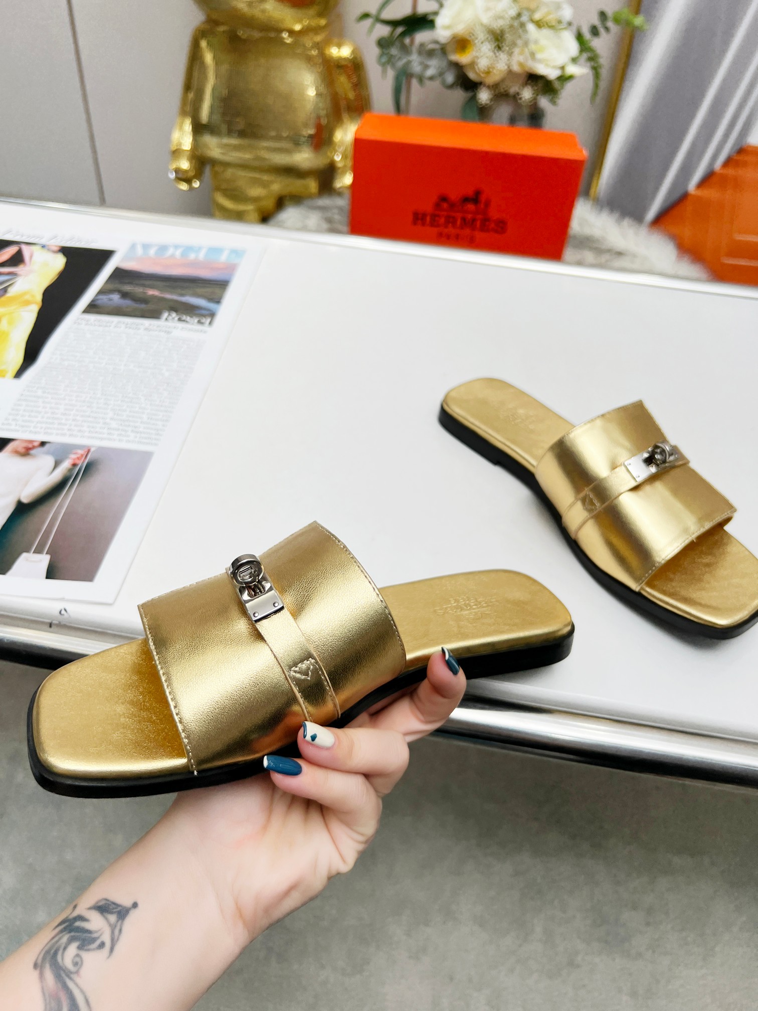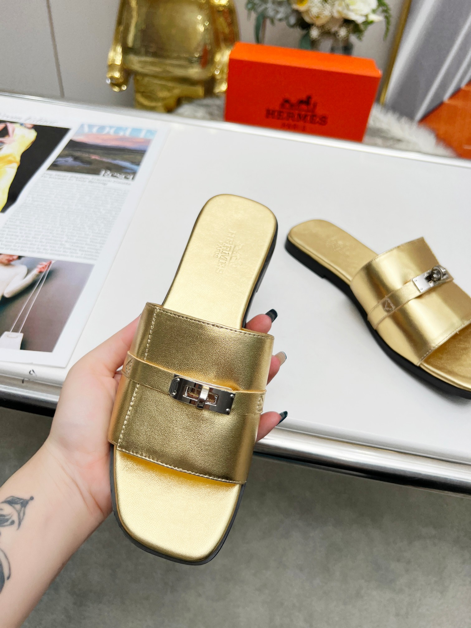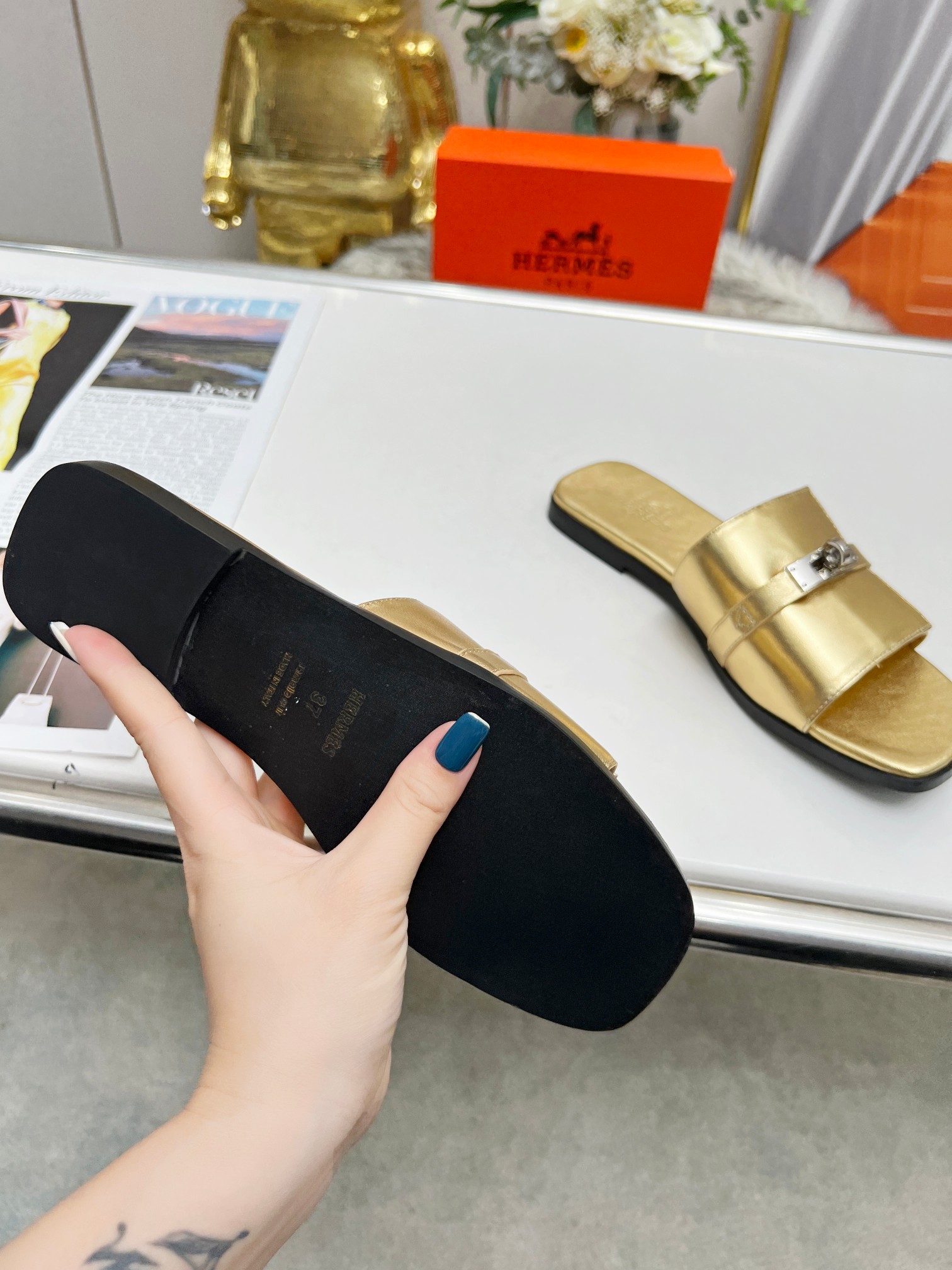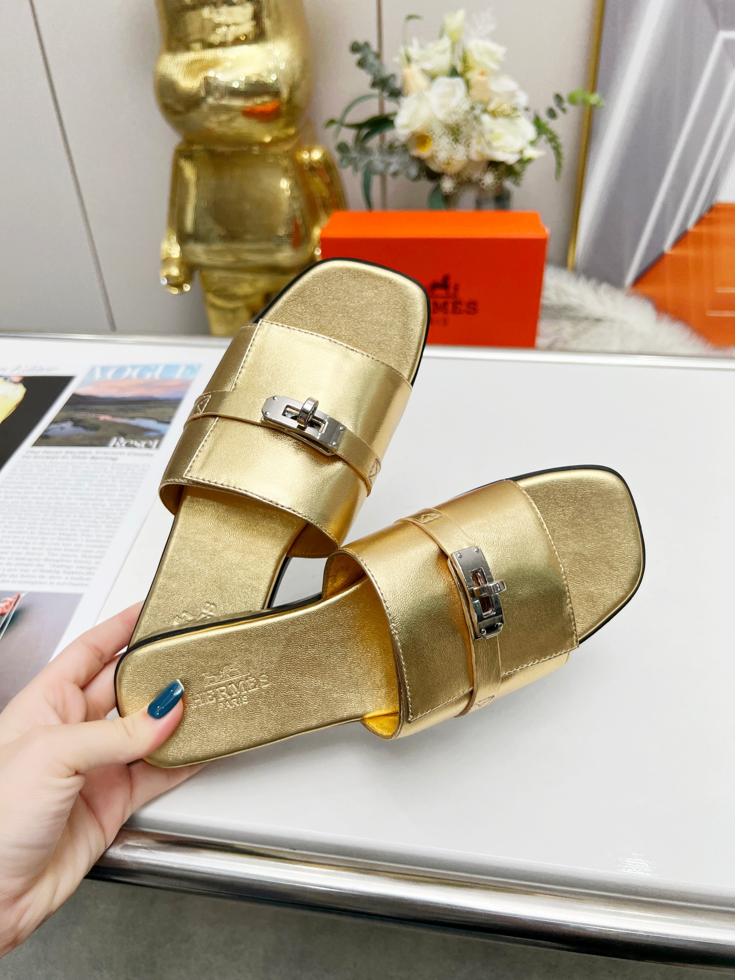 这款鞋子是AAAAA 1:1 质量 (非常棒). 使用了和原版一模一样的材料. 商标部分也保持了和爱马仕/Hermes一样. 图片拍摄是实物鞋子拍摄, 您所收到的实物保证和我们图片一模一样.