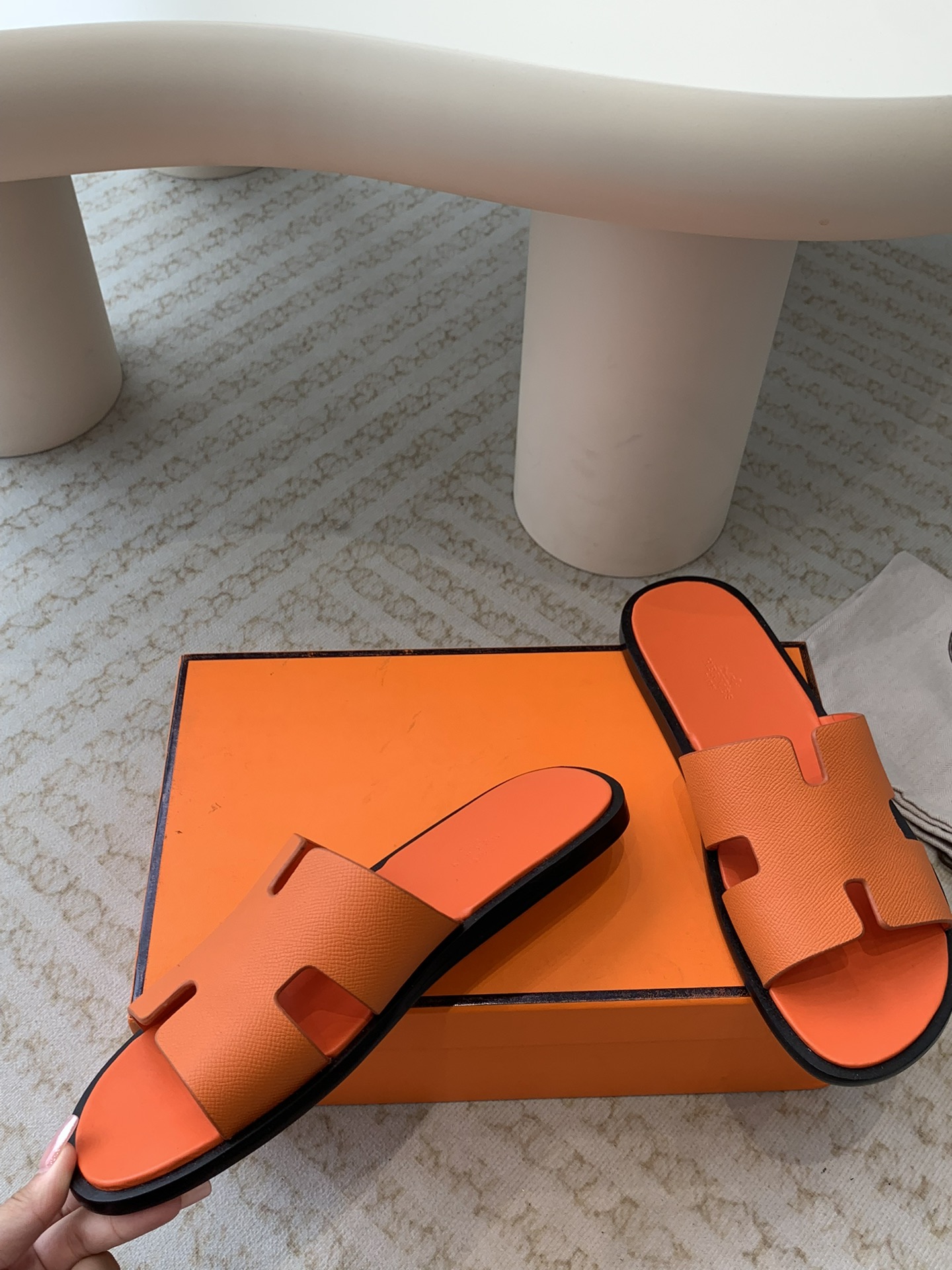 这款鞋子是AAAAA 1:1 质量 (非常棒). 使用了和原版一模一样的材料. 商标部分也保持了和爱马仕/Hermes一样. 图片拍摄是实物鞋子拍摄, 您所收到的实物保证和我们图片一模一样.