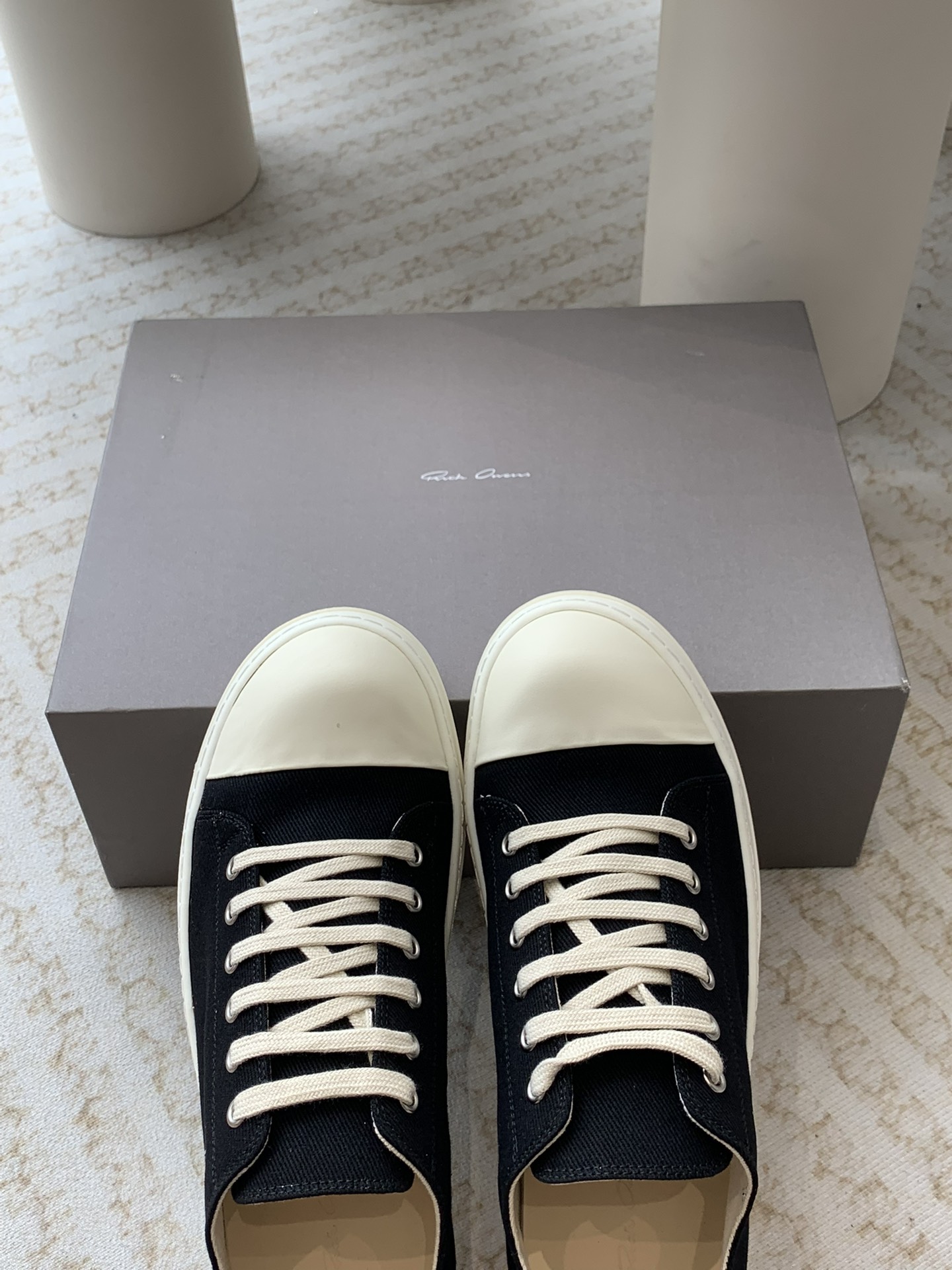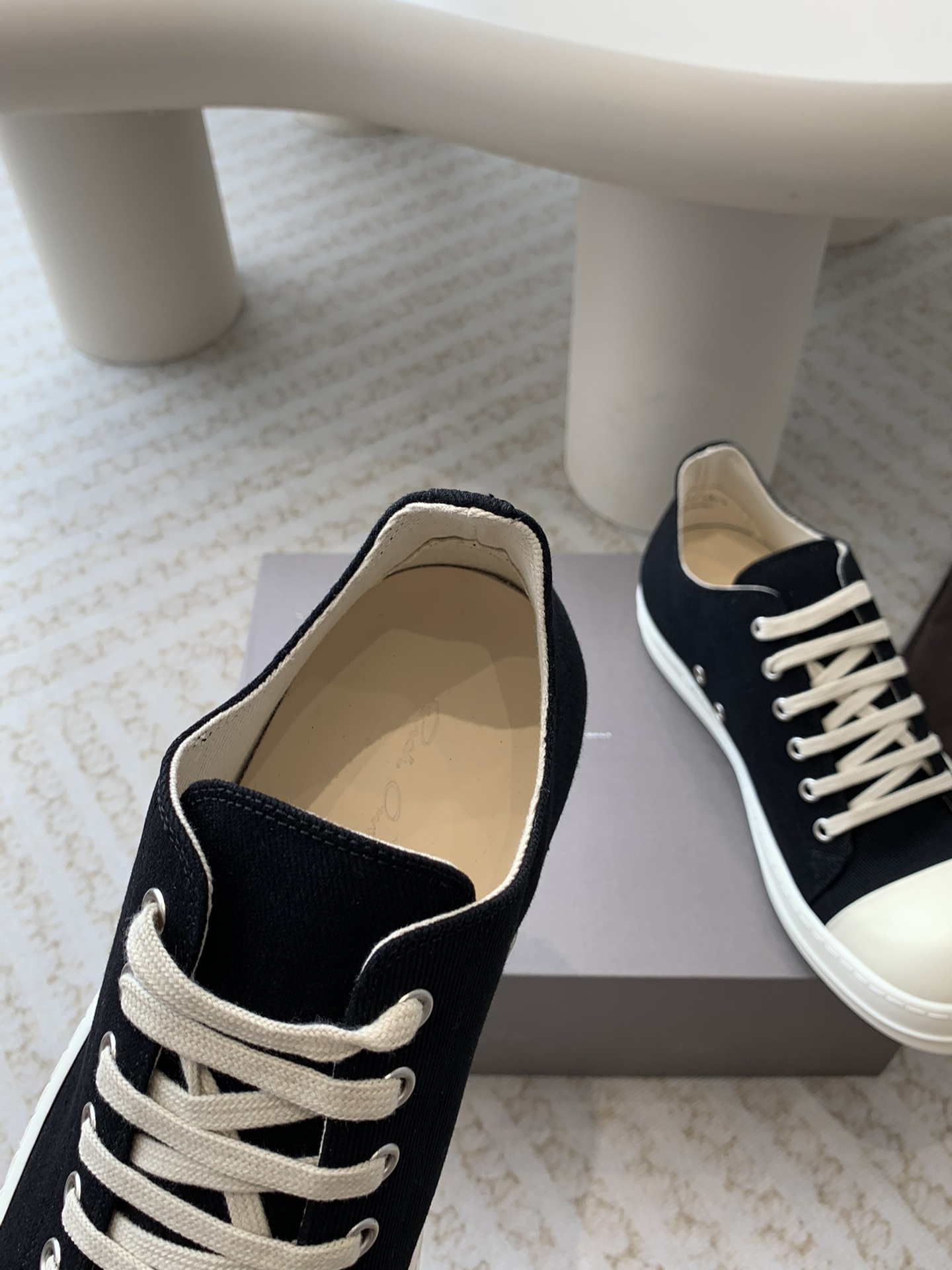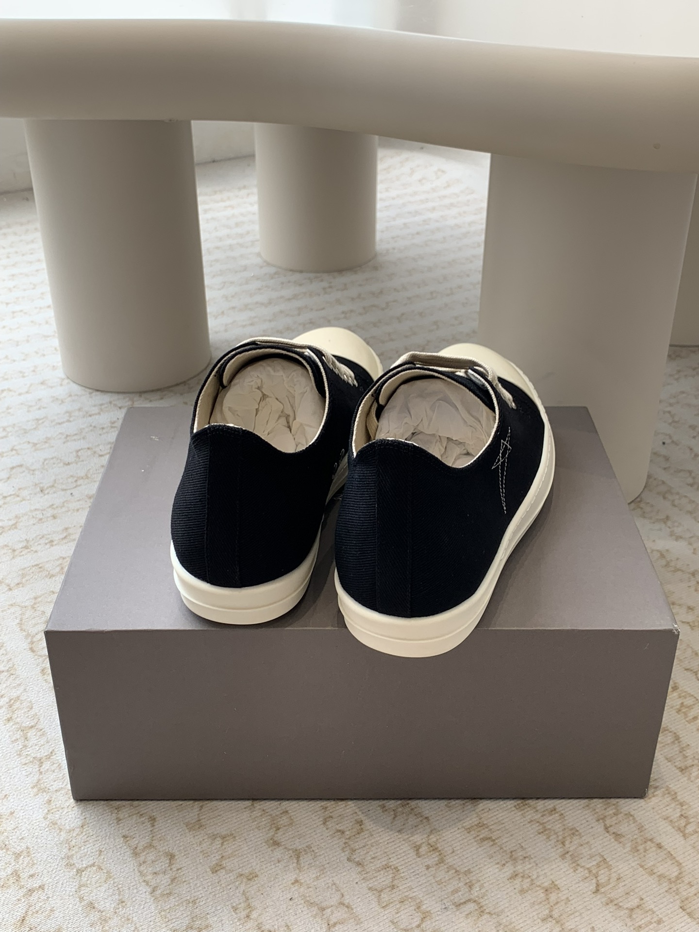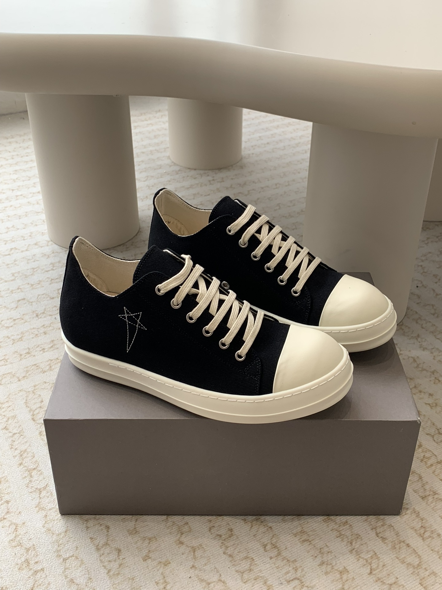 这款鞋子是AAAAA 1:1 质量 (非常棒). 使用了和原版一模一样的材料. 商标部分也保持了和里克·欧文斯/Rick Owens一样. 图片拍摄是实物鞋子拍摄, 您所收到的实物保证和我们图片一模一样.