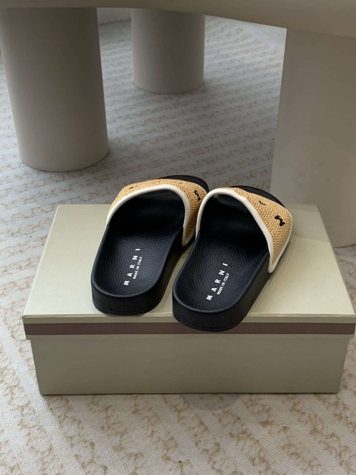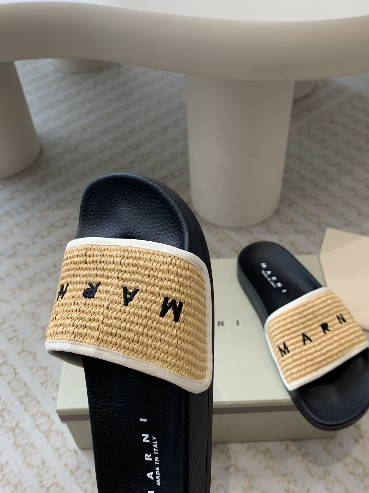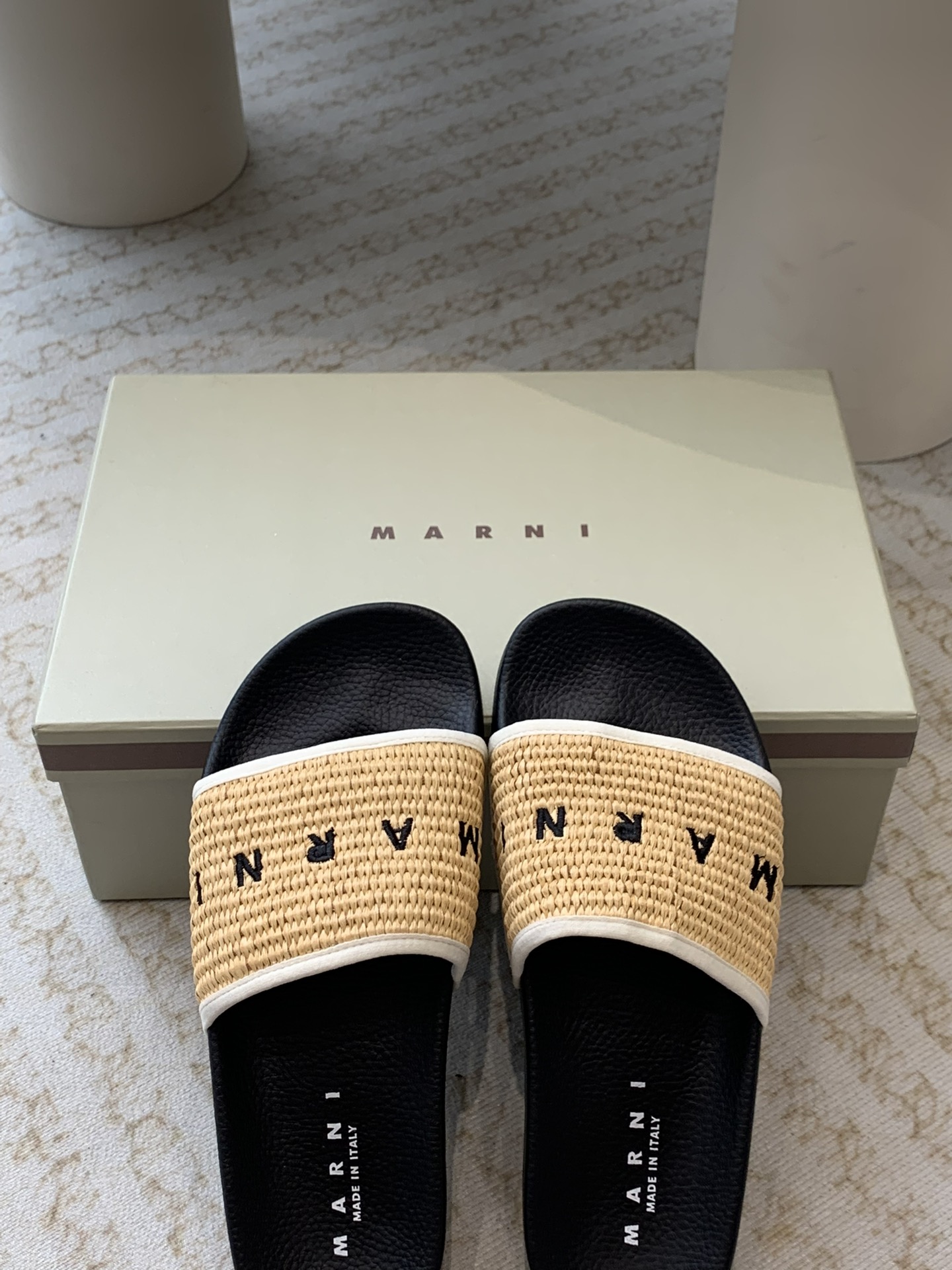 这款鞋子是AAAAA 1:1 质量 (非常棒). 使用了和原版一模一样的材料. 商标部分也保持了和马尔尼/Marni一样. 图片拍摄是实物鞋子拍摄, 您所收到的实物保证和我们图片一模一样.