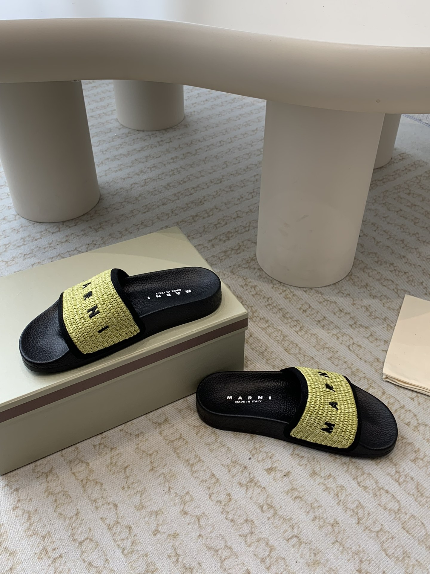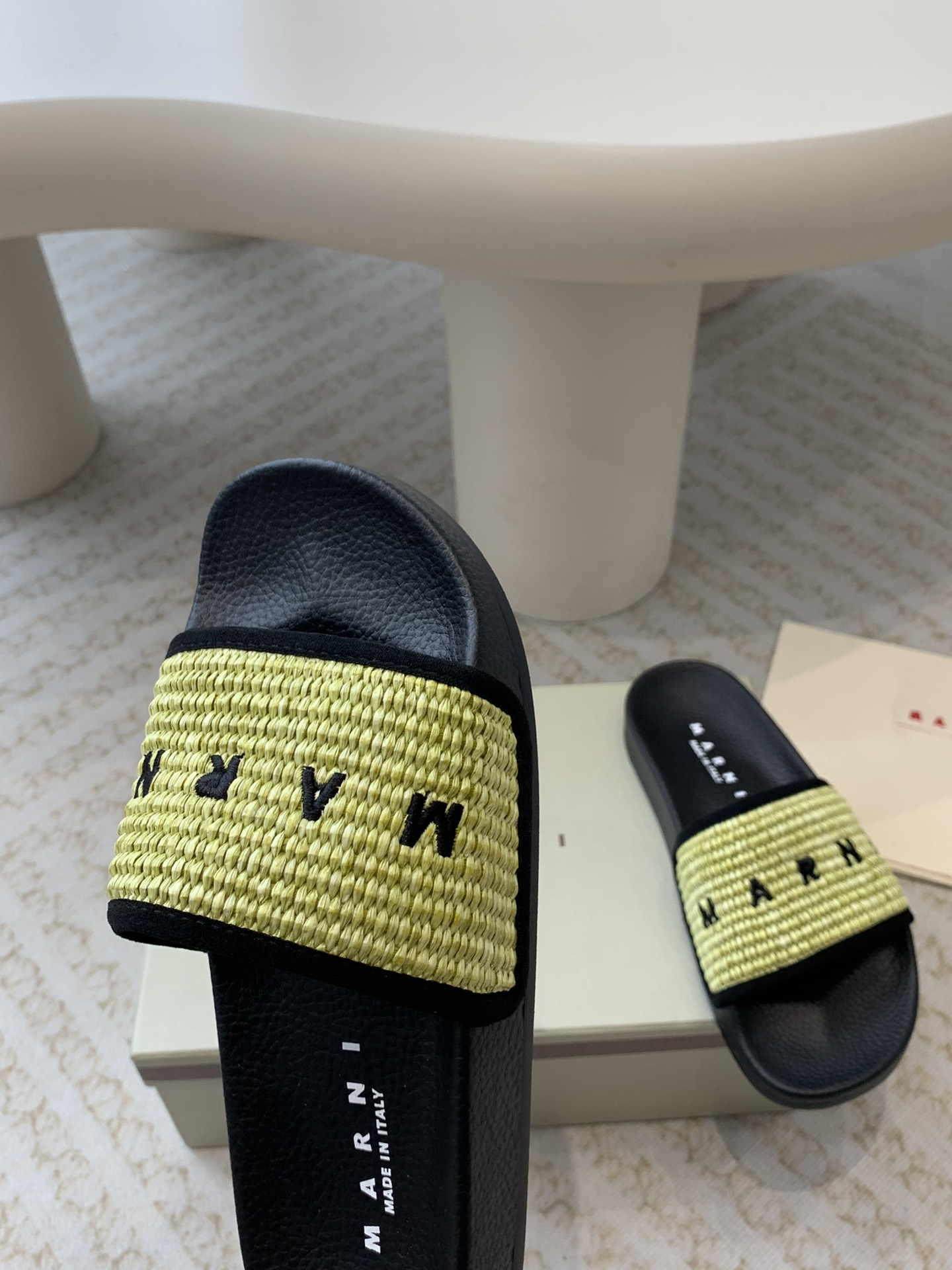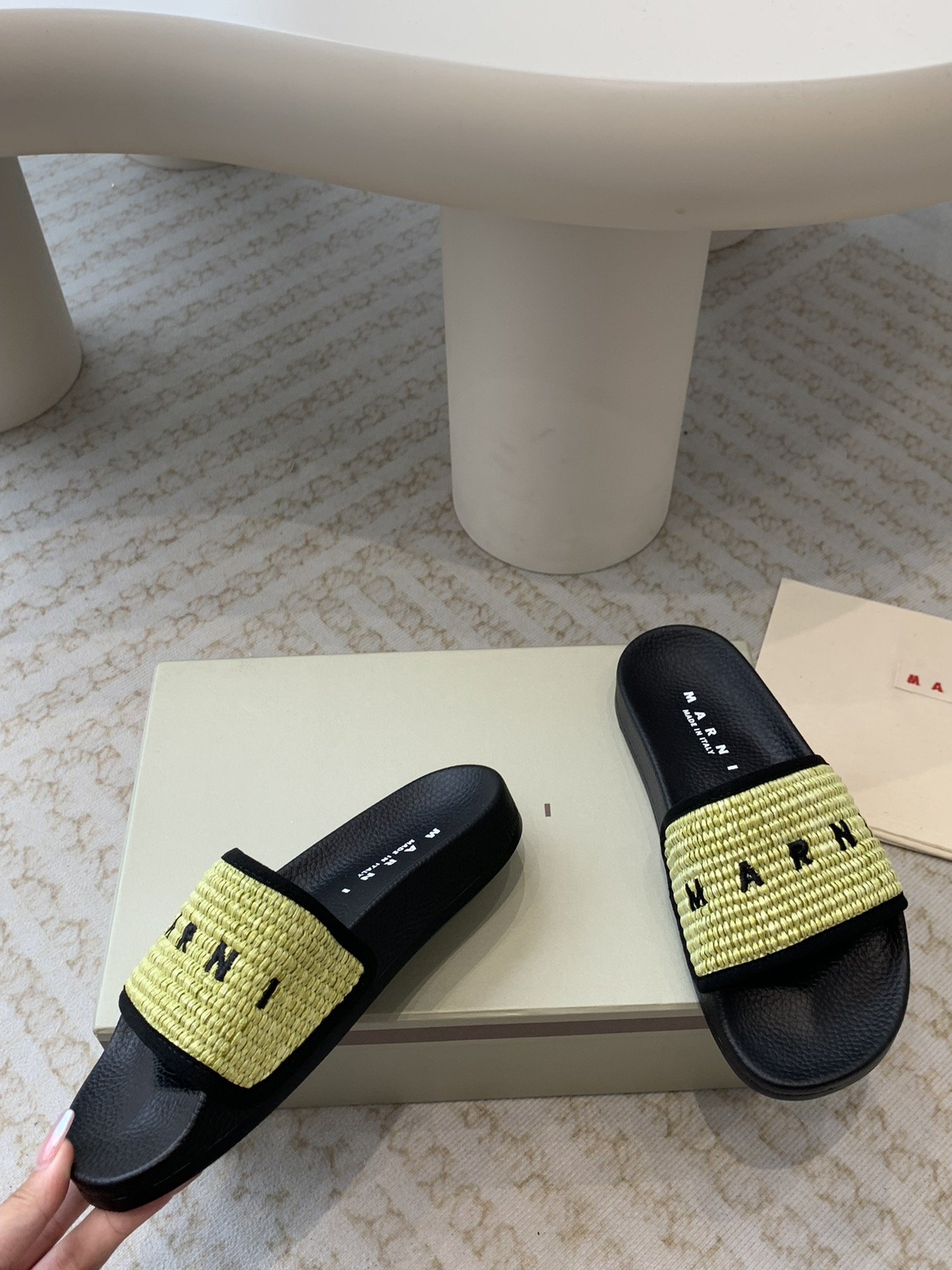 这款鞋子是AAAAA 1:1 质量 (非常棒). 使用了和原版一模一样的材料. 商标部分也保持了和马尔尼/Marni一样. 图片拍摄是实物鞋子拍摄, 您所收到的实物保证和我们图片一模一样.