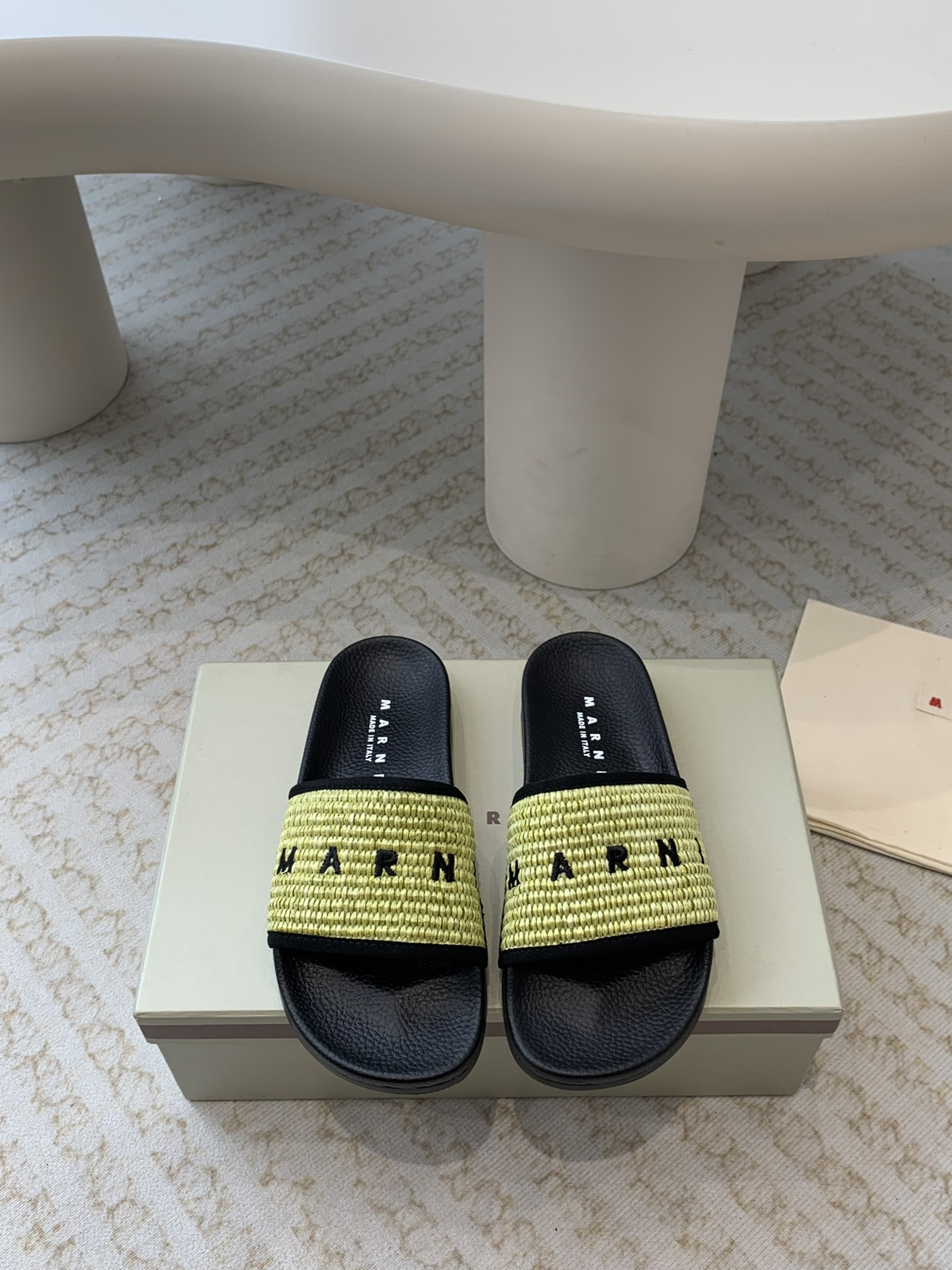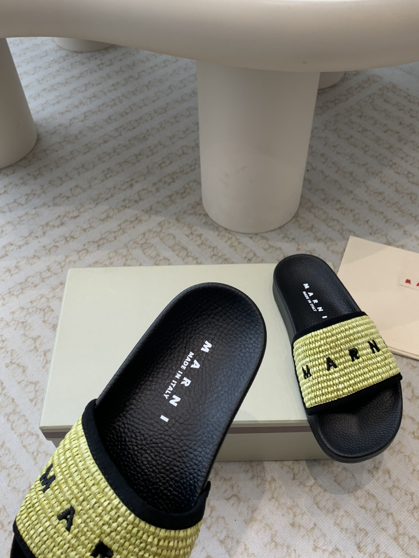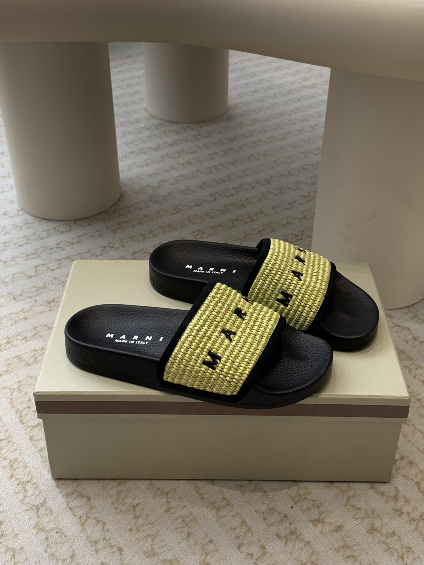 这款鞋子是AAAAA 1:1 质量 (非常棒). 使用了和原版一模一样的材料. 商标部分也保持了和马尔尼/Marni一样. 图片拍摄是实物鞋子拍摄, 您所收到的实物保证和我们图片一模一样.