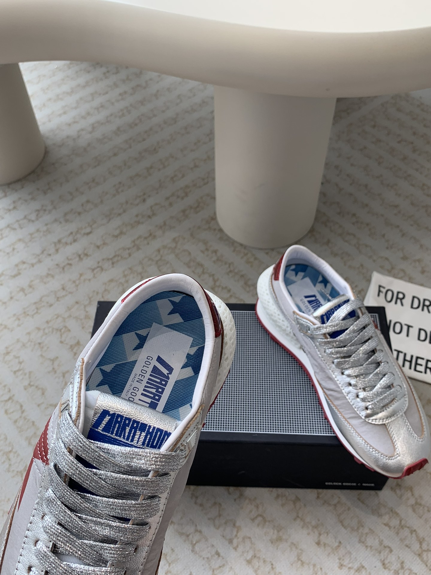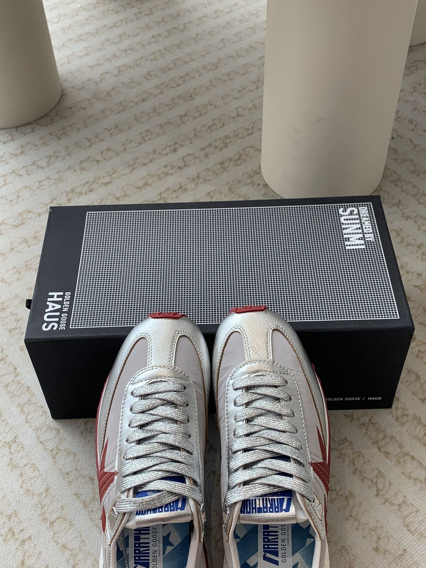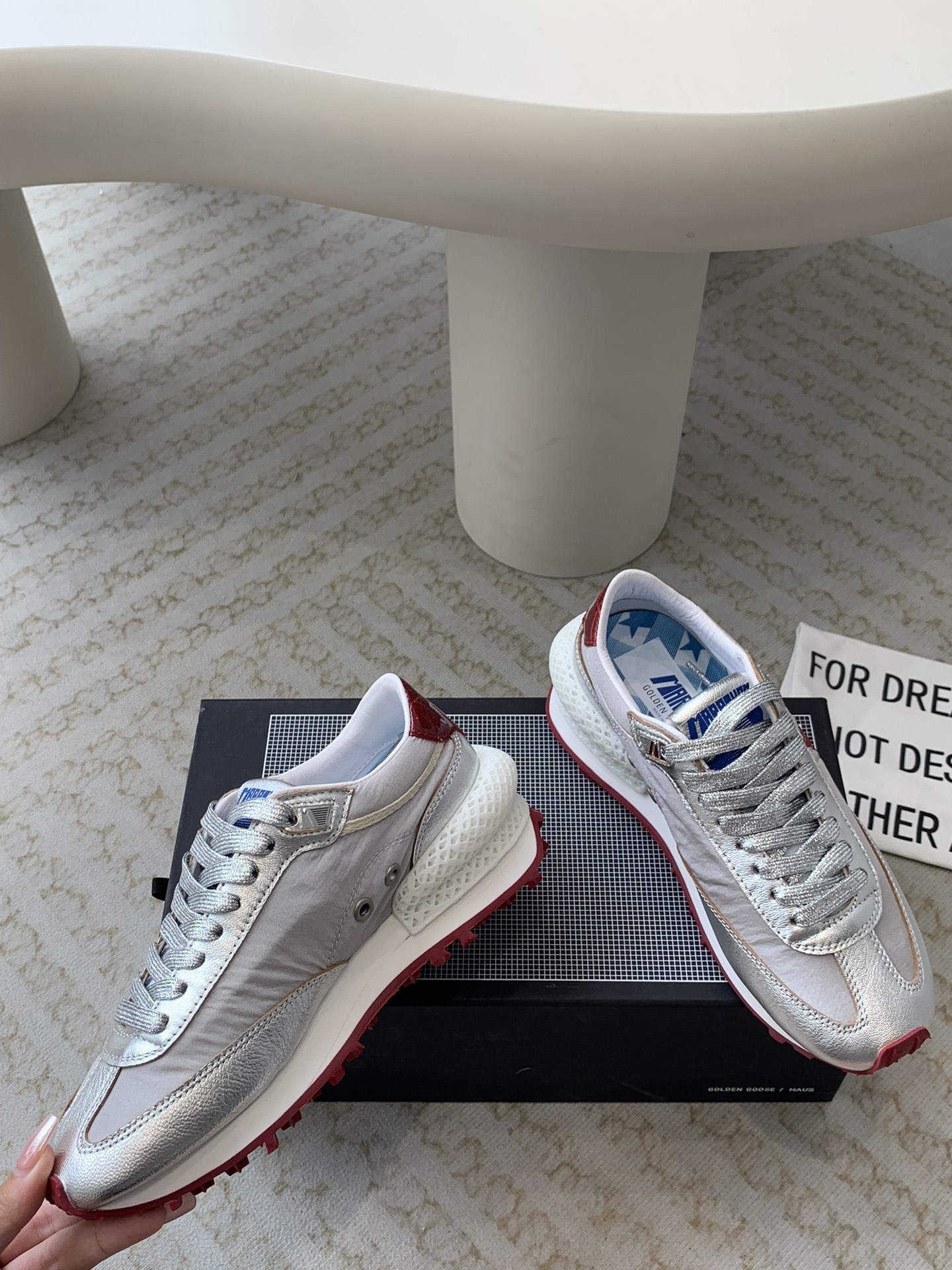 这款鞋子是AAAAA 1:1 质量 (非常棒). 使用了和原版一模一样的材料. 商标部分也保持了和Golden Goose一样. 图片拍摄是实物鞋子拍摄, 您所收到的实物保证和我们图片一模一样.