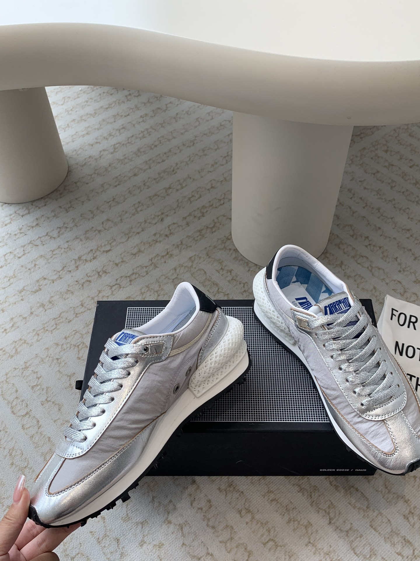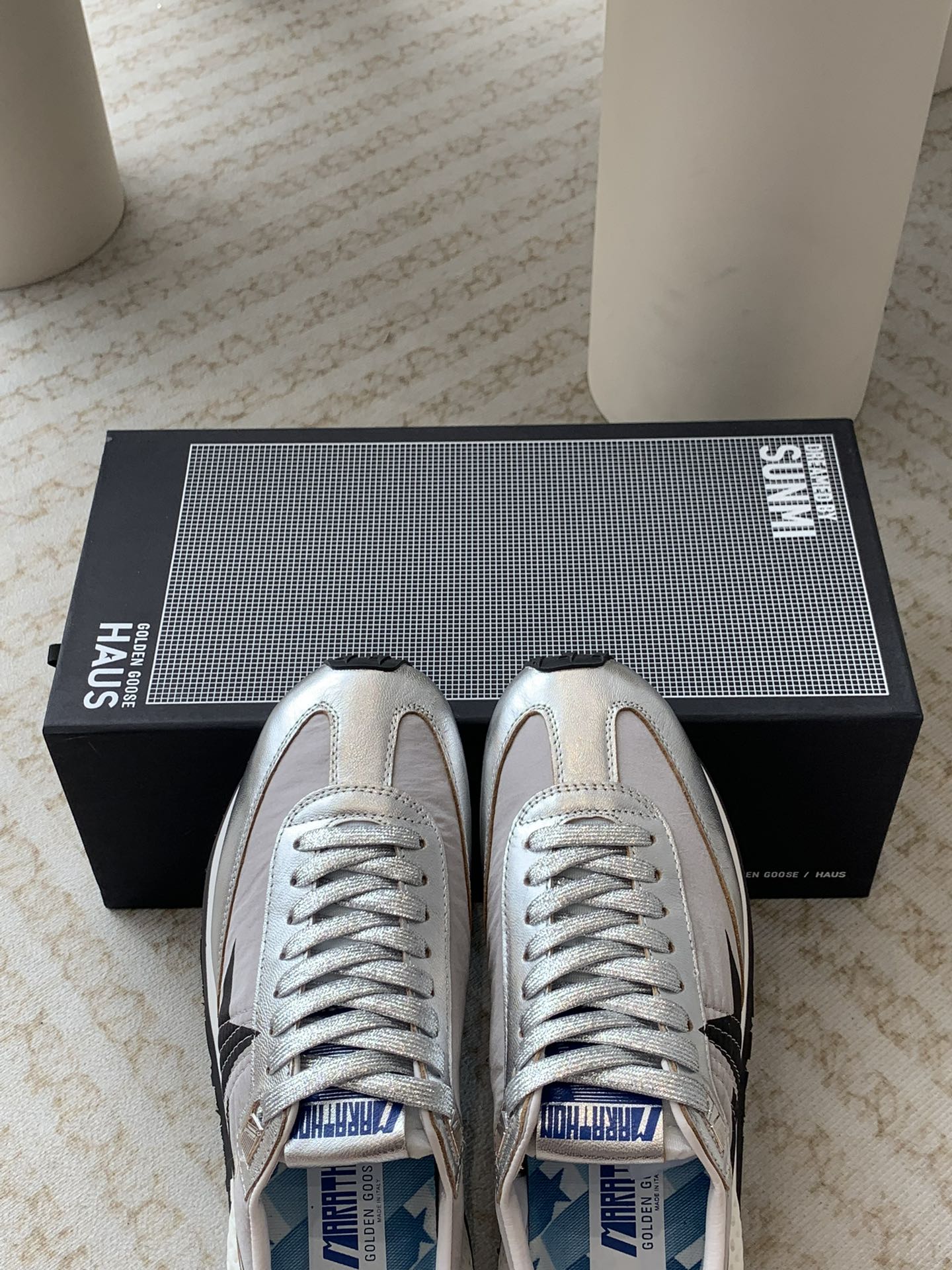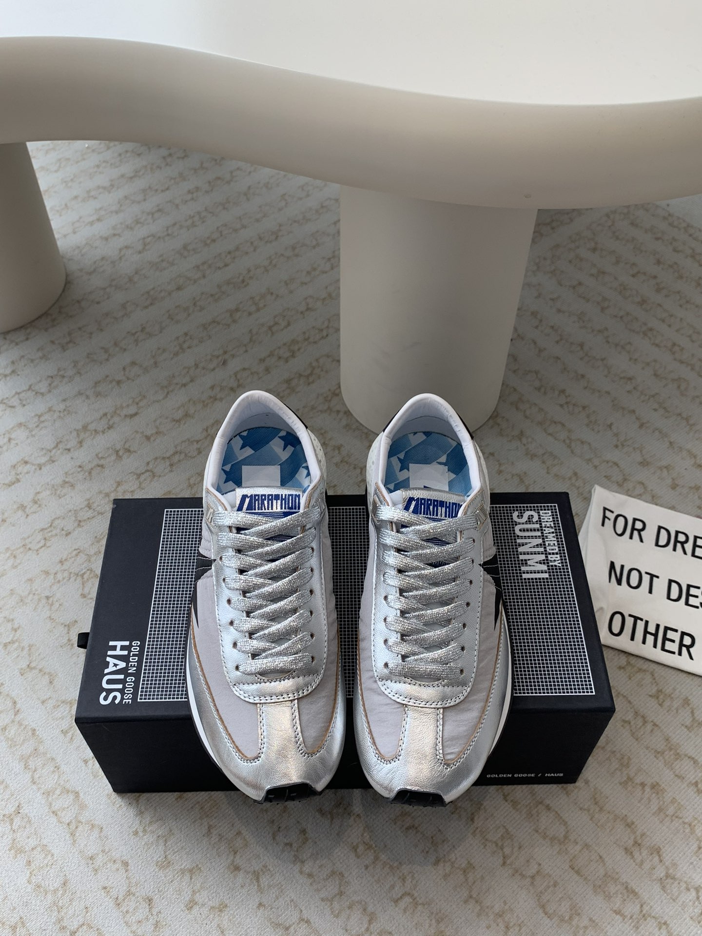 这款鞋子是AAAAA 1:1 质量 (非常棒). 使用了和原版一模一样的材料. 商标部分也保持了和Golden Goose一样. 图片拍摄是实物鞋子拍摄, 您所收到的实物保证和我们图片一模一样.