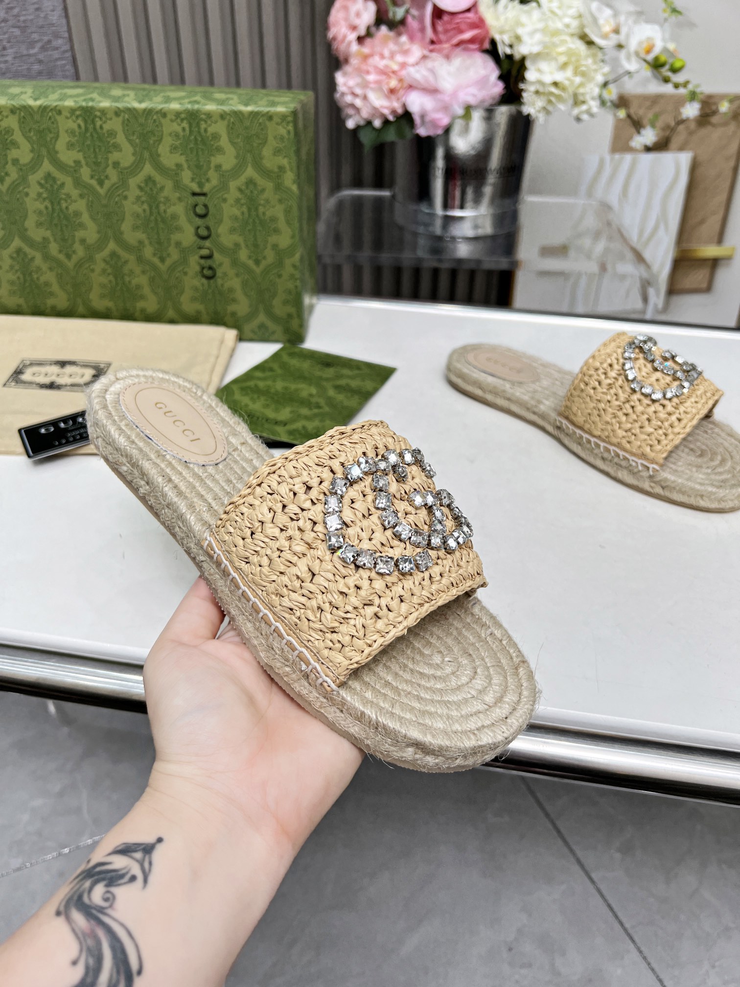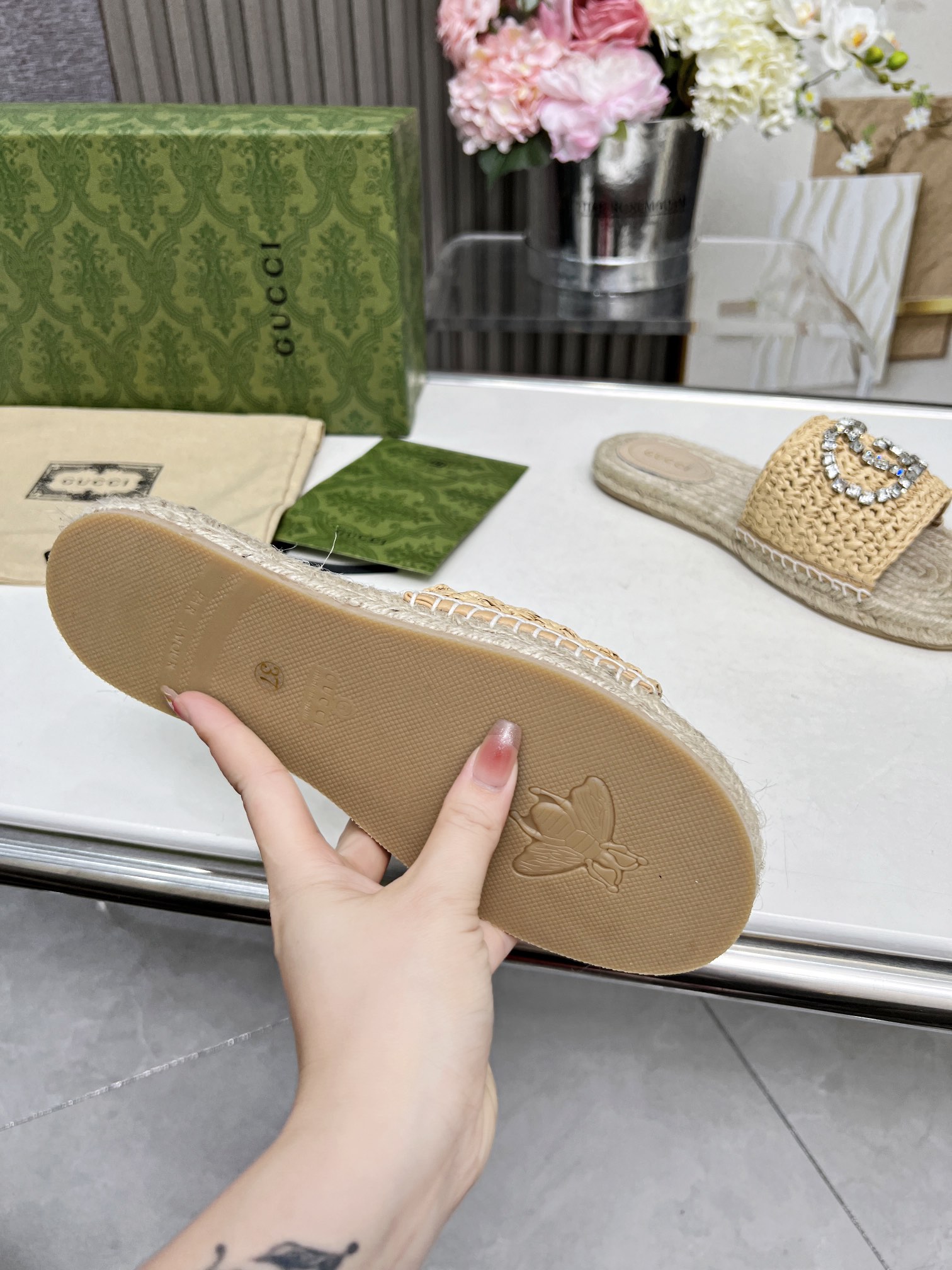 这款鞋子是AAAAA 1:1 质量 (非常棒). 使用了和原版一模一样的材料. 商标部分也保持了和古奇/Gucci一样. 图片拍摄是实物鞋子拍摄, 您所收到的实物保证和我们图片一模一样.