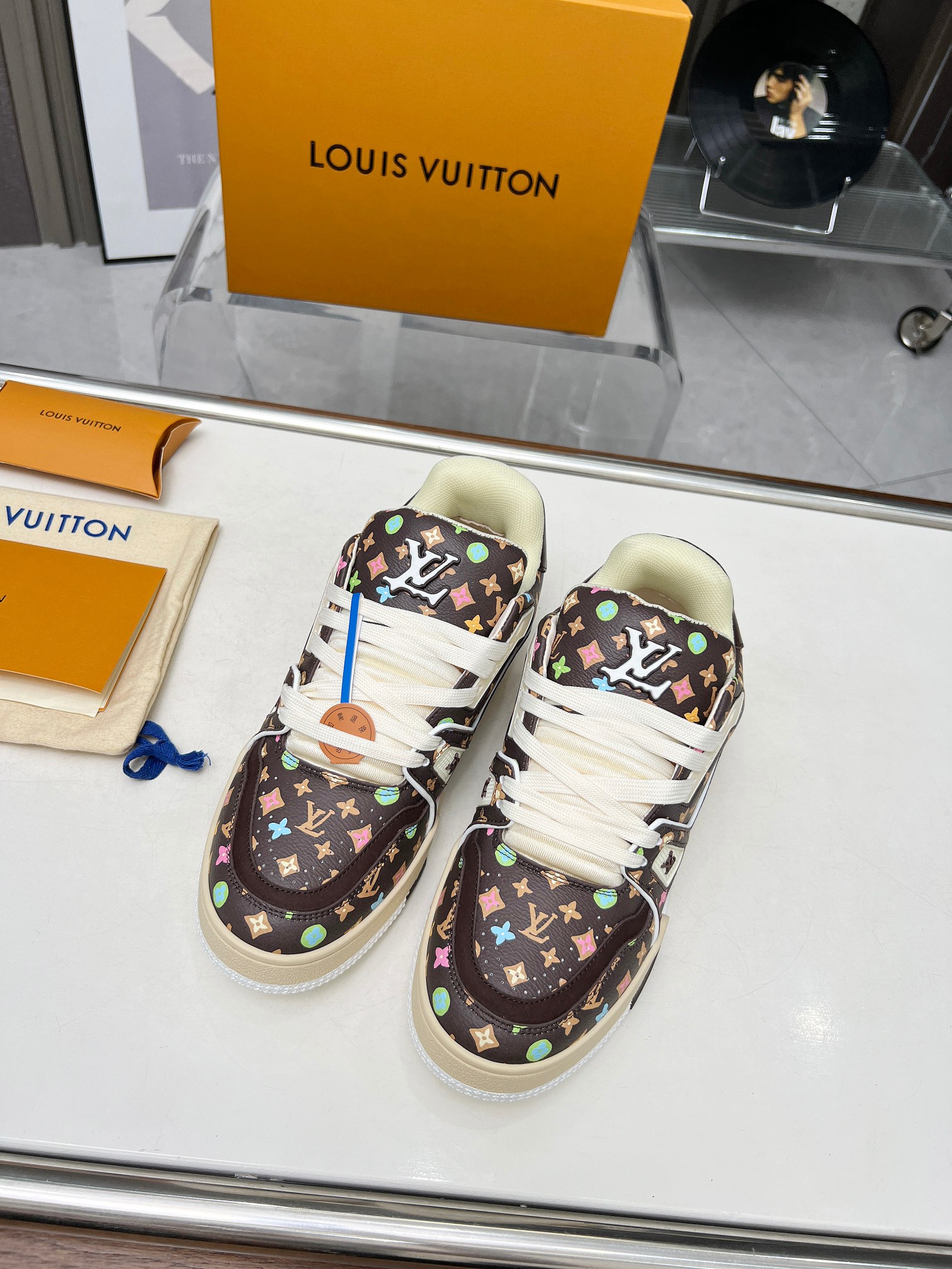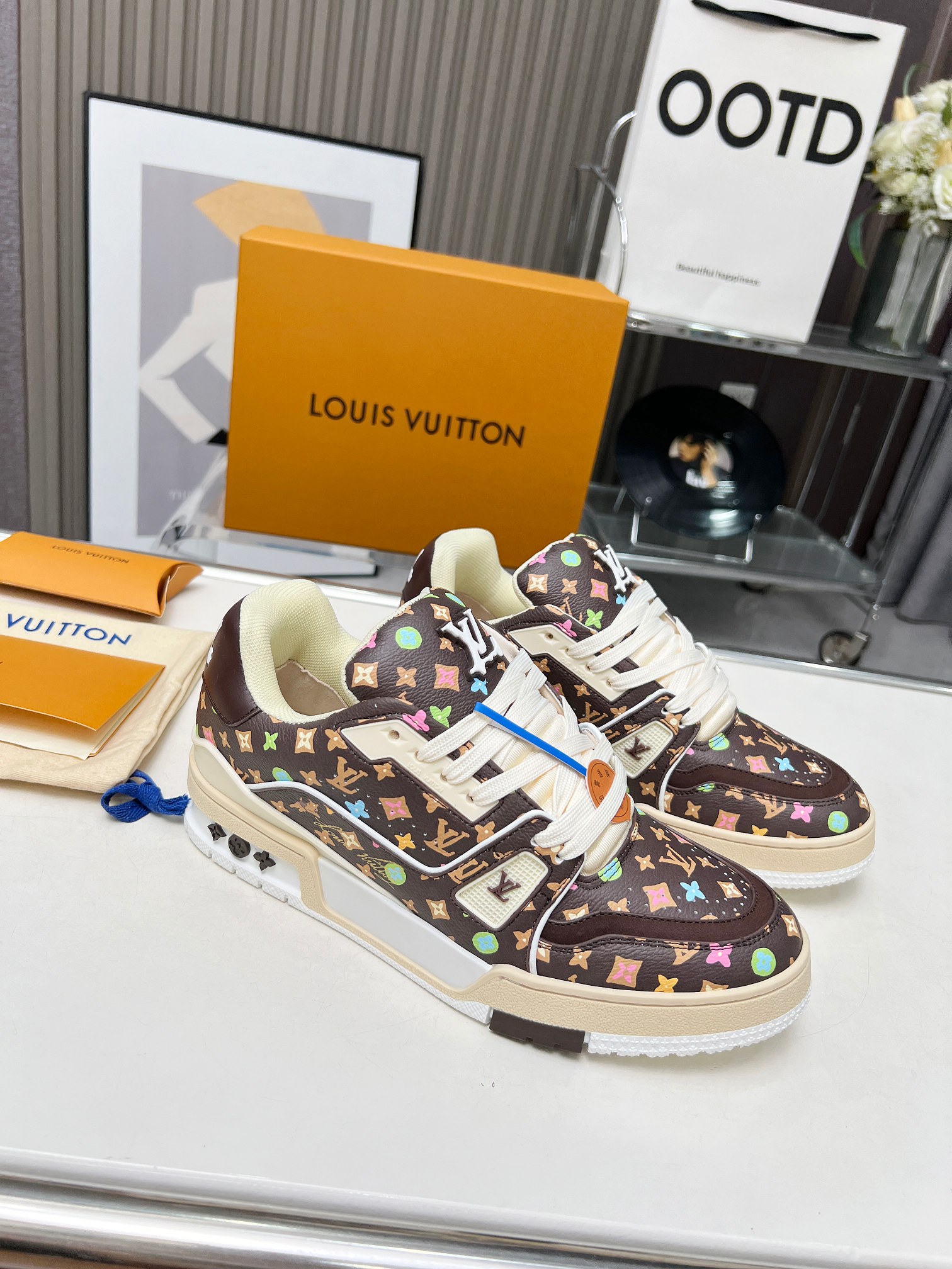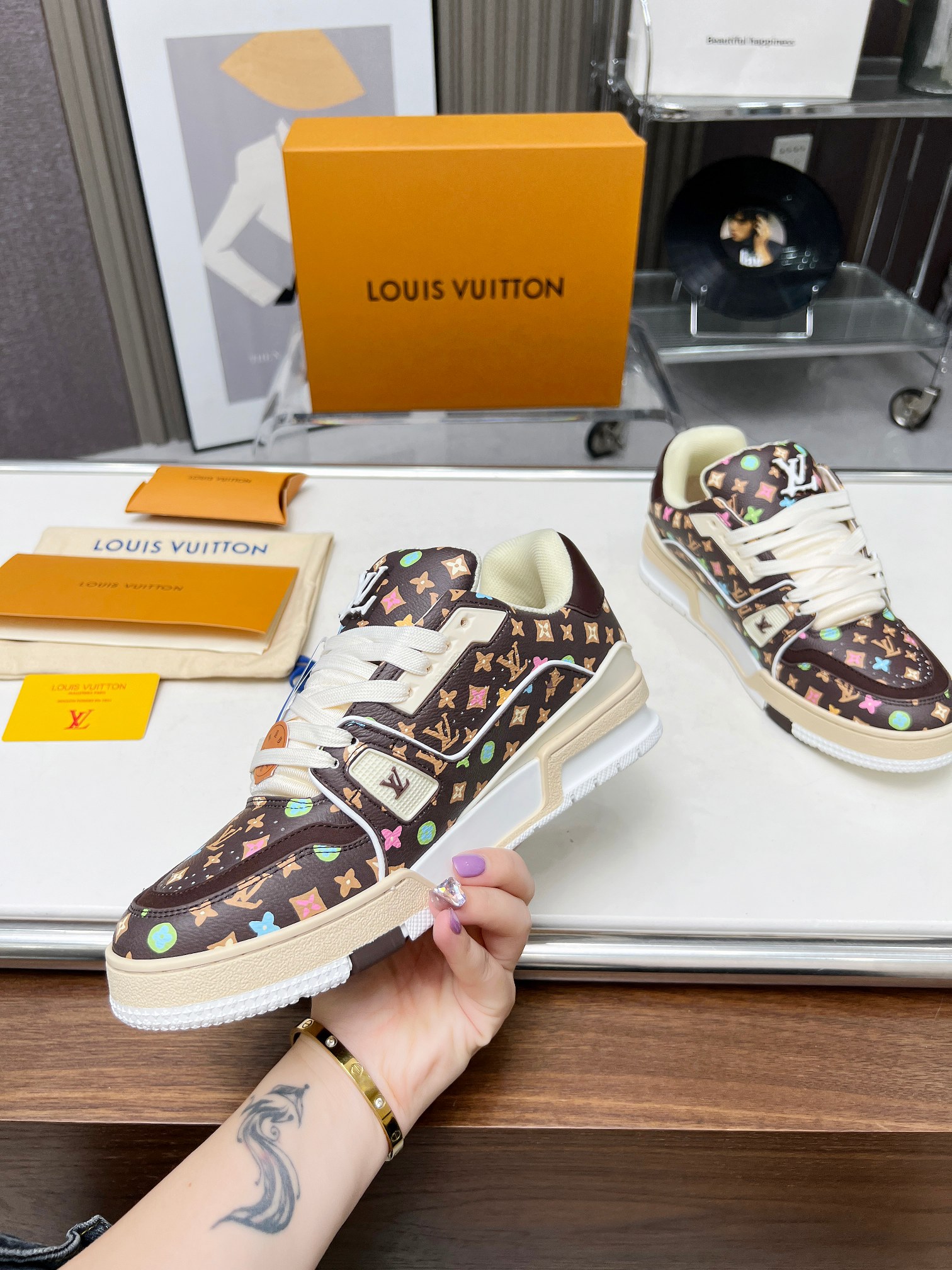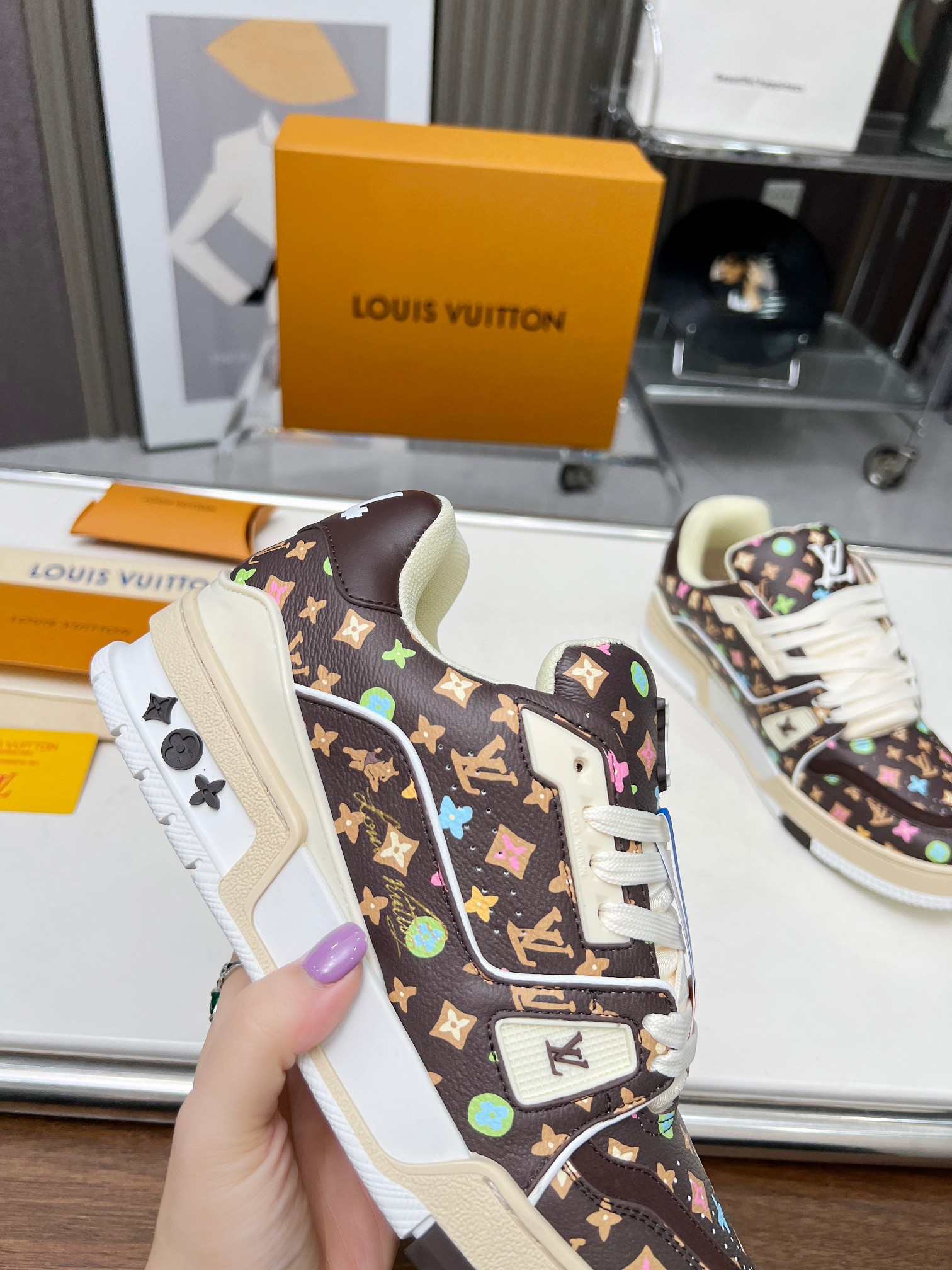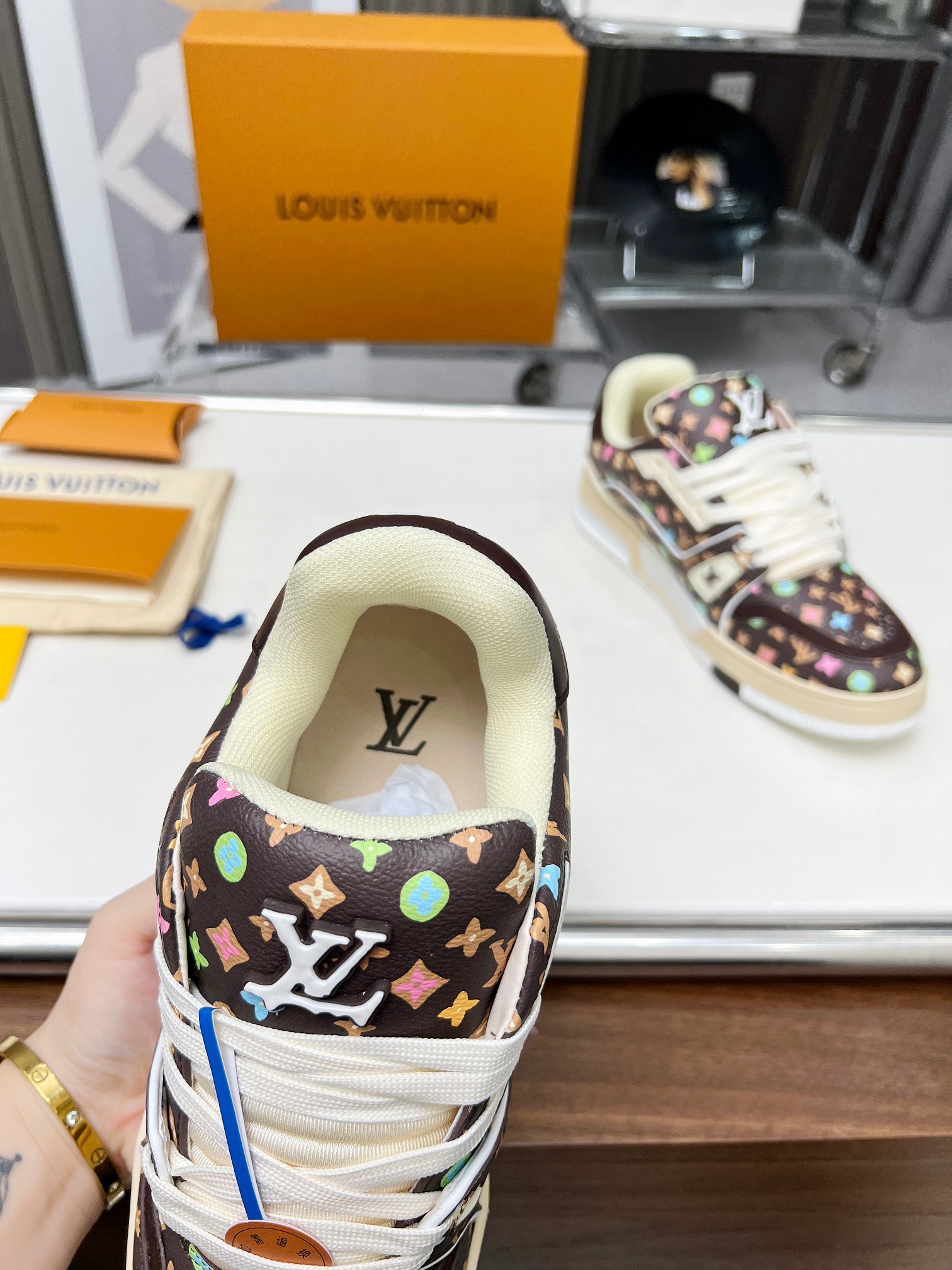 这款鞋子是AAAAA 1:1 质量 (非常棒). 使用了和原版一模一样的材料. 商标部分也保持了和路易威登/Louis Vuitton一样. 图片拍摄是实物鞋子拍摄, 您所收到的实物保证和我们图片一模一样.