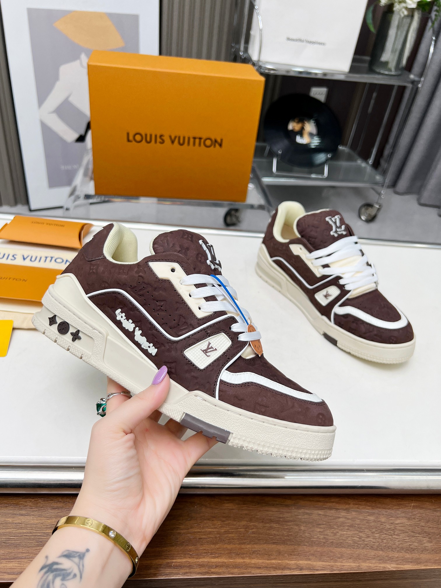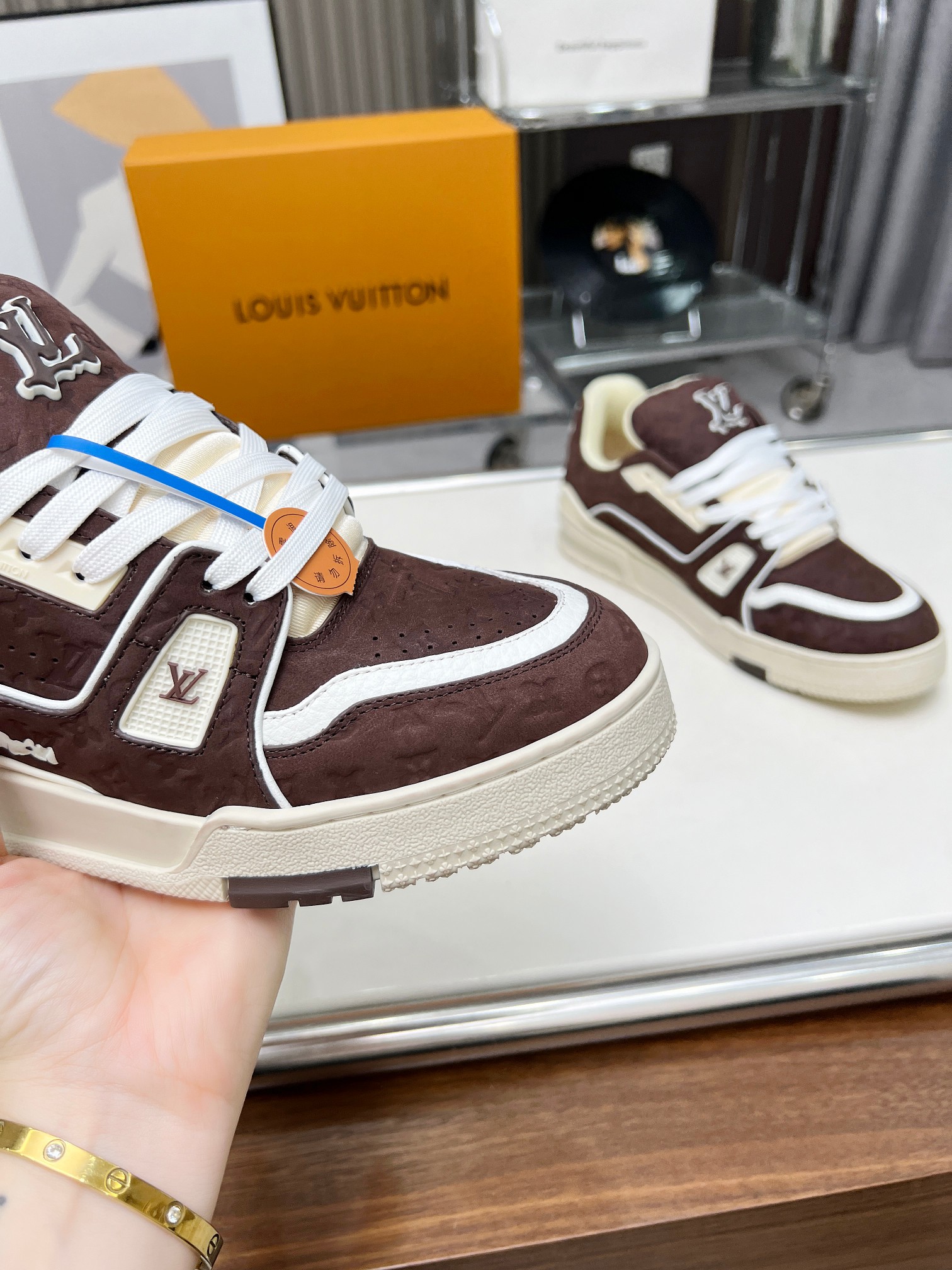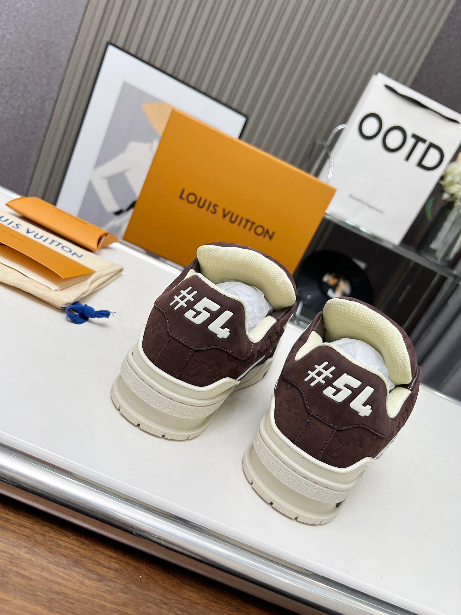 这款鞋子是AAAAA 1:1 质量 (非常棒). 使用了和原版一模一样的材料. 商标部分也保持了和路易威登/Louis Vuitton一样. 图片拍摄是实物鞋子拍摄, 您所收到的实物保证和我们图片一模一样.