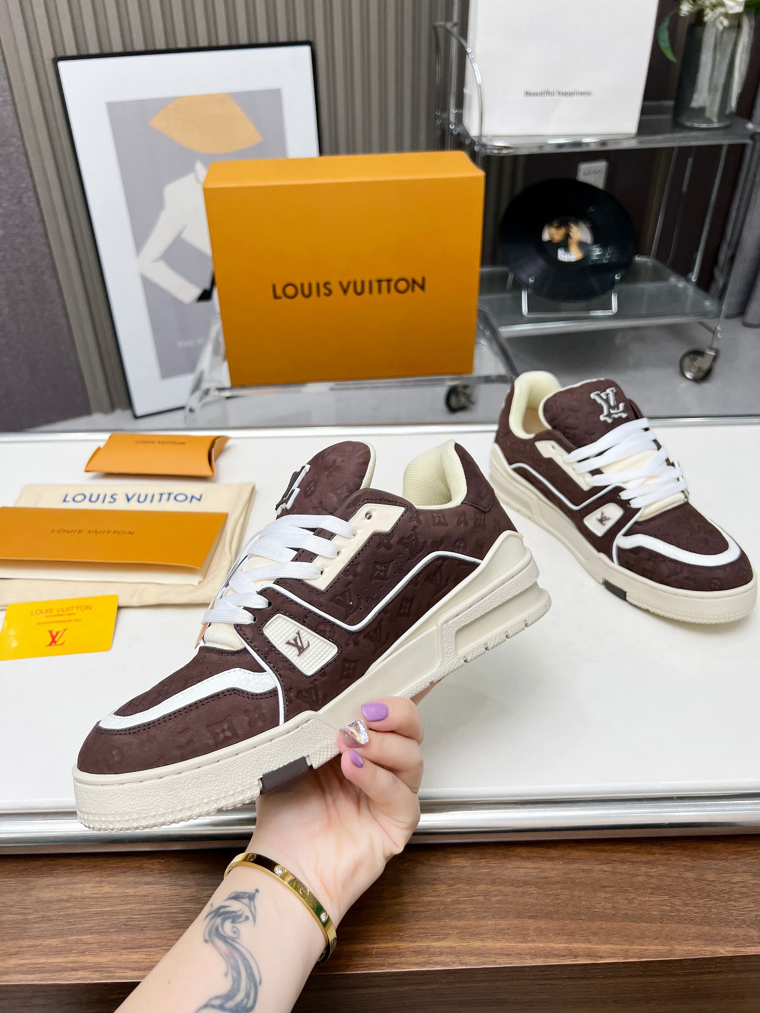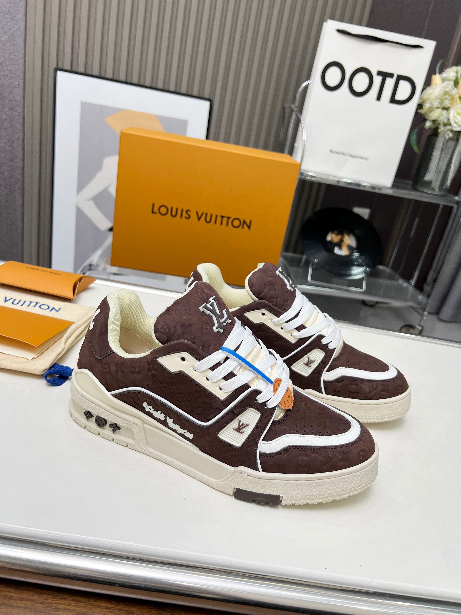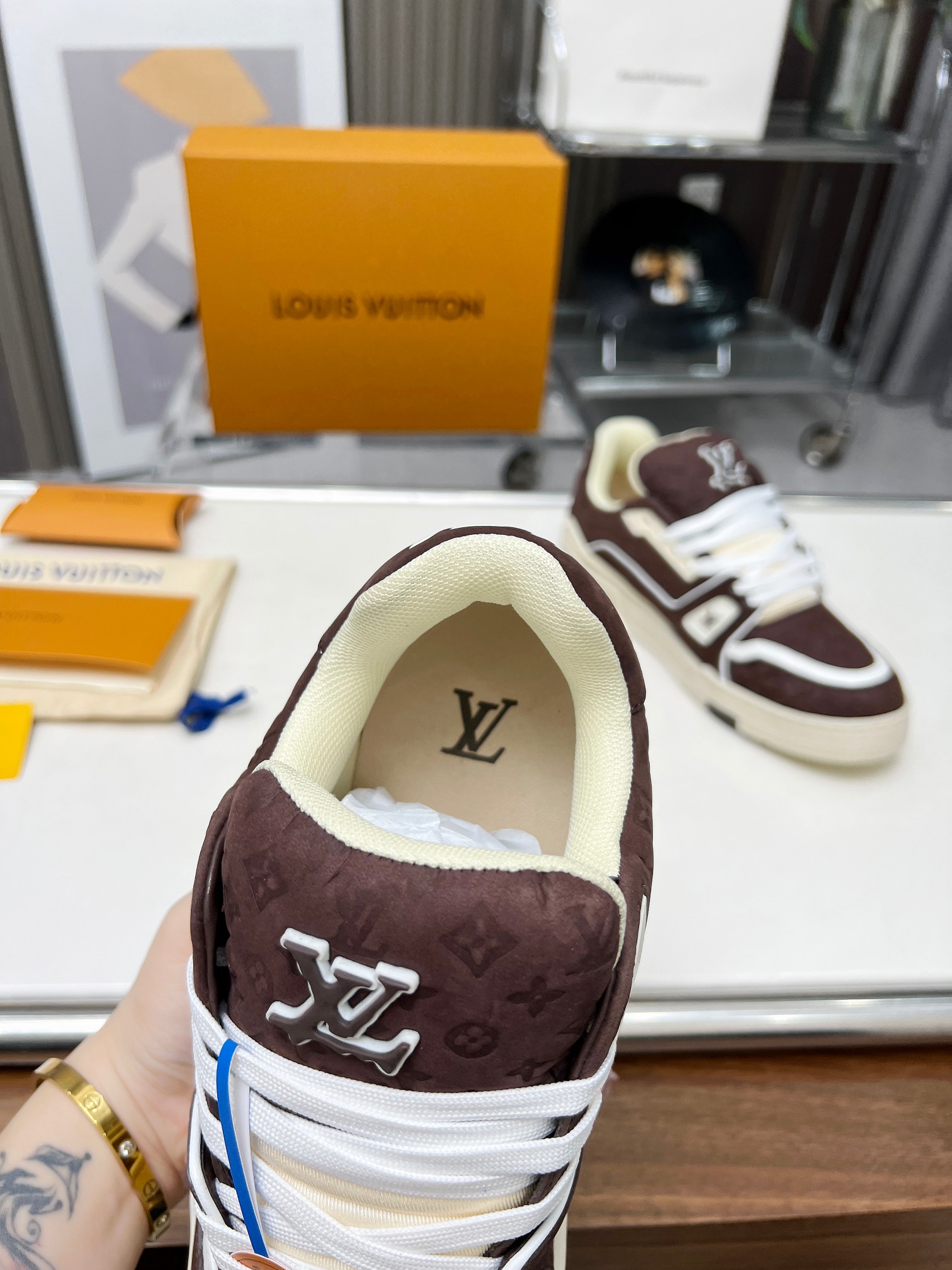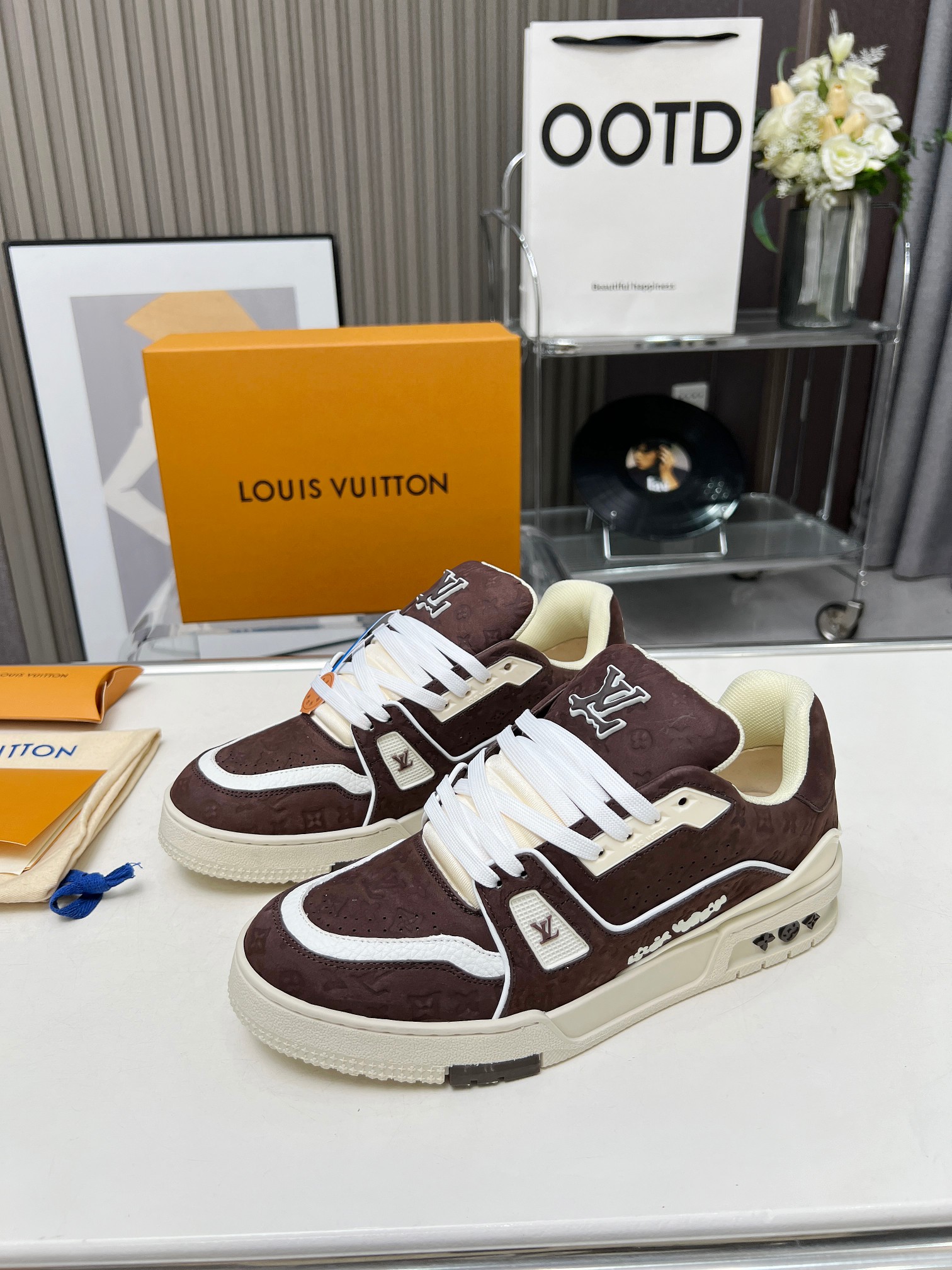 这款鞋子是AAAAA 1:1 质量 (非常棒). 使用了和原版一模一样的材料. 商标部分也保持了和路易威登/Louis Vuitton一样. 图片拍摄是实物鞋子拍摄, 您所收到的实物保证和我们图片一模一样.