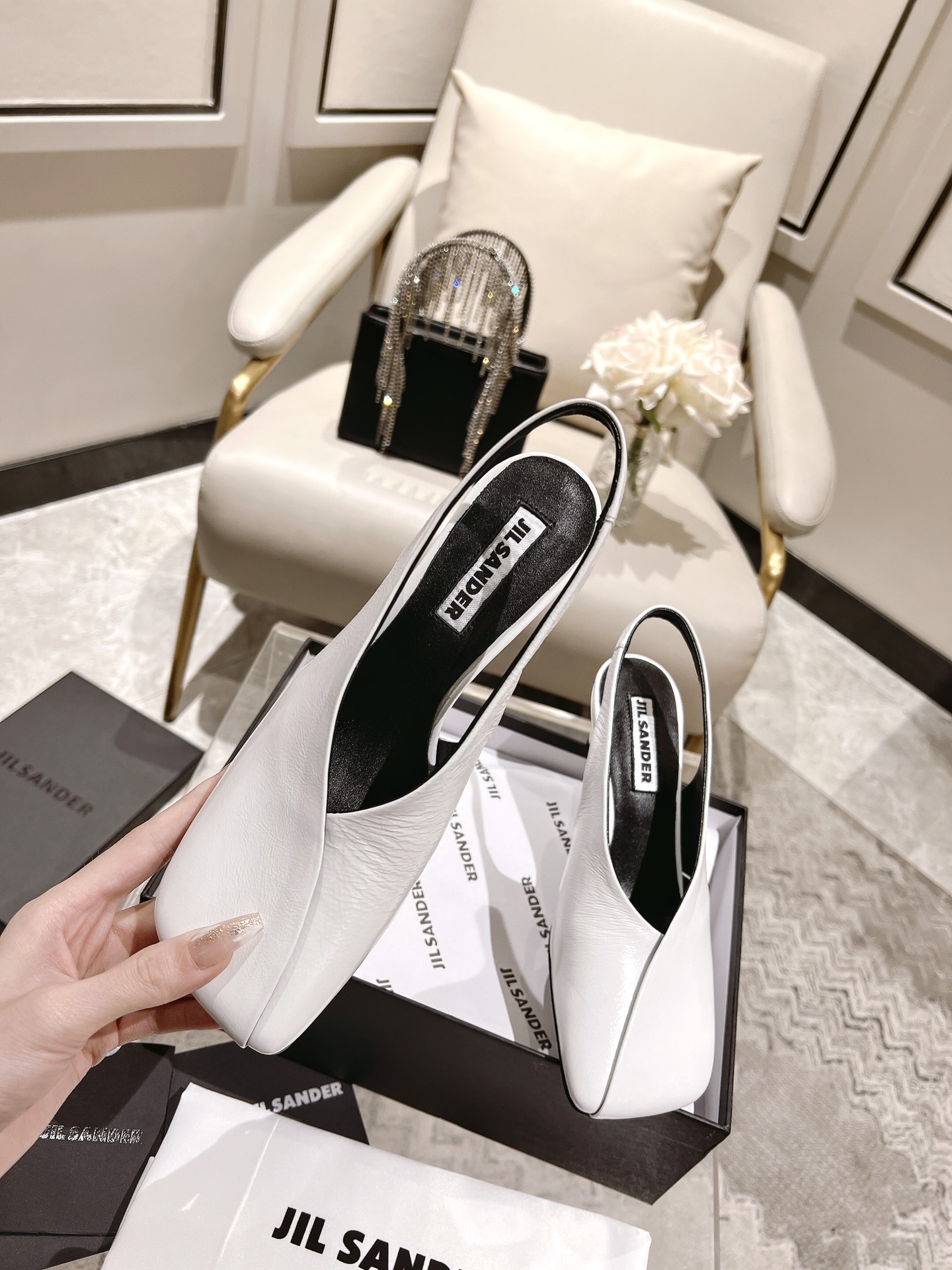 这款鞋子是AAAAA 1:1 质量 (非常棒). 使用了和原版一模一样的材料. 商标部分也保持了和Jil Sander一样. 图片拍摄是实物鞋子拍摄, 您所收到的实物保证和我们图片一模一样.