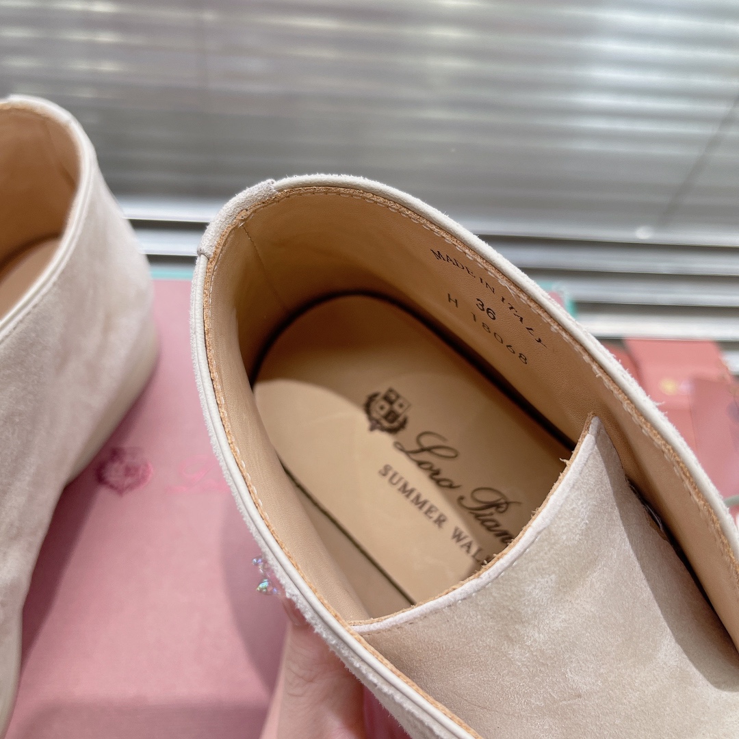 这款鞋子是AAAAA 1:1 质量 (非常棒). 使用了和原版一模一样的材料. 商标部分也保持了和洛罗皮亚纳/Loro Piana一样. 图片拍摄是实物鞋子拍摄, 您所收到的实物保证和我们图片一模一样.