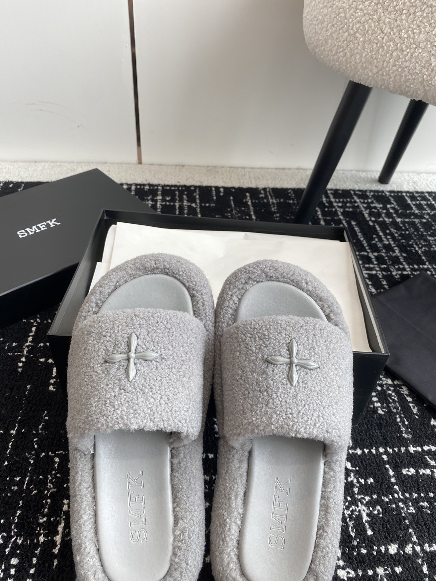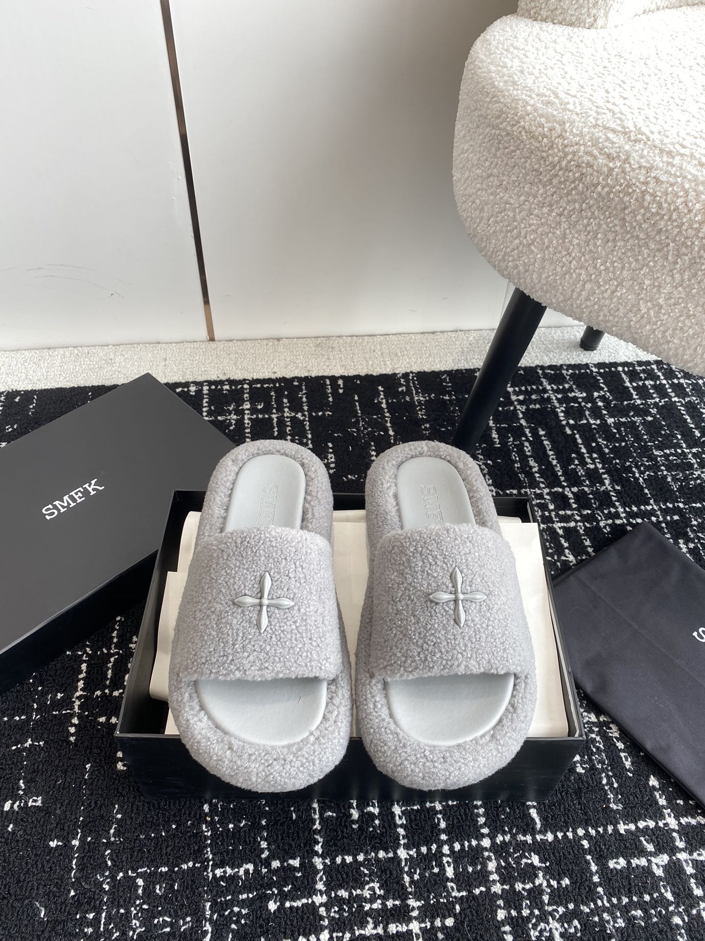 这款鞋子是AAAAA 1:1 质量 (非常棒). 使用了和原版一模一样的材料. 商标部分也保持了和SMFK一样. 图片拍摄是实物鞋子拍摄, 您所收到的实物保证和我们图片一模一样.