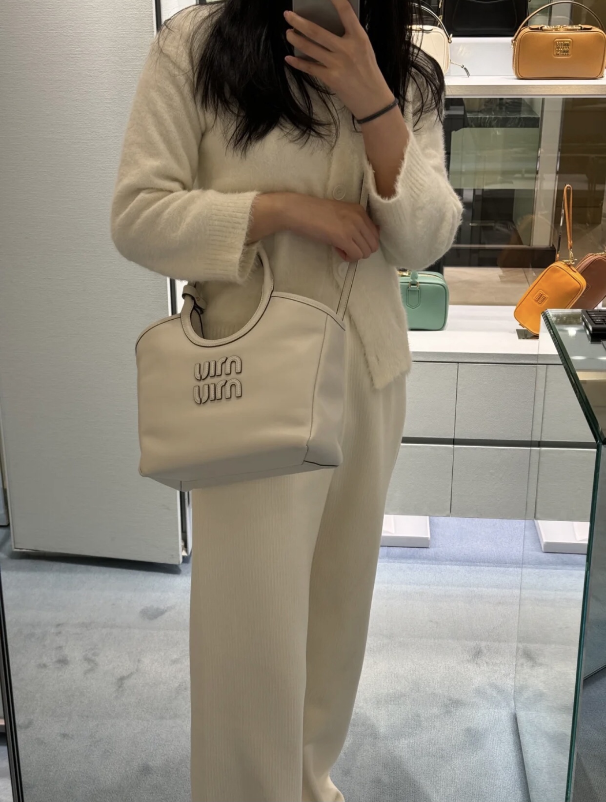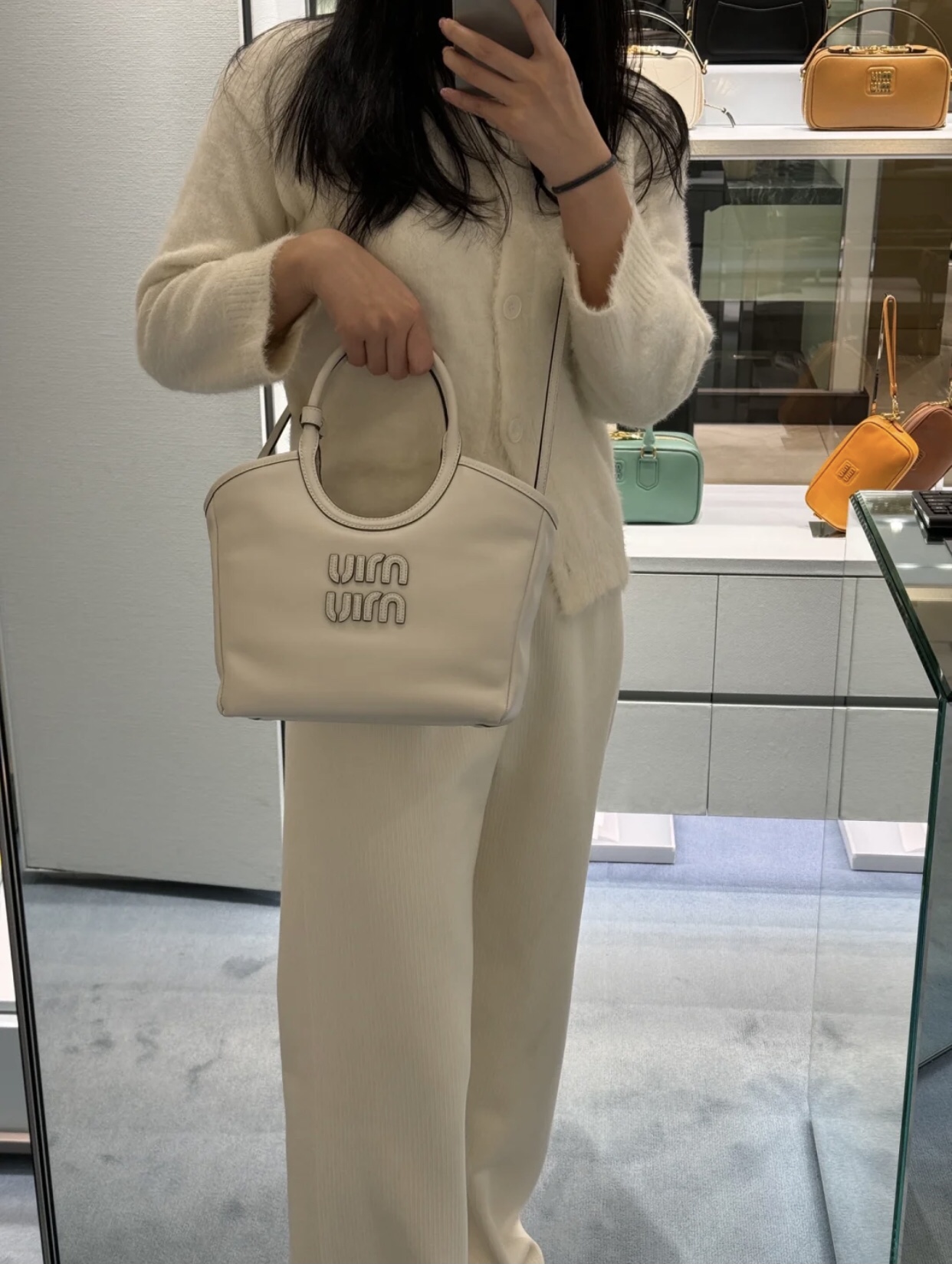 这款包包是AAAAA 1:1 质量 (非常棒). 使用了和原版一模一样的材料. 商标部分也保持了和缪缪/Miu Miu一样. 图片拍摄是实物包包拍摄, 您所收到的实物保证和我们图片一模一样.
