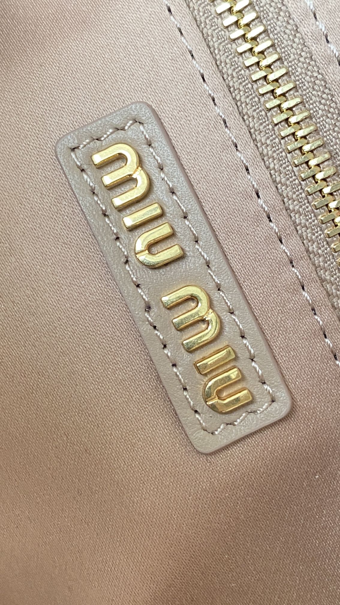 这款包包是AAAAA 1:1 质量 (非常棒). 使用了和原版一模一样的材料. 商标部分也保持了和缪缪/Miu Miu一样. 图片拍摄是实物包包拍摄, 您所收到的实物保证和我们图片一模一样.