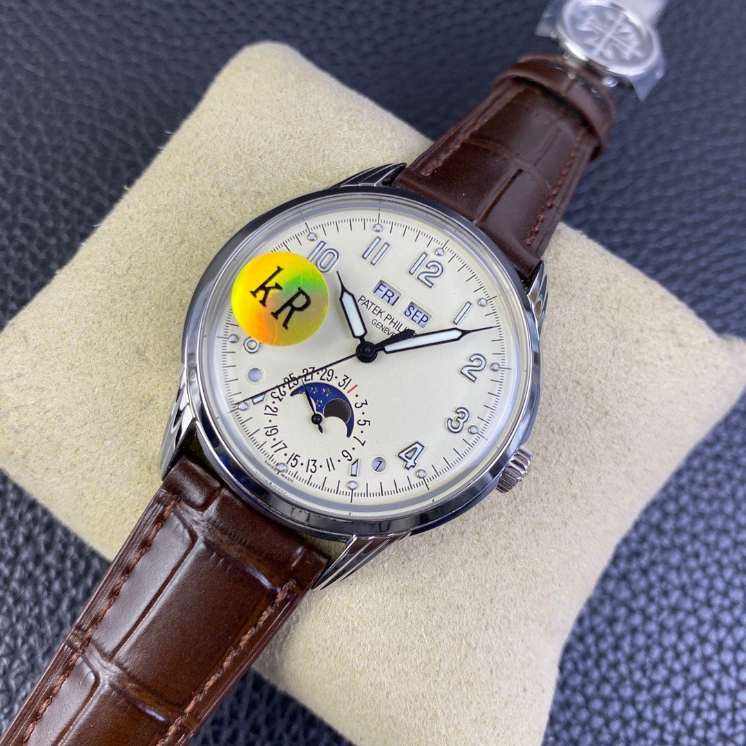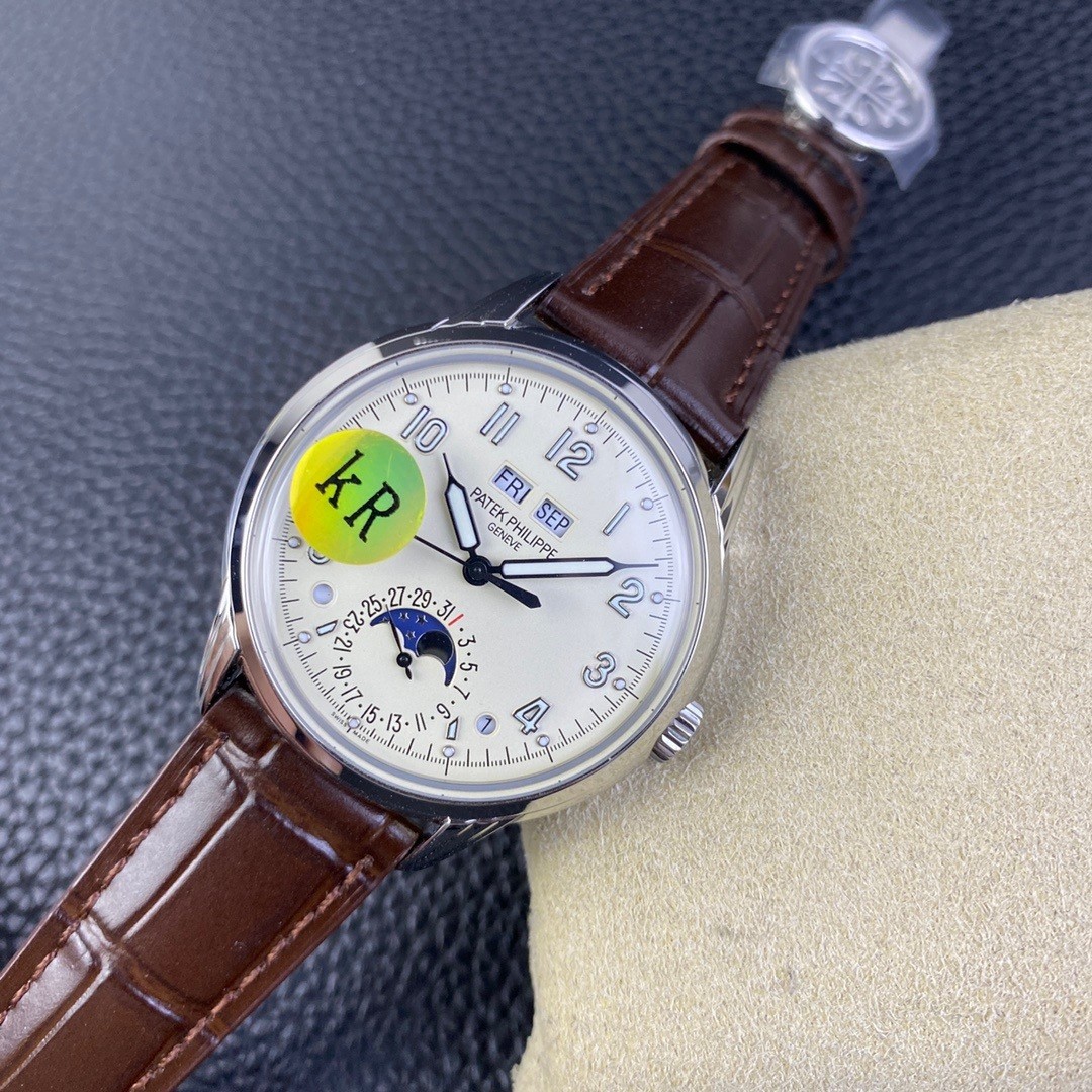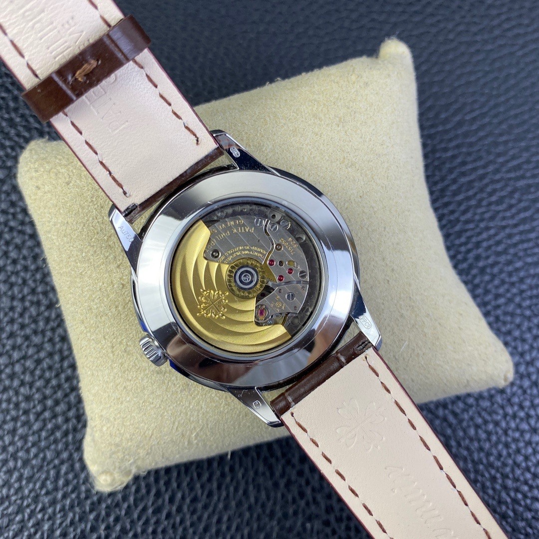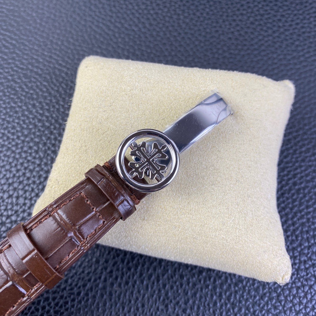 这款手表是AAAAA 1:1 质量 (非常棒). 使用了和原版一模一样的材料. 商标部分也保持了和百达翡丽/Patek Philippe一样. 图片拍摄是实物手表拍摄, 您所收到的实物保证和我们图片一模一样.