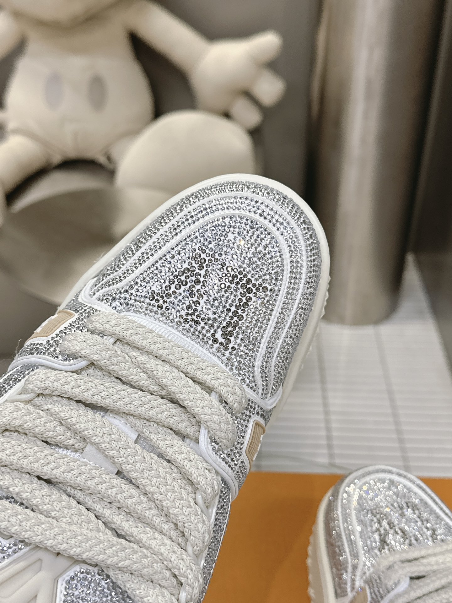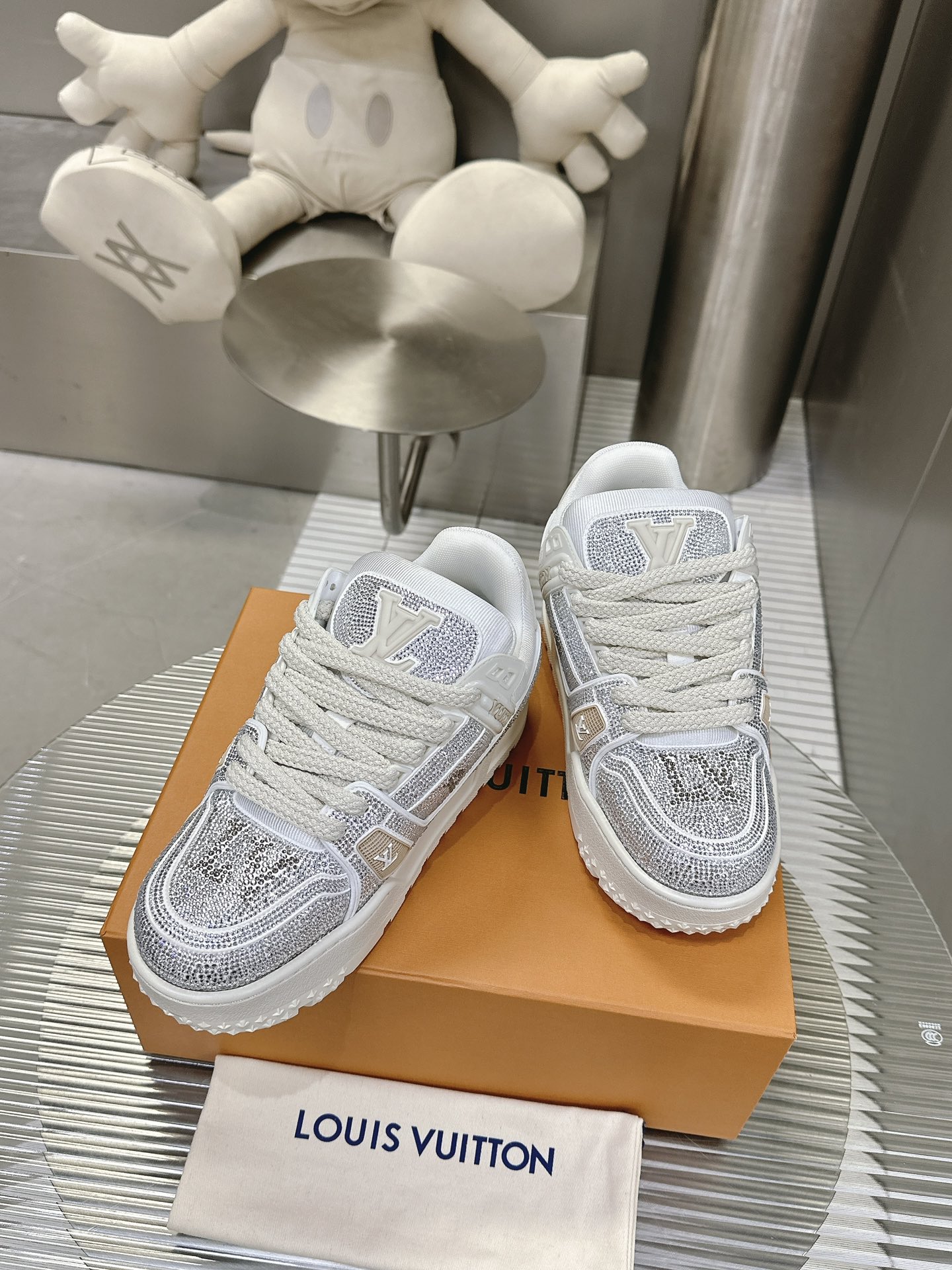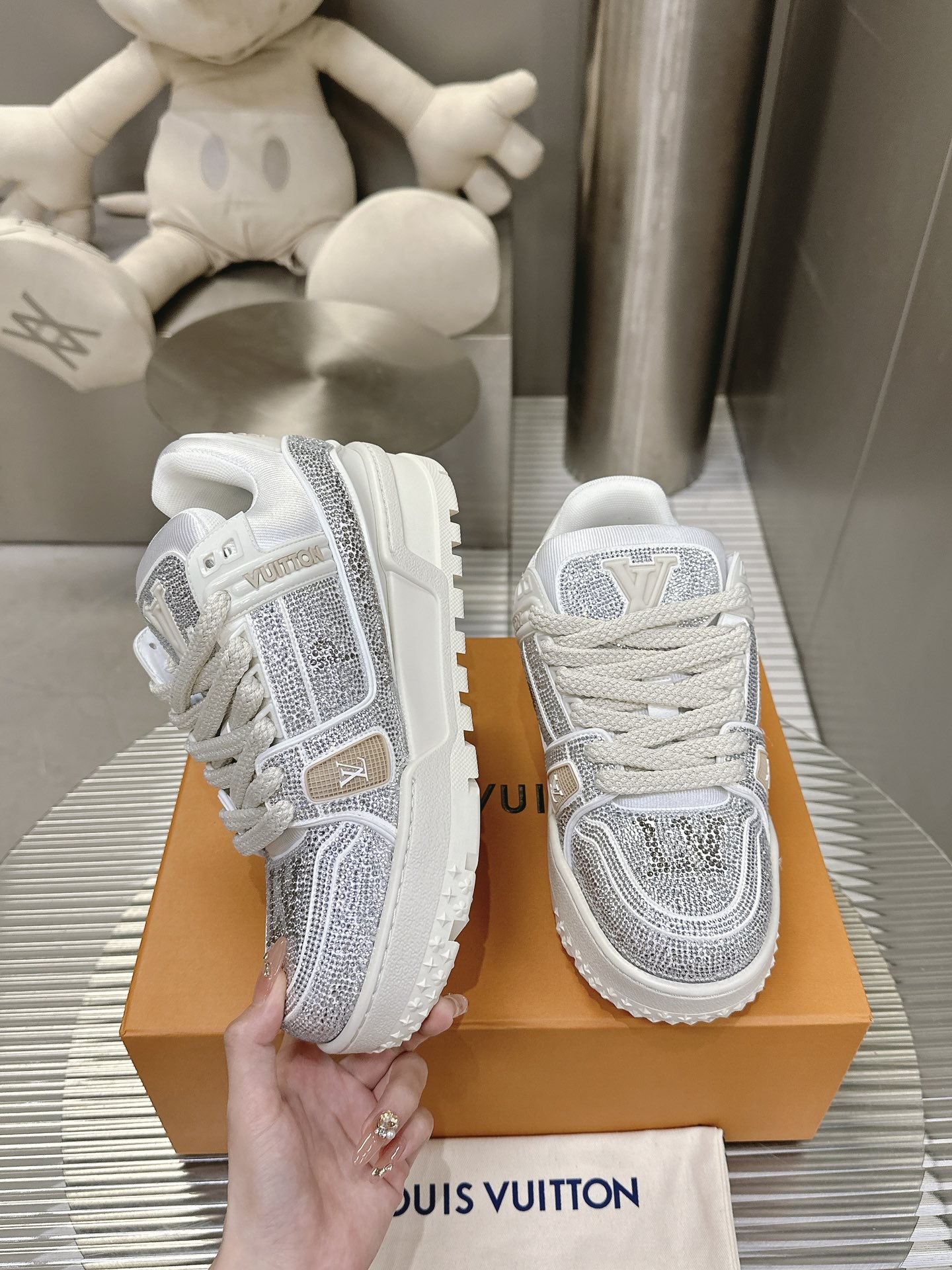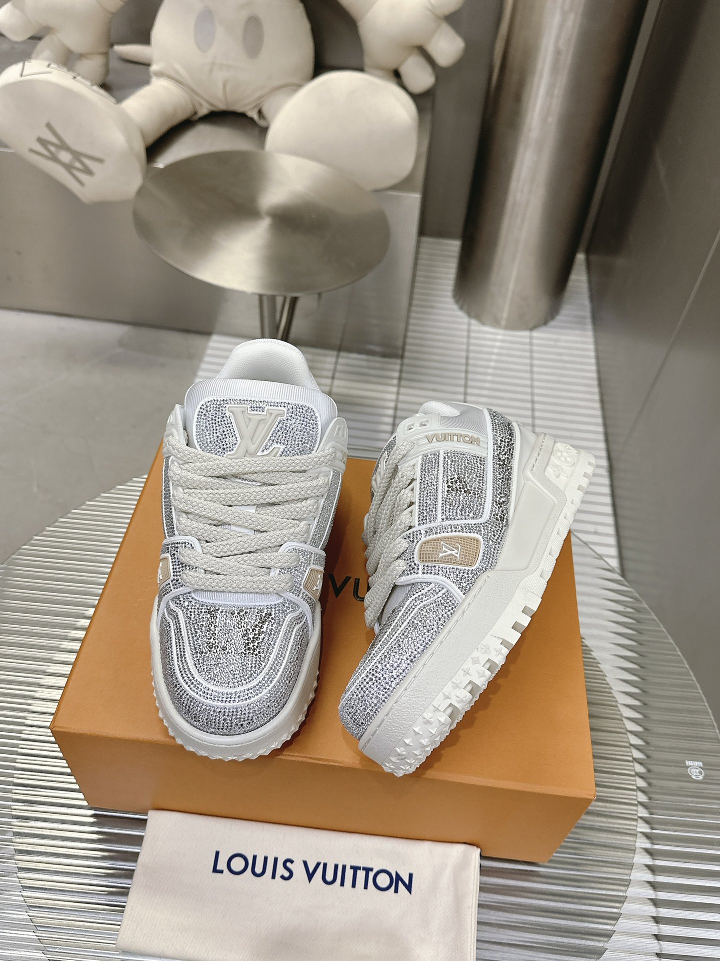 这款鞋子是AAAAA 1:1 质量 (非常棒). 使用了和原版一模一样的材料. 商标部分也保持了和路易威登/Louis Vuitton一样. 图片拍摄是实物鞋子拍摄, 您所收到的实物保证和我们图片一模一样.