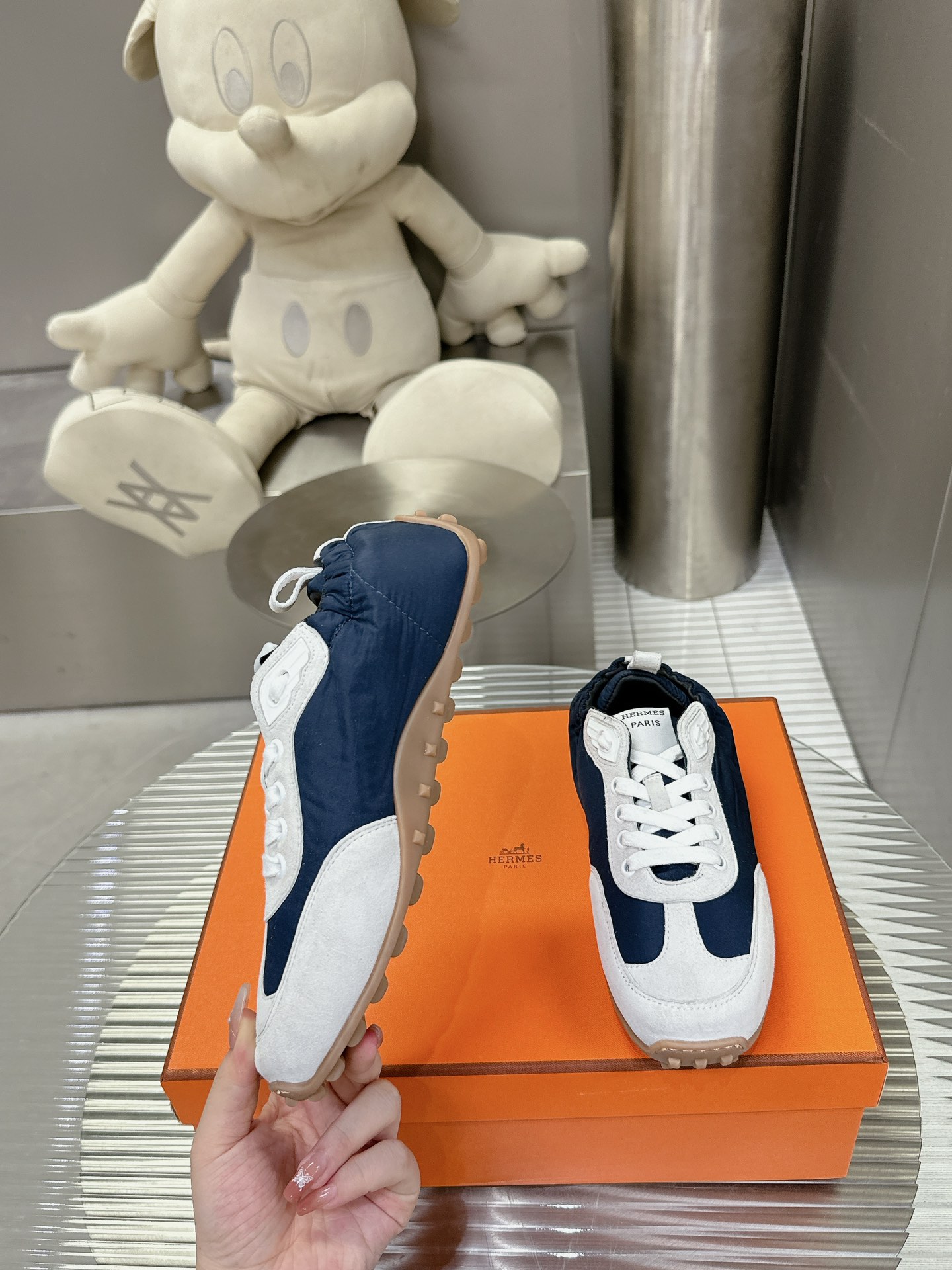 这款鞋子是AAAAA 1:1 质量 (非常棒). 使用了和原版一模一样的材料. 商标部分也保持了和爱马仕/Hermes一样. 图片拍摄是实物鞋子拍摄, 您所收到的实物保证和我们图片一模一样.