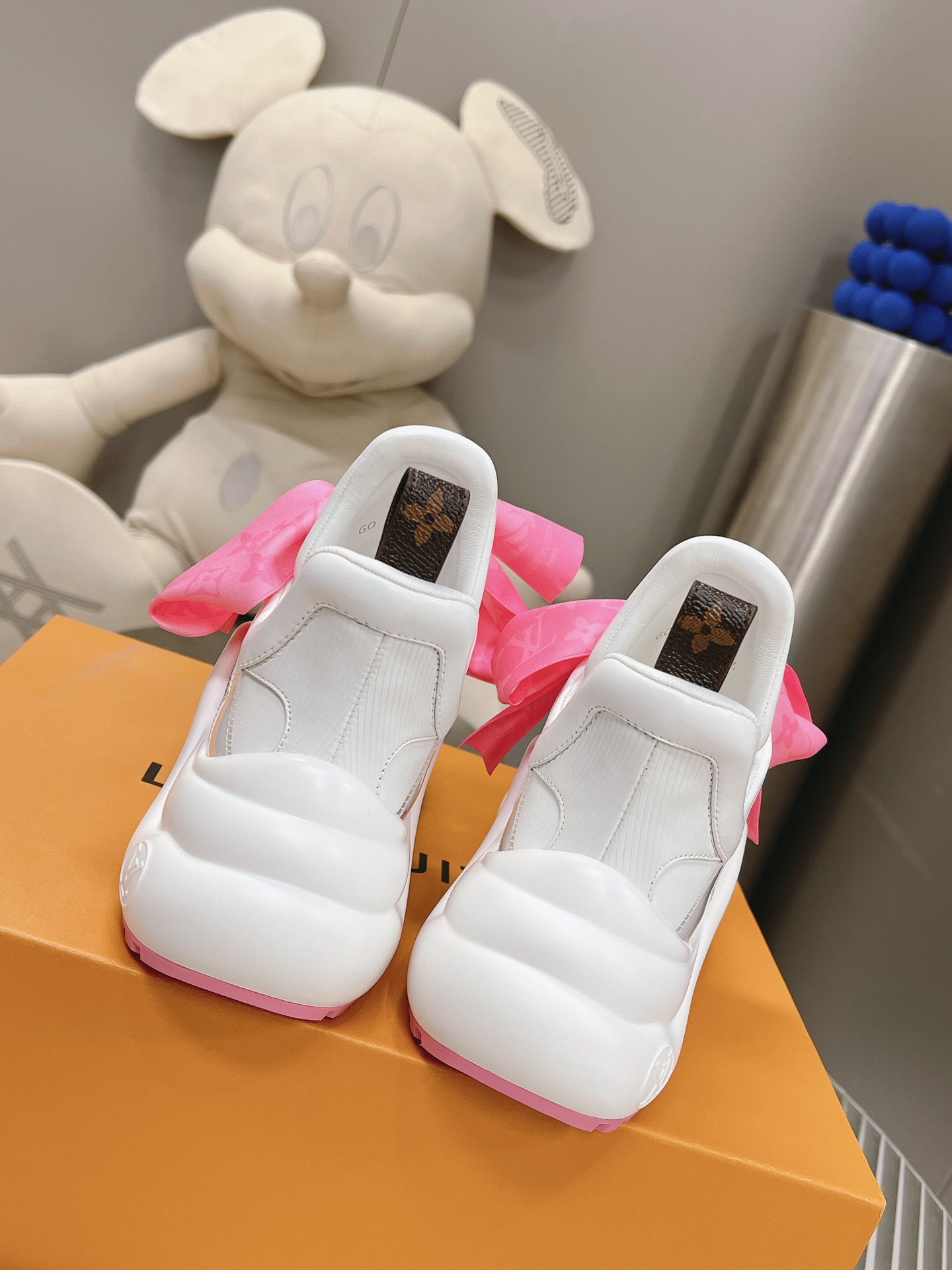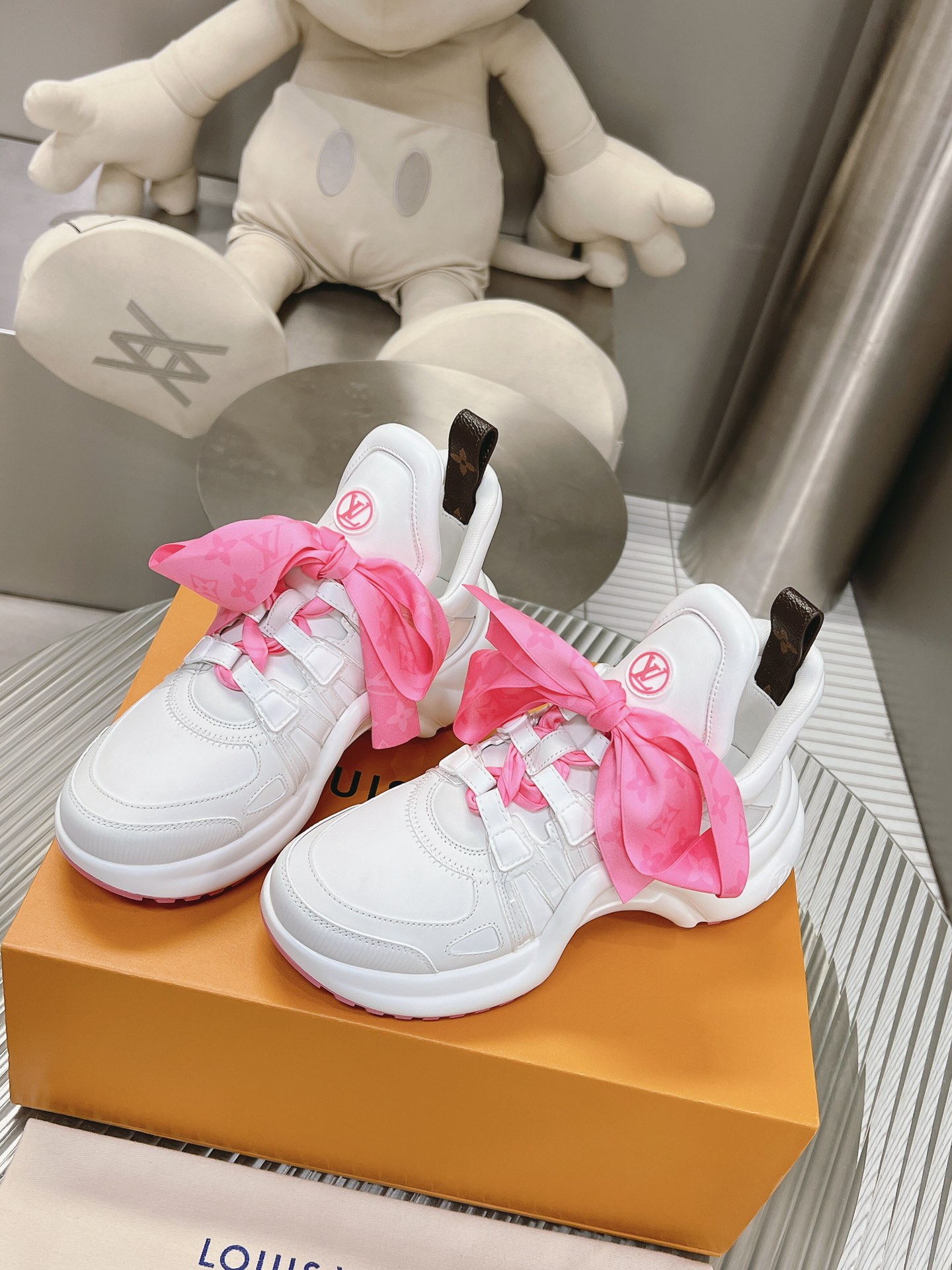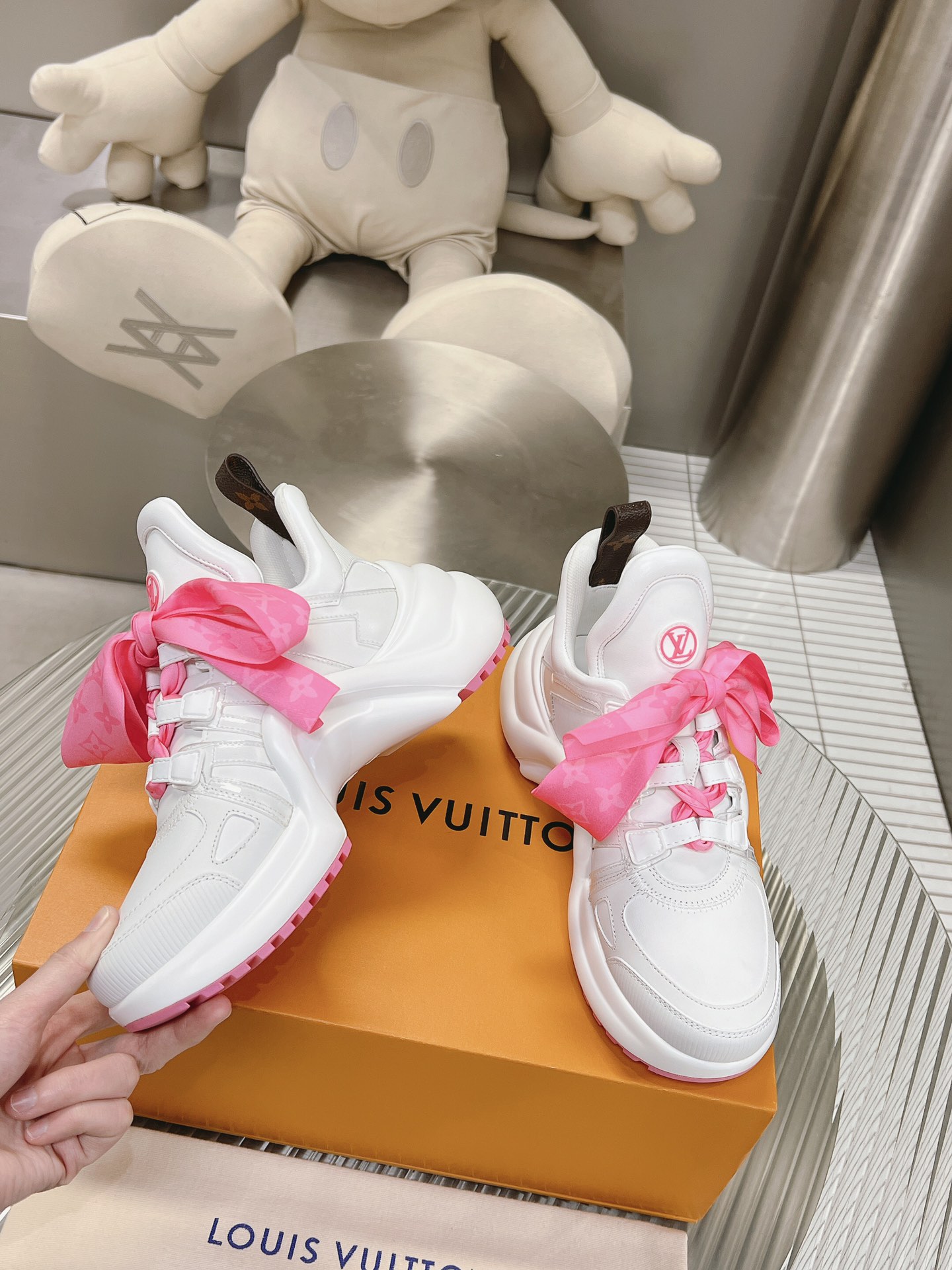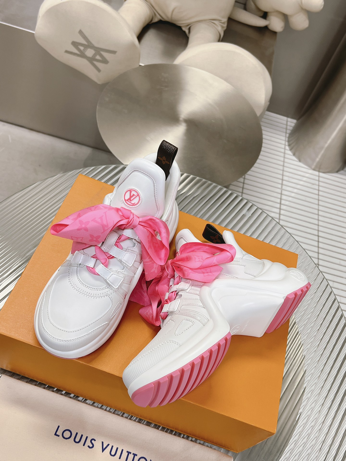 这款鞋子是AAAAA 1:1 质量 (非常棒). 使用了和原版一模一样的材料. 商标部分也保持了和路易威登/Louis Vuitton一样. 图片拍摄是实物鞋子拍摄, 您所收到的实物保证和我们图片一模一样.