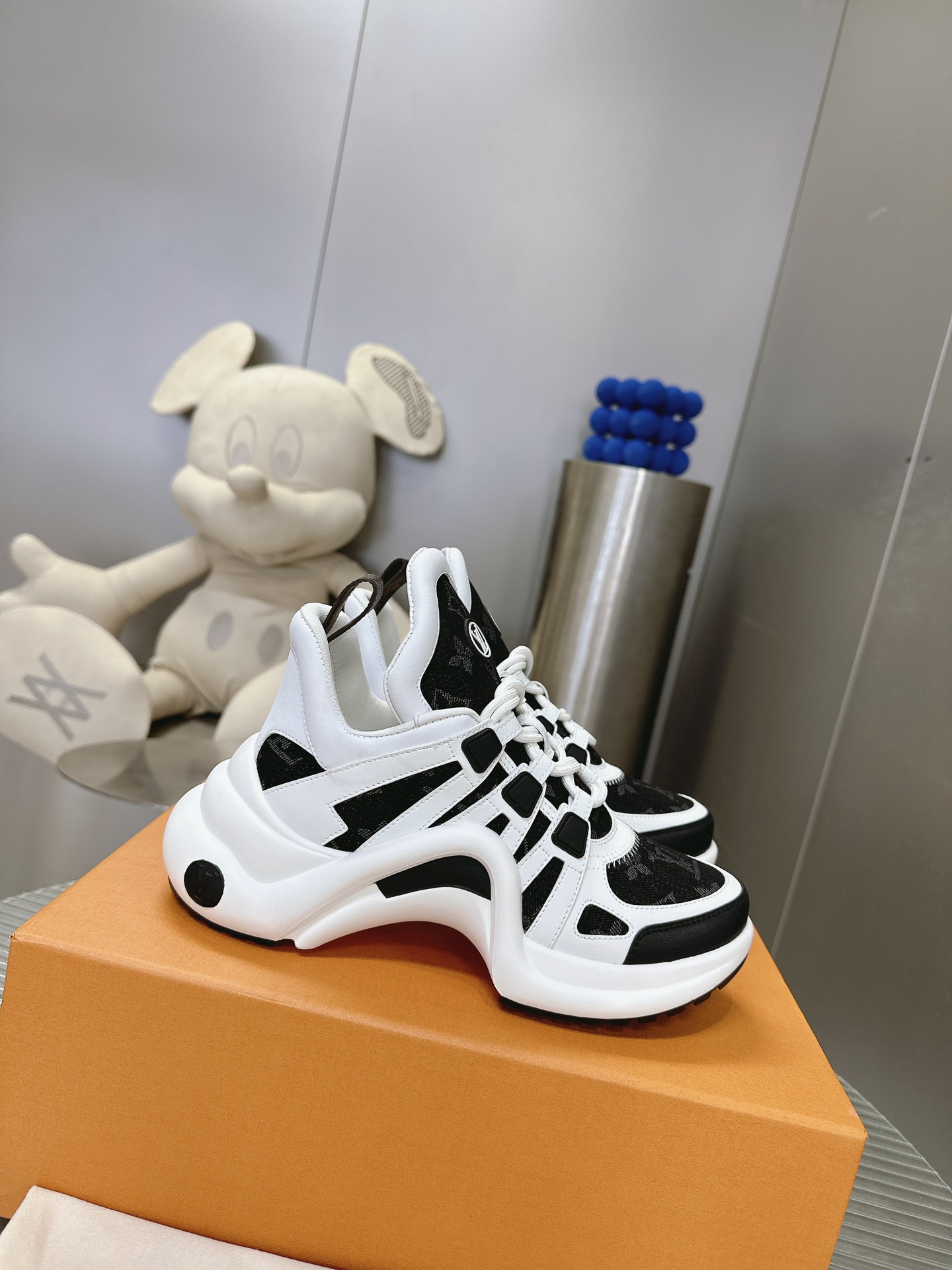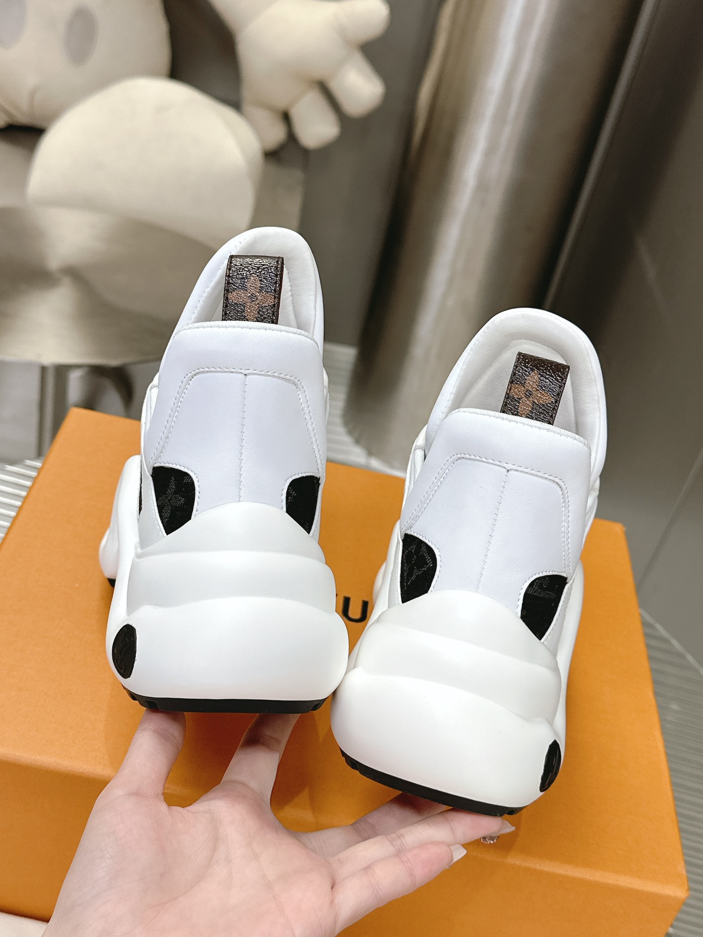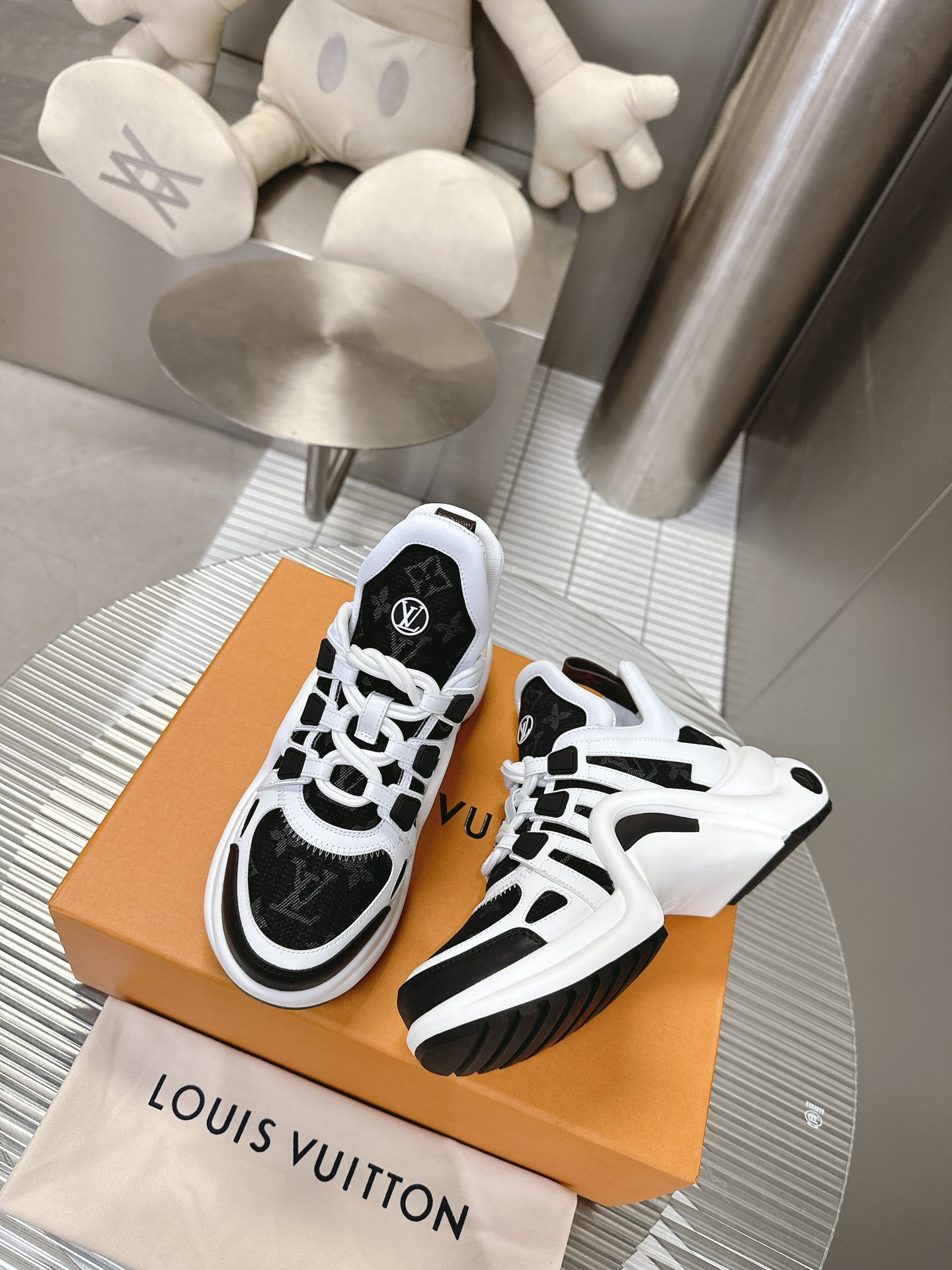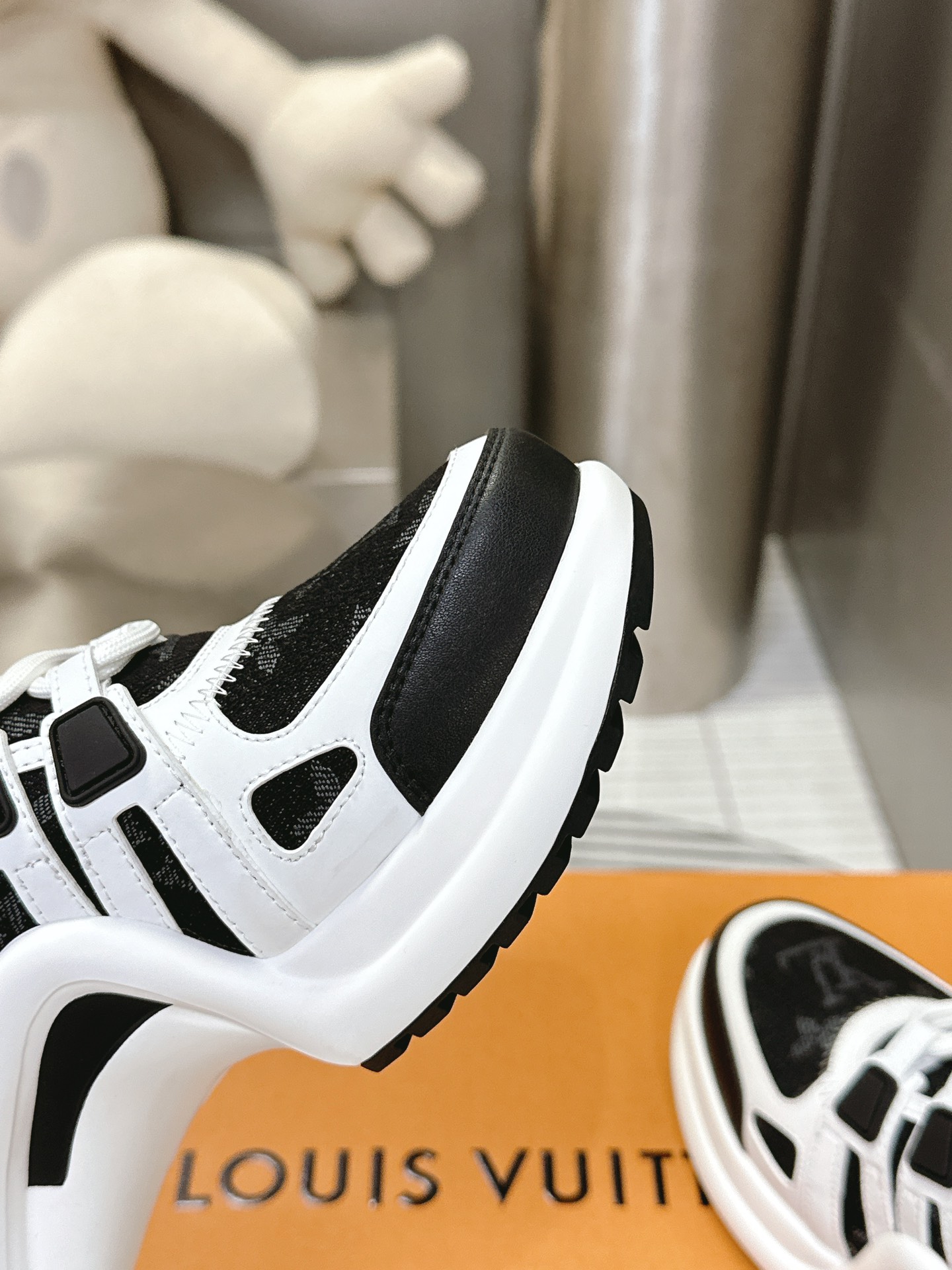 这款鞋子是AAAAA 1:1 质量 (非常棒). 使用了和原版一模一样的材料. 商标部分也保持了和路易威登/Louis Vuitton一样. 图片拍摄是实物鞋子拍摄, 您所收到的实物保证和我们图片一模一样.