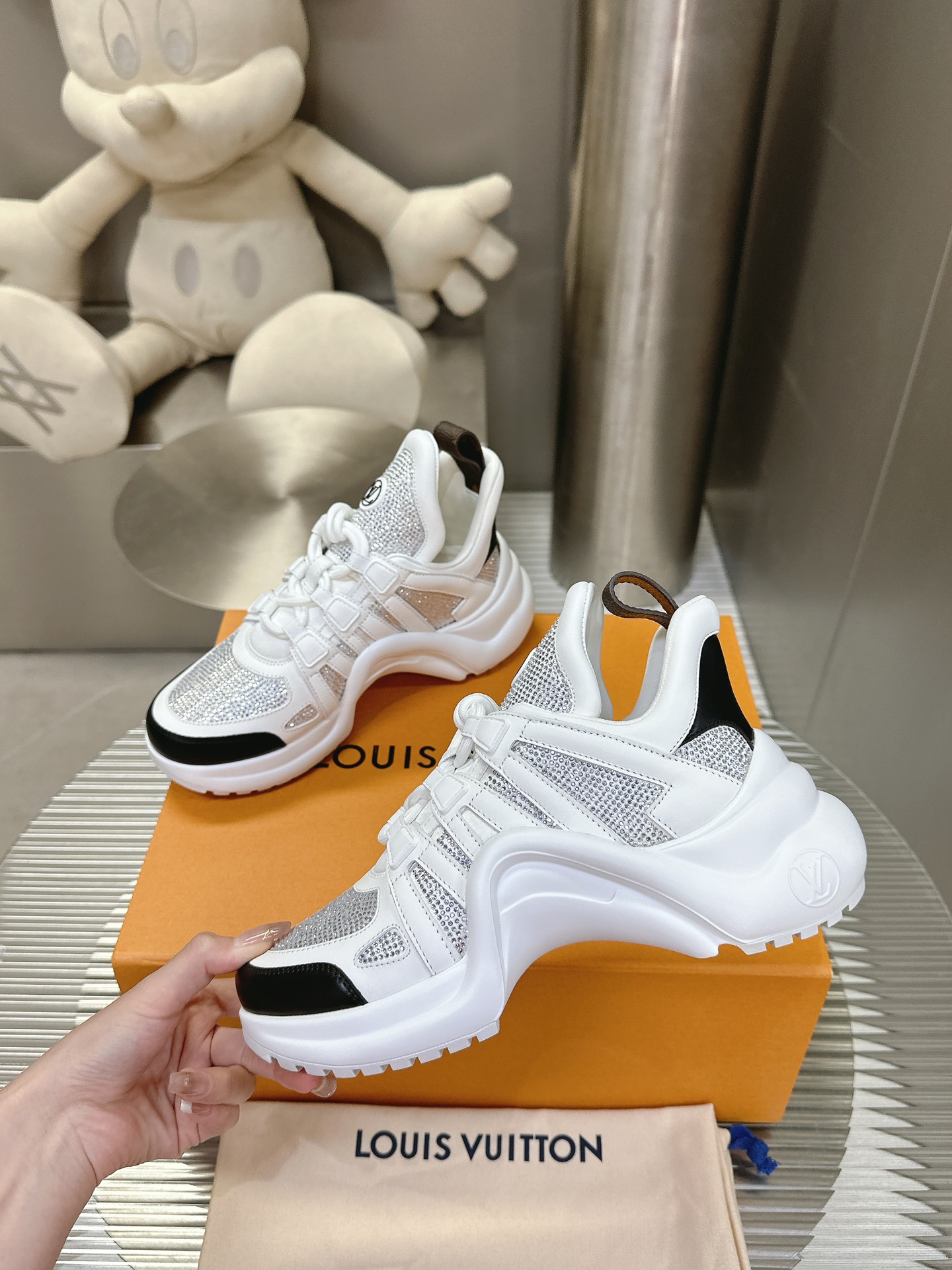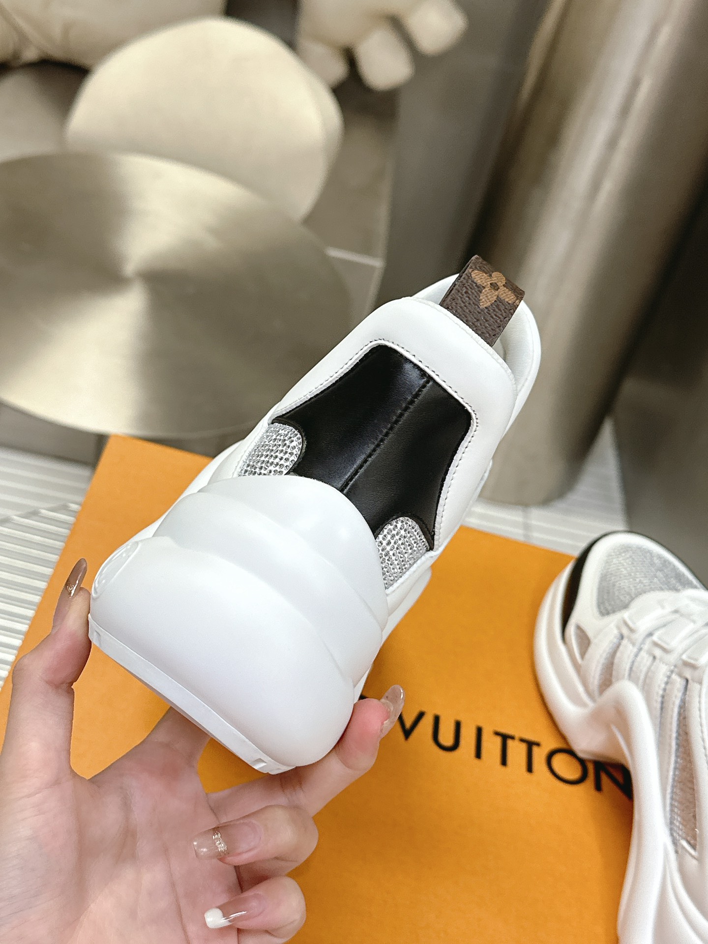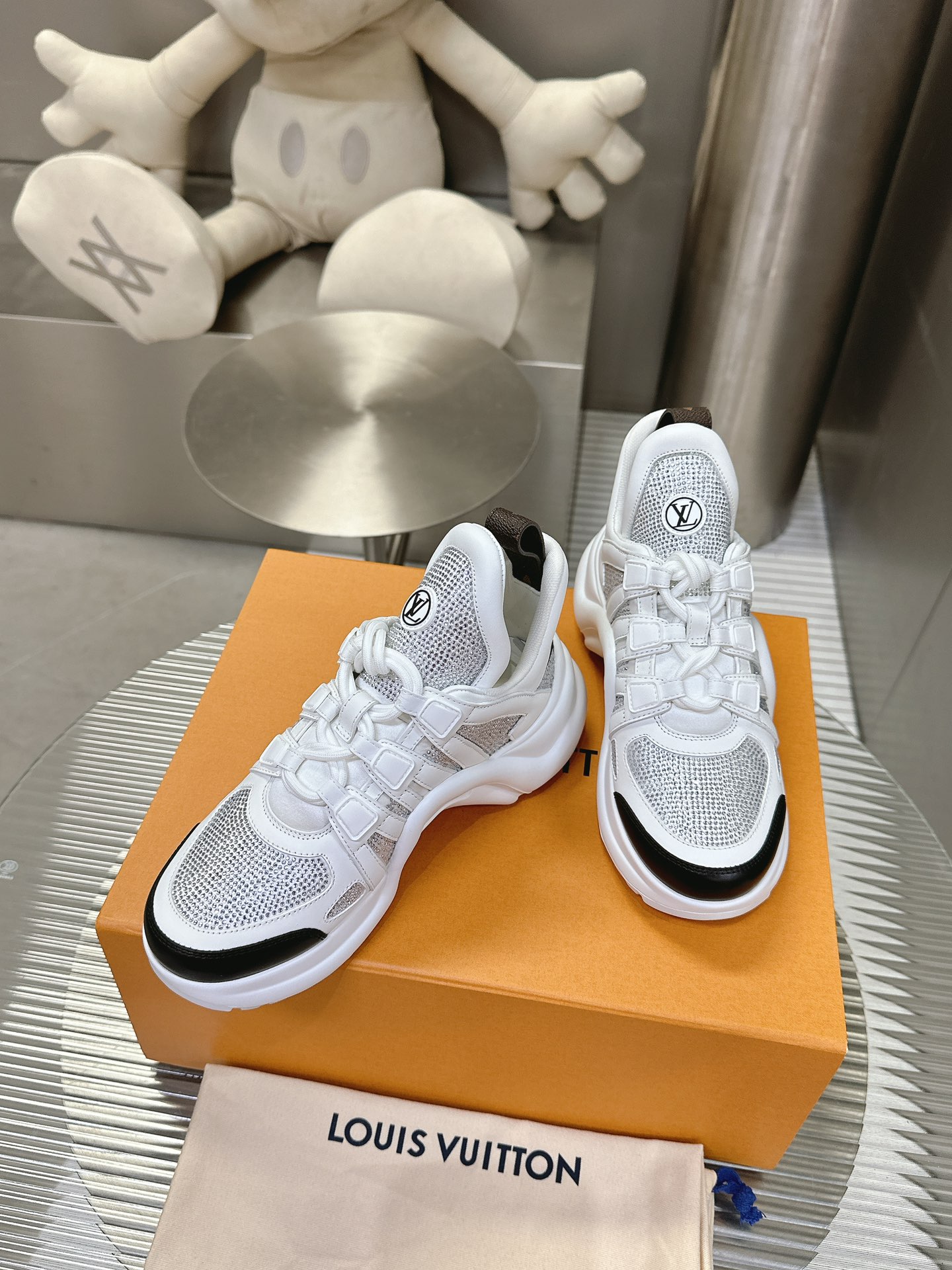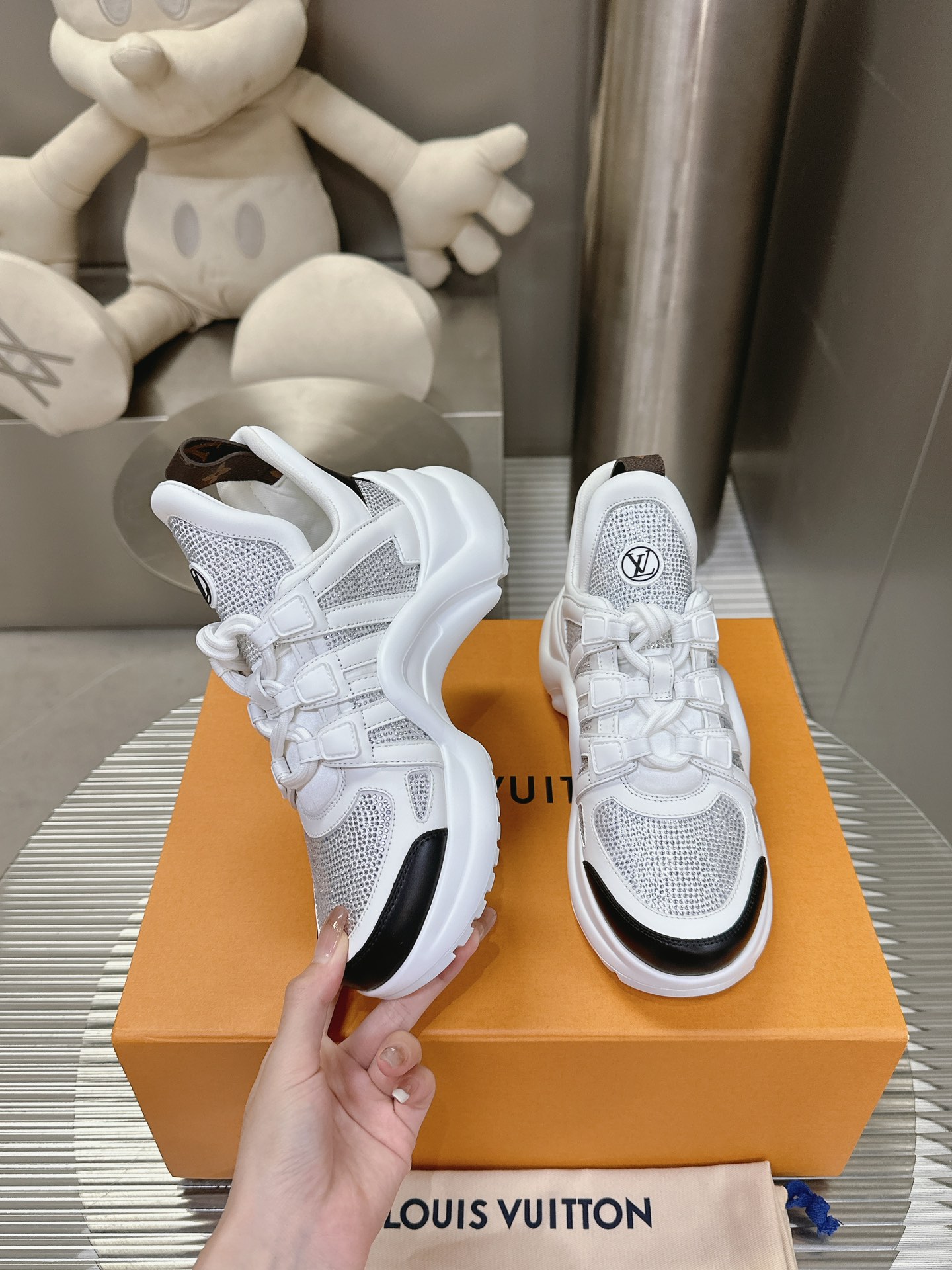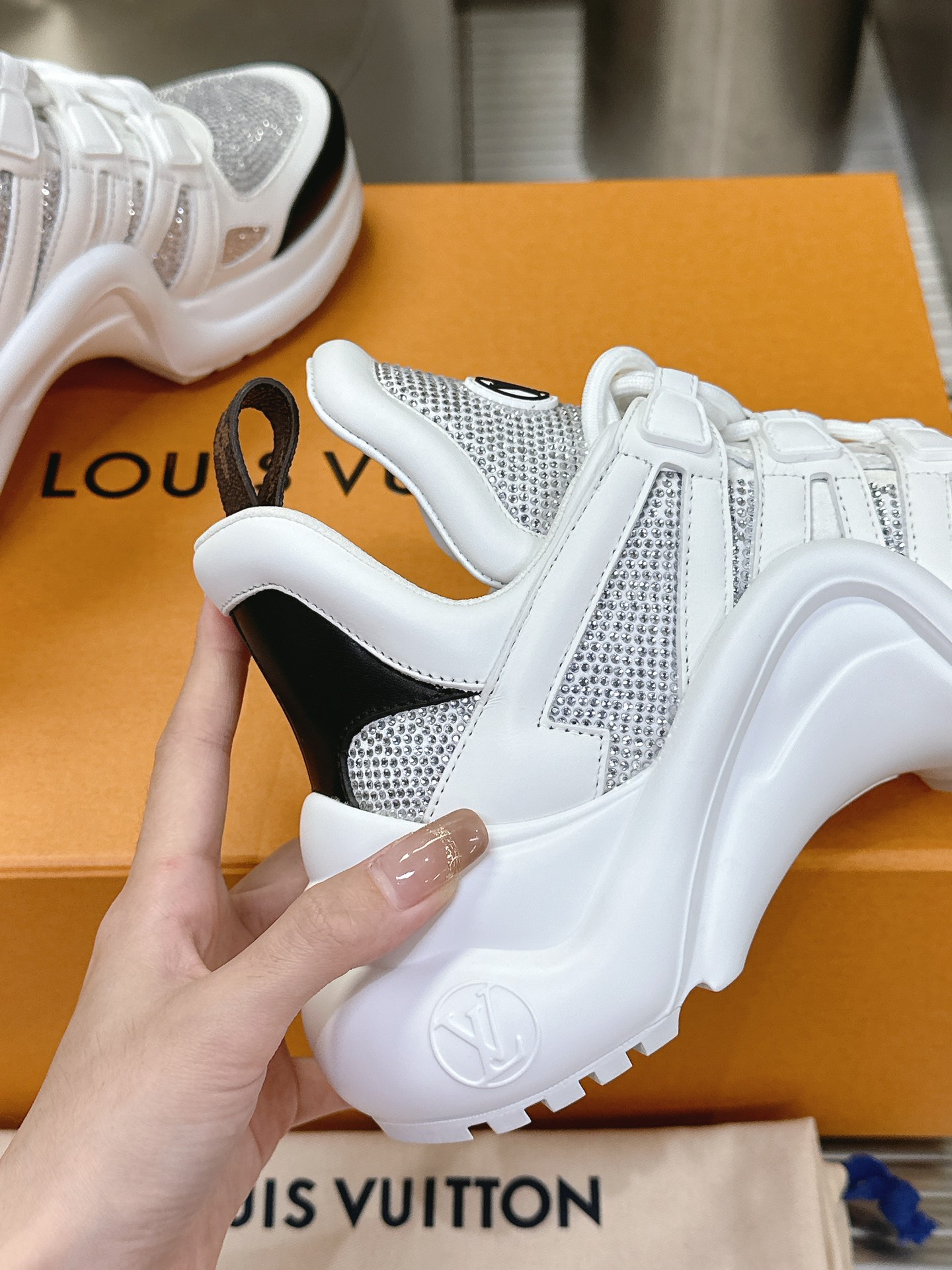 这款鞋子是AAAAA 1:1 质量 (非常棒). 使用了和原版一模一样的材料. 商标部分也保持了和路易威登/Louis Vuitton一样. 图片拍摄是实物鞋子拍摄, 您所收到的实物保证和我们图片一模一样.