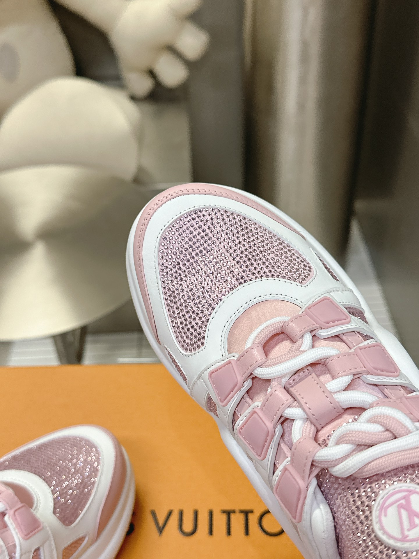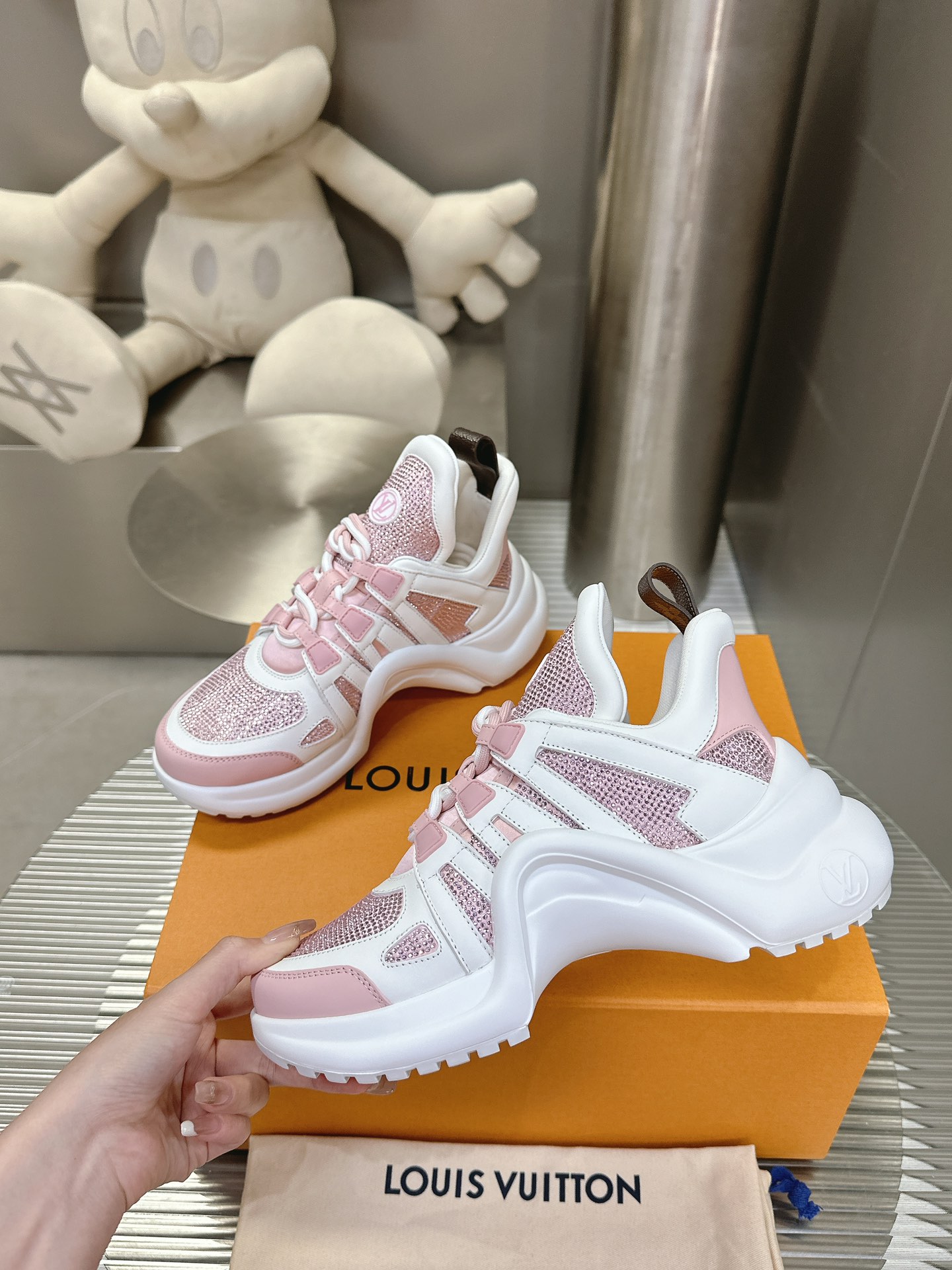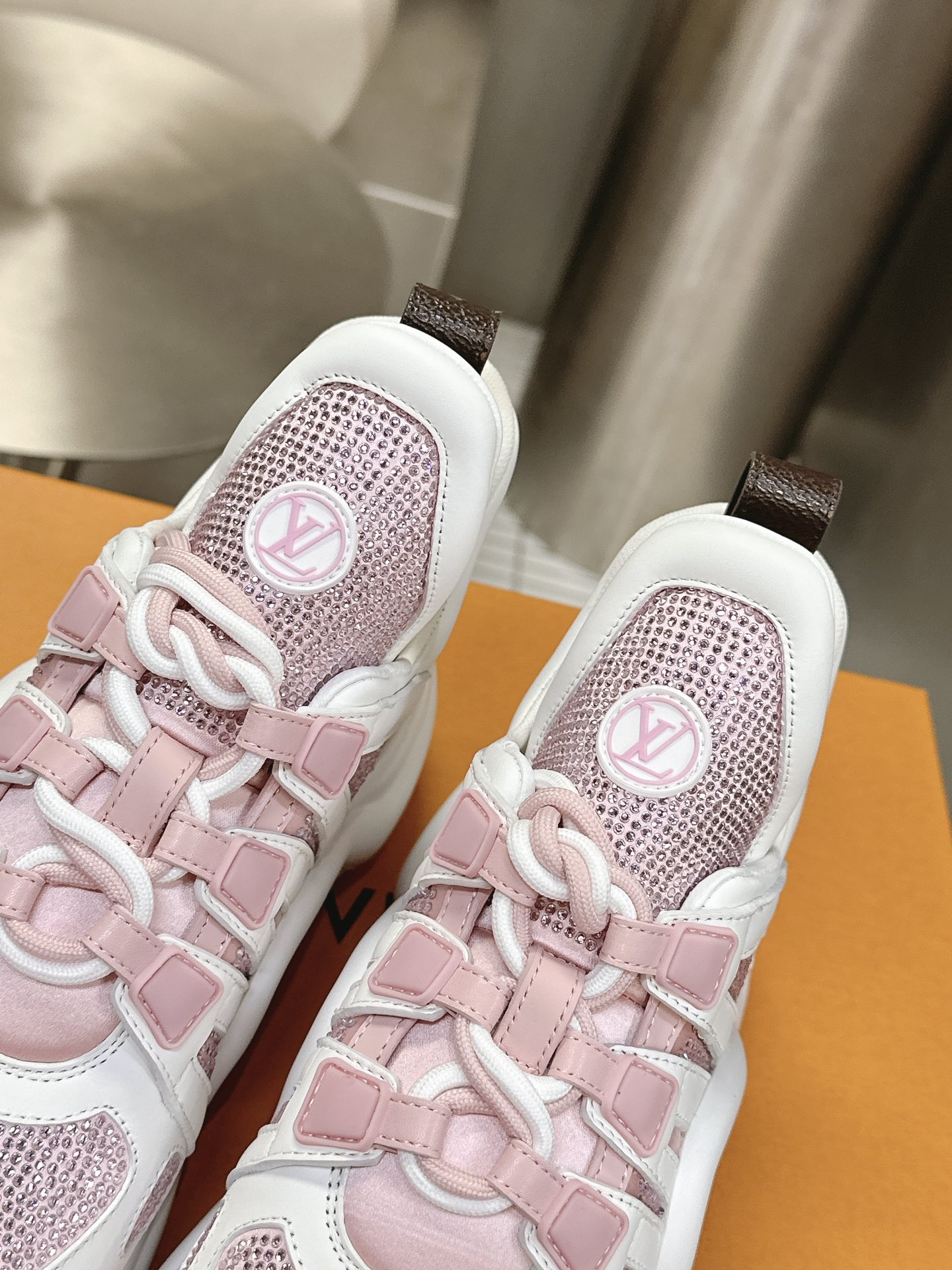这款鞋子是AAAAA 1:1 质量 (非常棒). 使用了和原版一模一样的材料. 商标部分也保持了和路易威登/Louis Vuitton一样. 图片拍摄是实物鞋子拍摄, 您所收到的实物保证和我们图片一模一样.