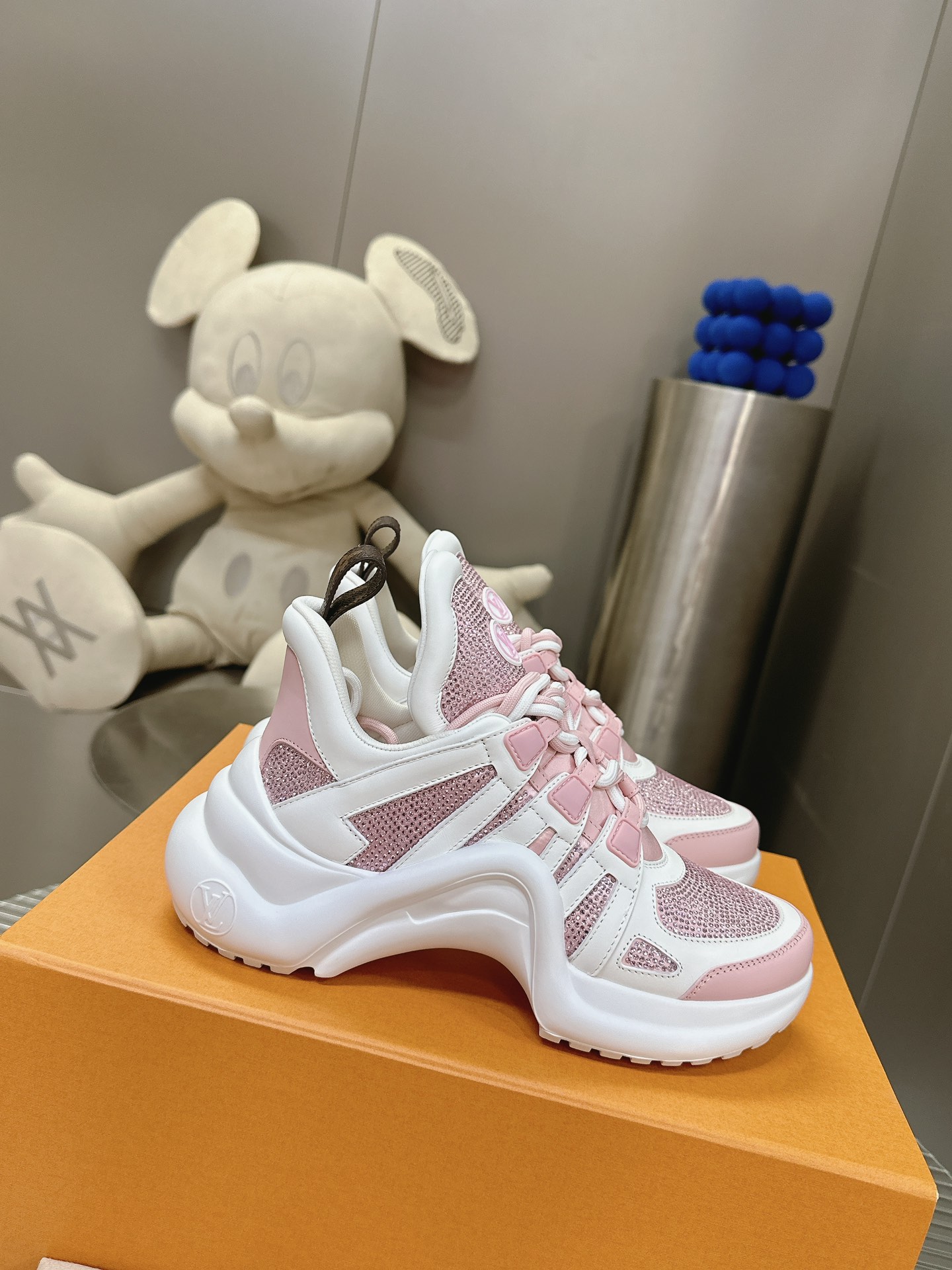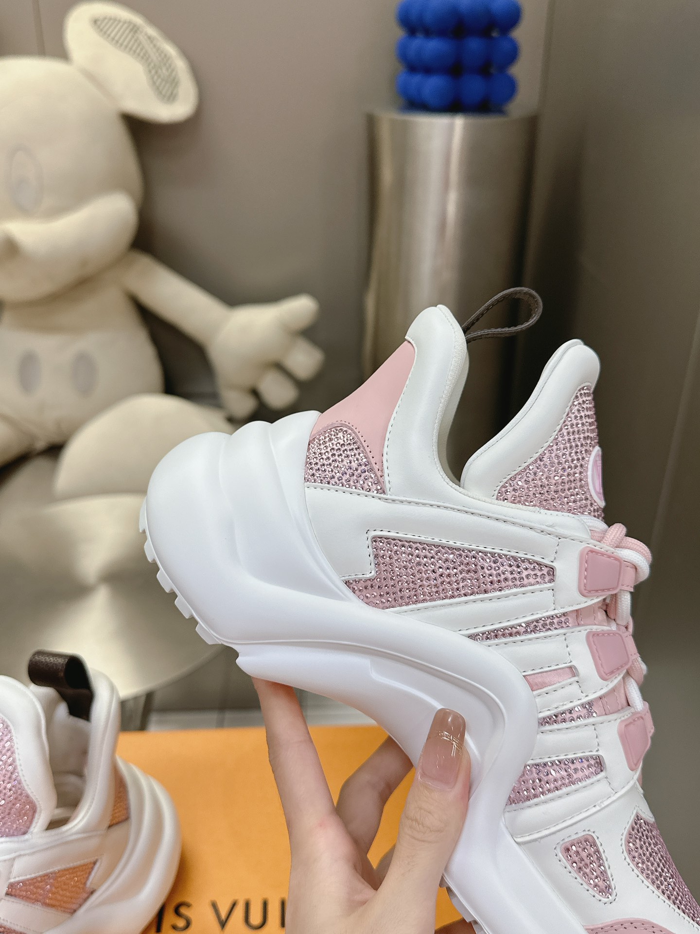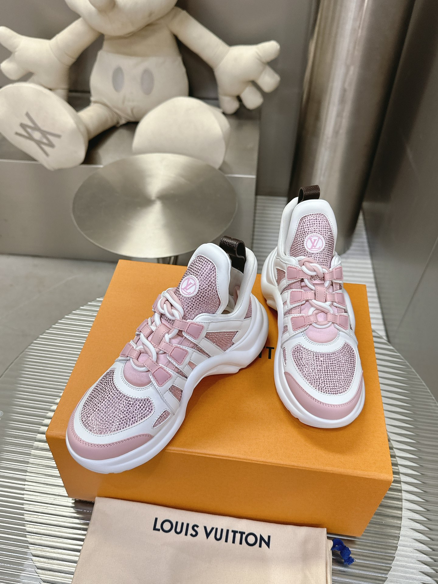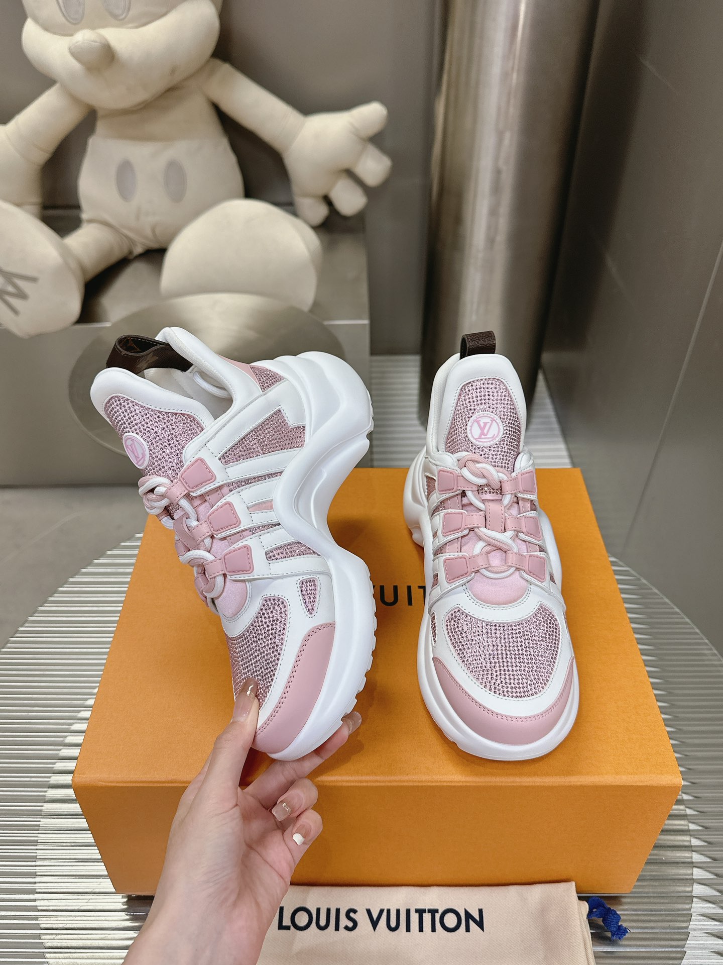 这款鞋子是AAAAA 1:1 质量 (非常棒). 使用了和原版一模一样的材料. 商标部分也保持了和路易威登/Louis Vuitton一样. 图片拍摄是实物鞋子拍摄, 您所收到的实物保证和我们图片一模一样.