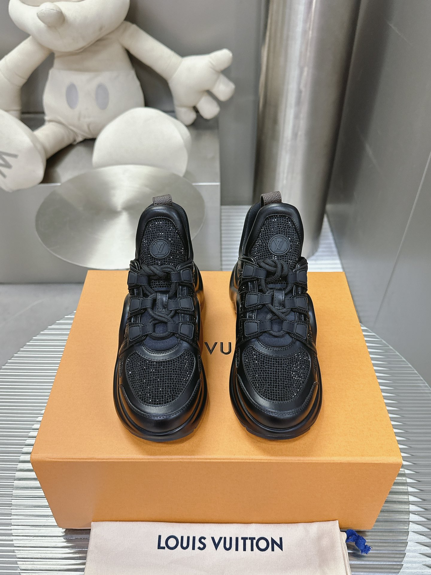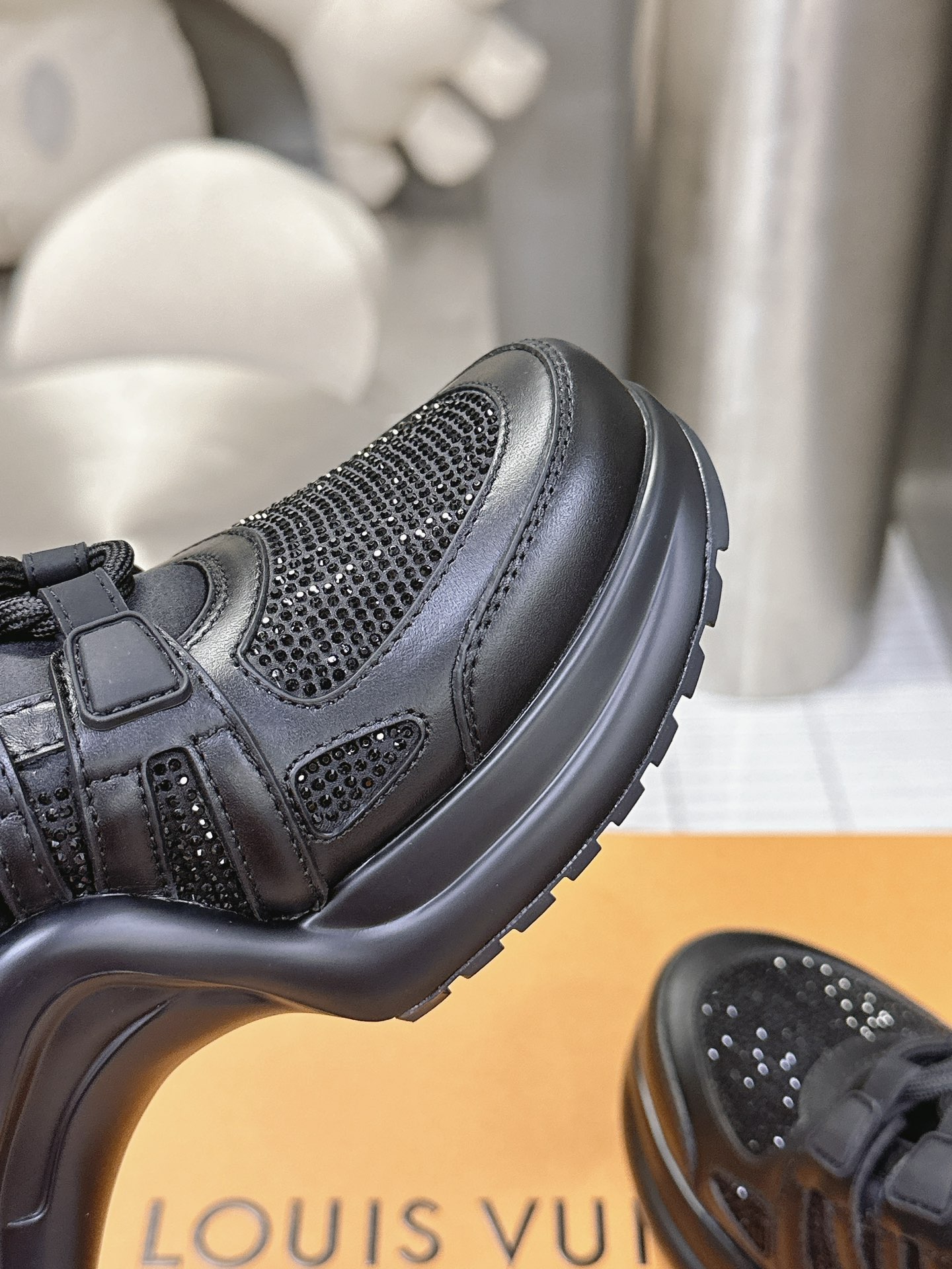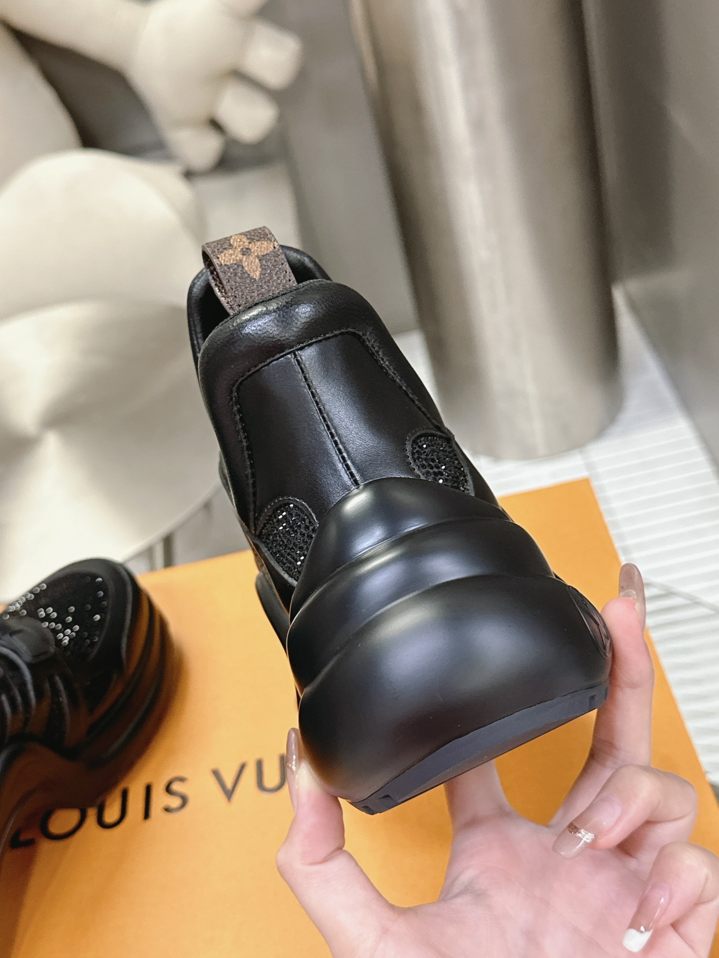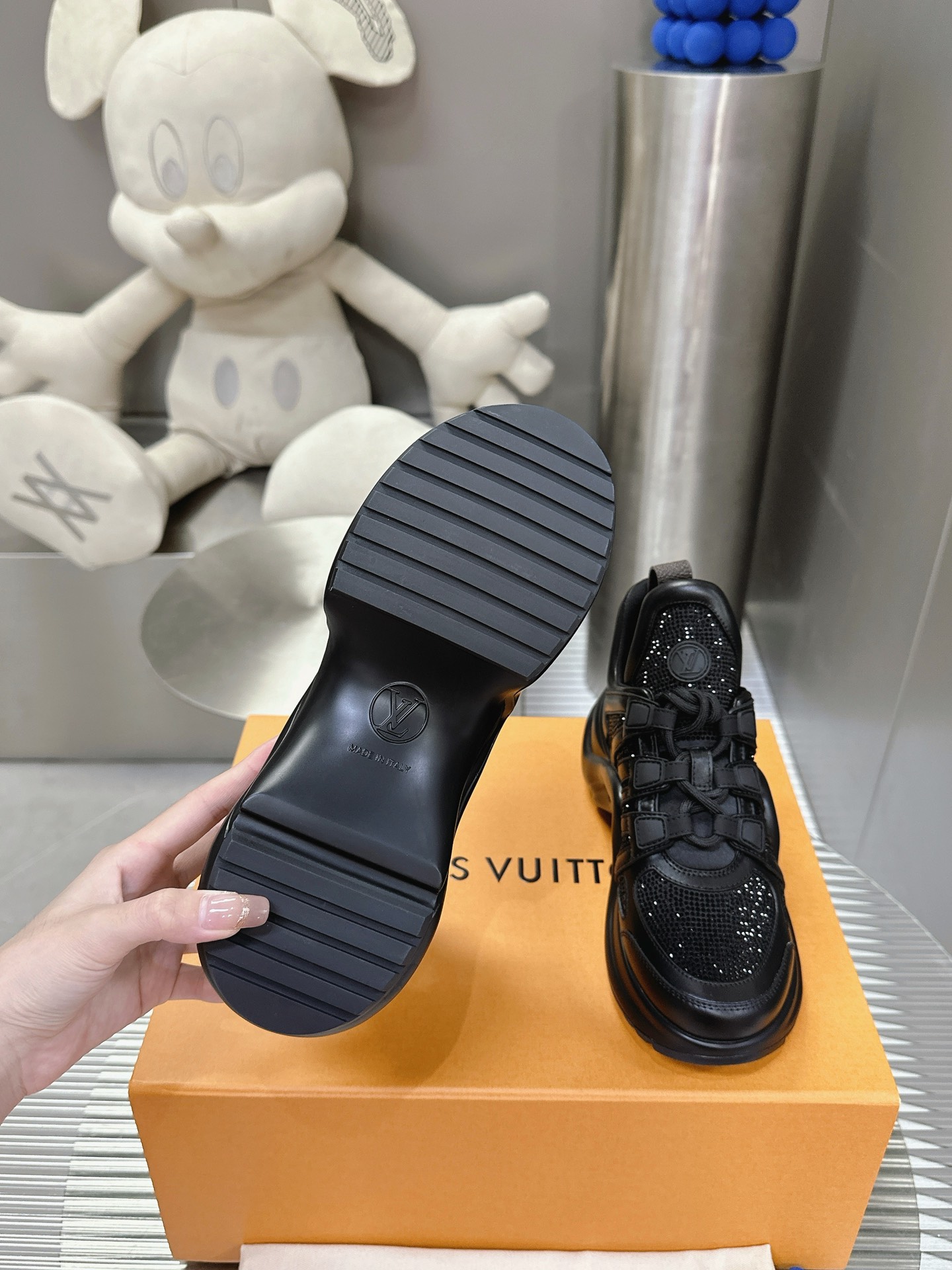 这款鞋子是AAAAA 1:1 质量 (非常棒). 使用了和原版一模一样的材料. 商标部分也保持了和路易威登/Louis Vuitton一样. 图片拍摄是实物鞋子拍摄, 您所收到的实物保证和我们图片一模一样.