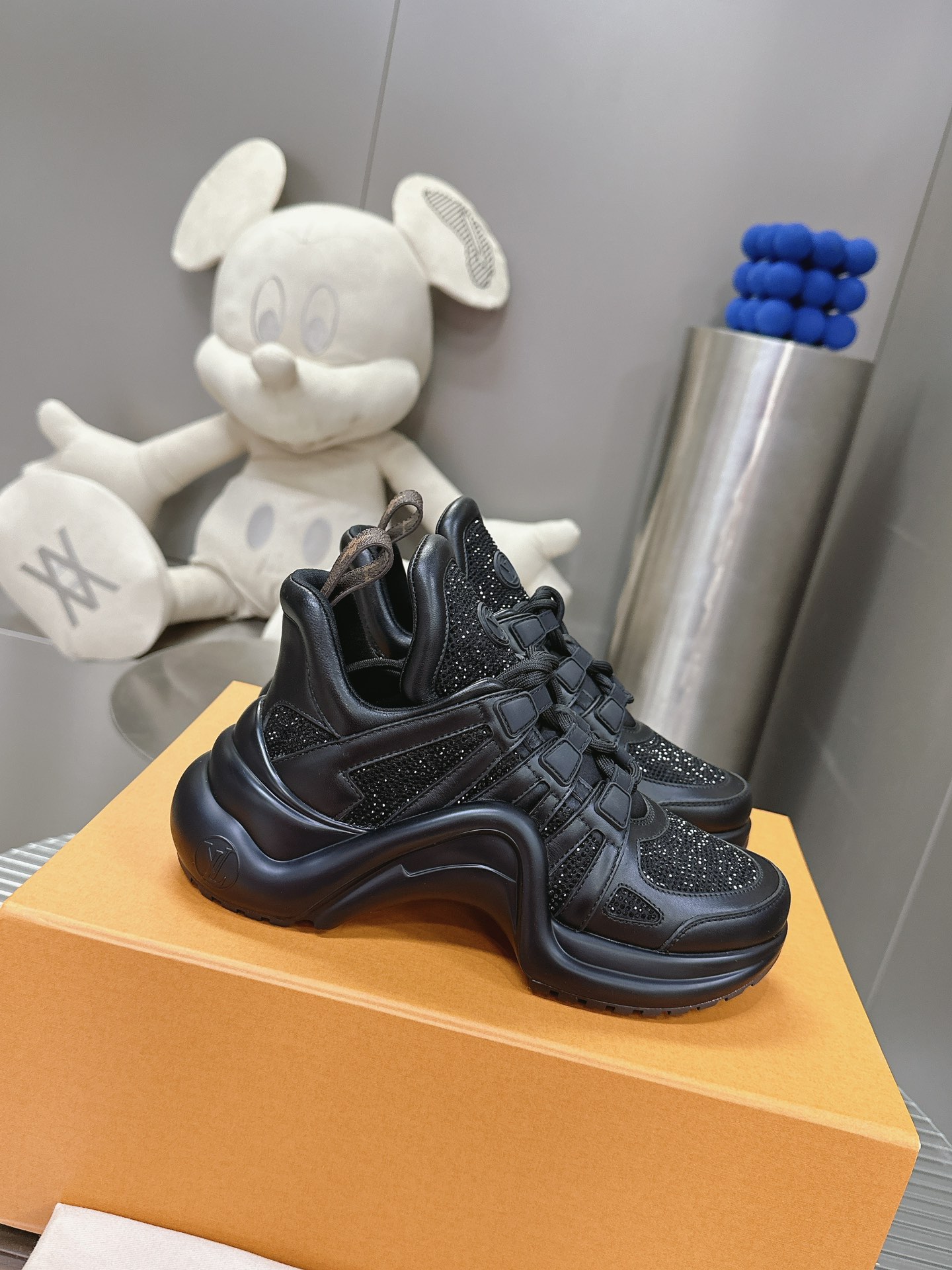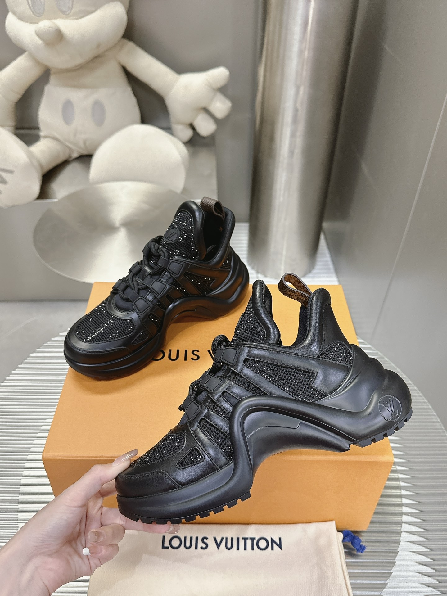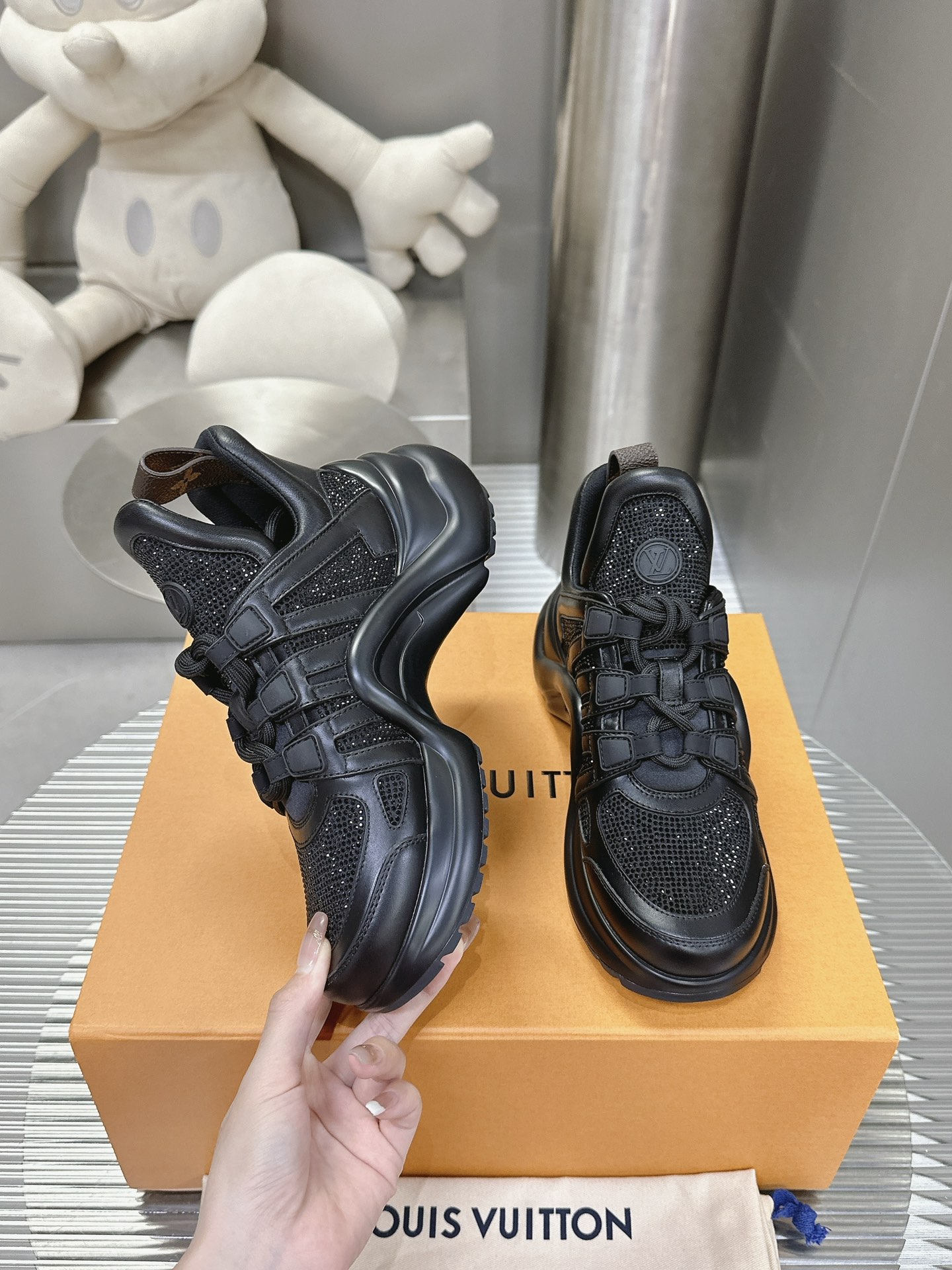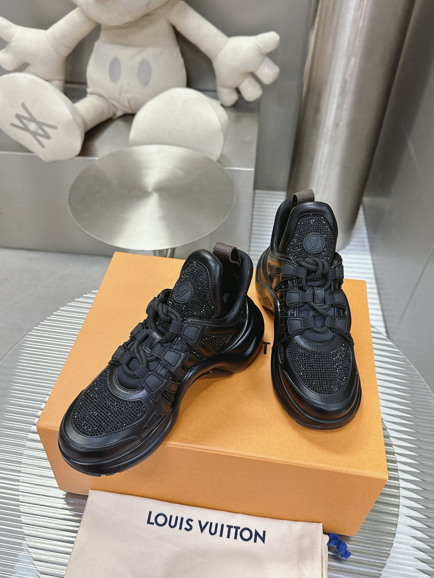 这款鞋子是AAAAA 1:1 质量 (非常棒). 使用了和原版一模一样的材料. 商标部分也保持了和路易威登/Louis Vuitton一样. 图片拍摄是实物鞋子拍摄, 您所收到的实物保证和我们图片一模一样.