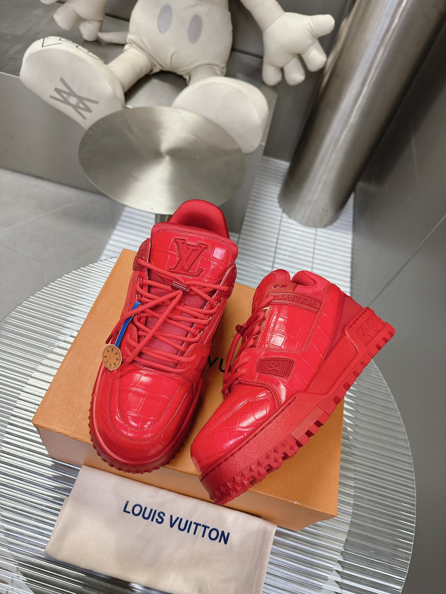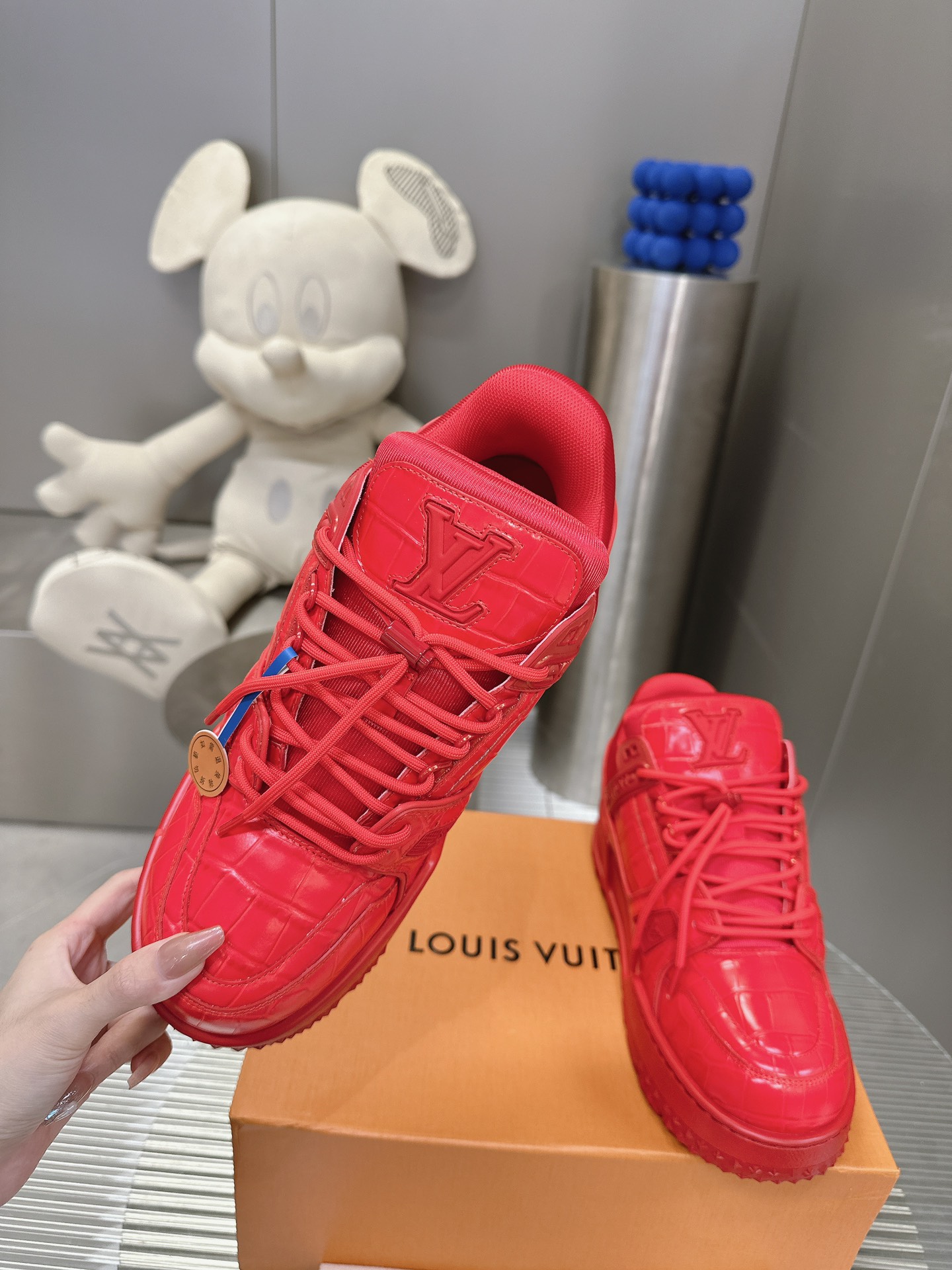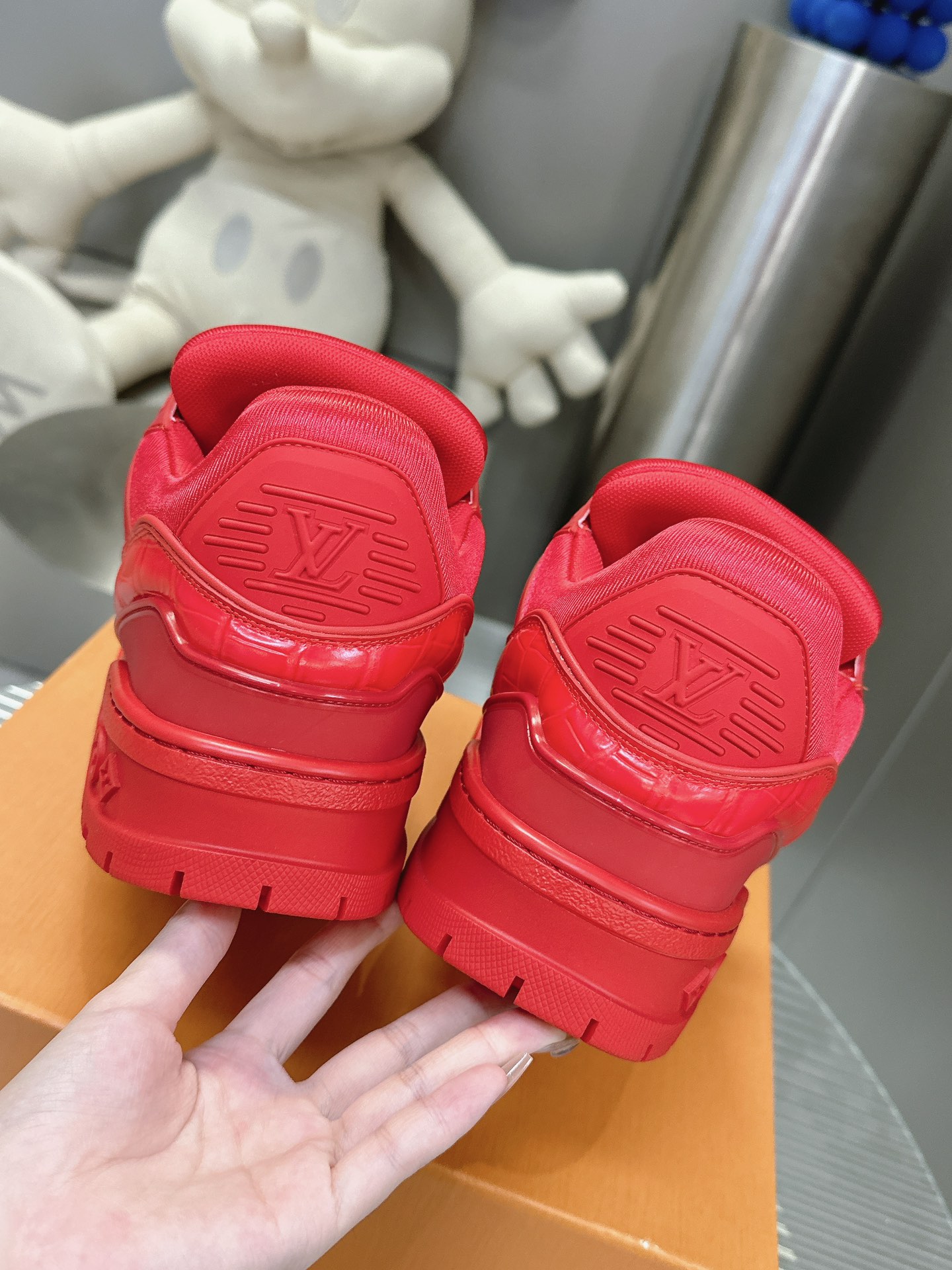 这款鞋子是AAAAA 1:1 质量 (非常棒). 使用了和原版一模一样的材料. 商标部分也保持了和路易威登/Louis Vuitton一样. 图片拍摄是实物鞋子拍摄, 您所收到的实物保证和我们图片一模一样.