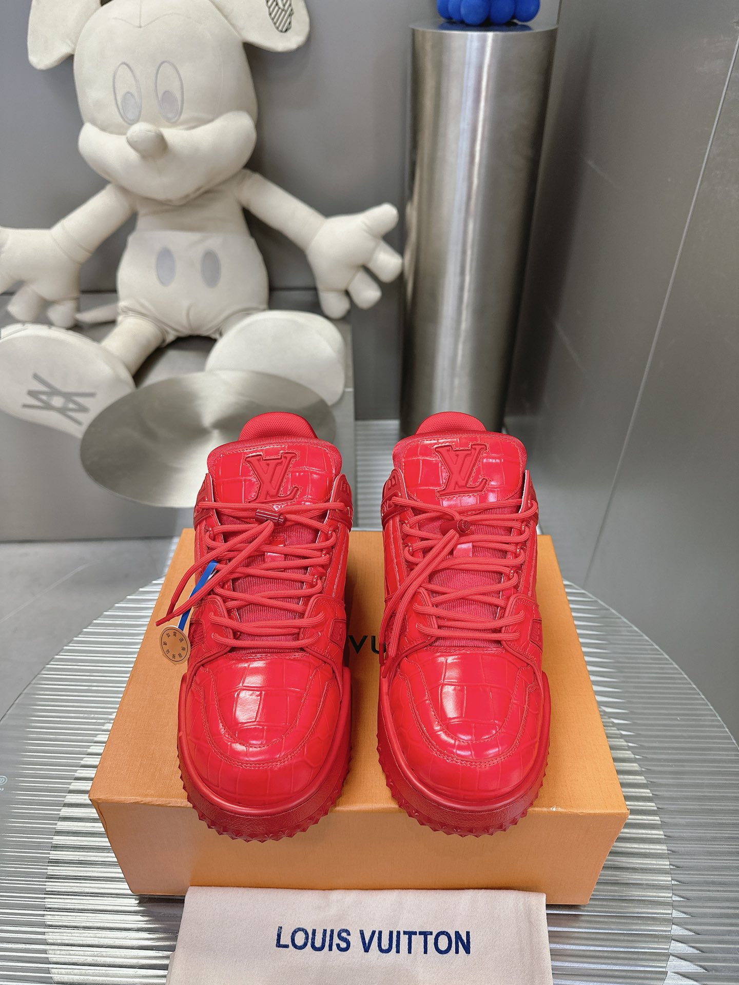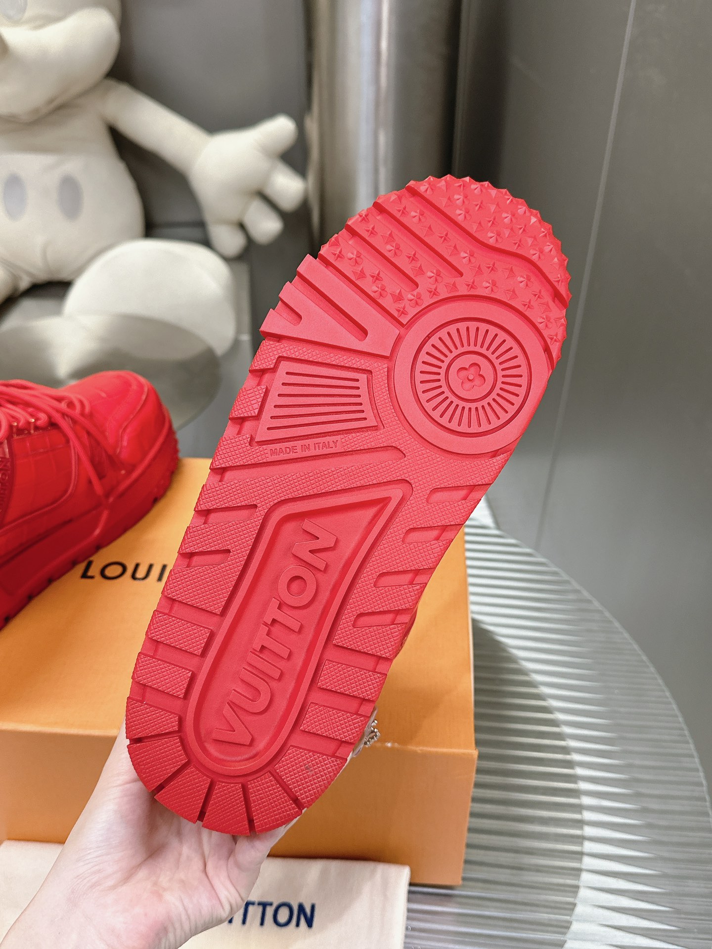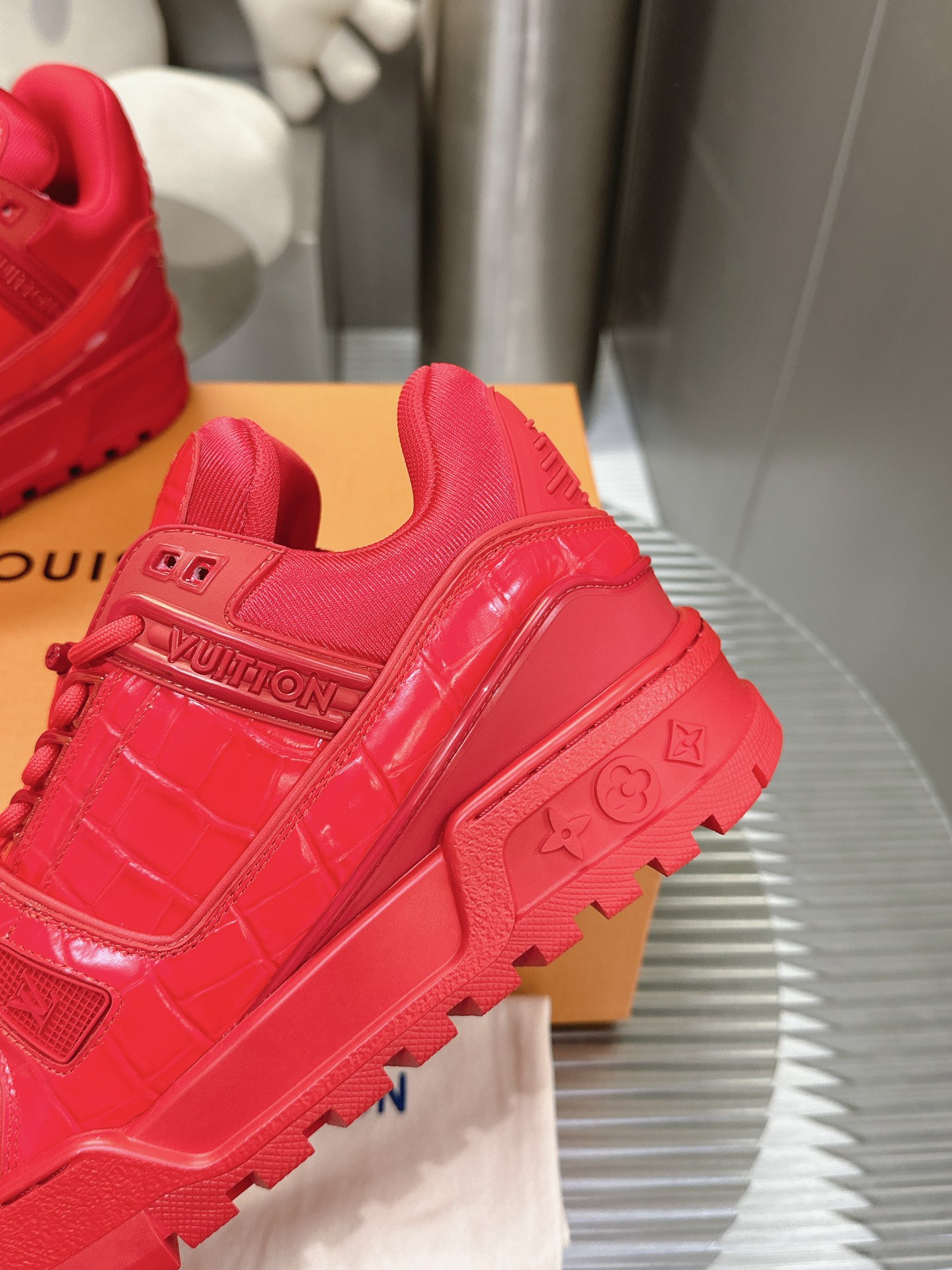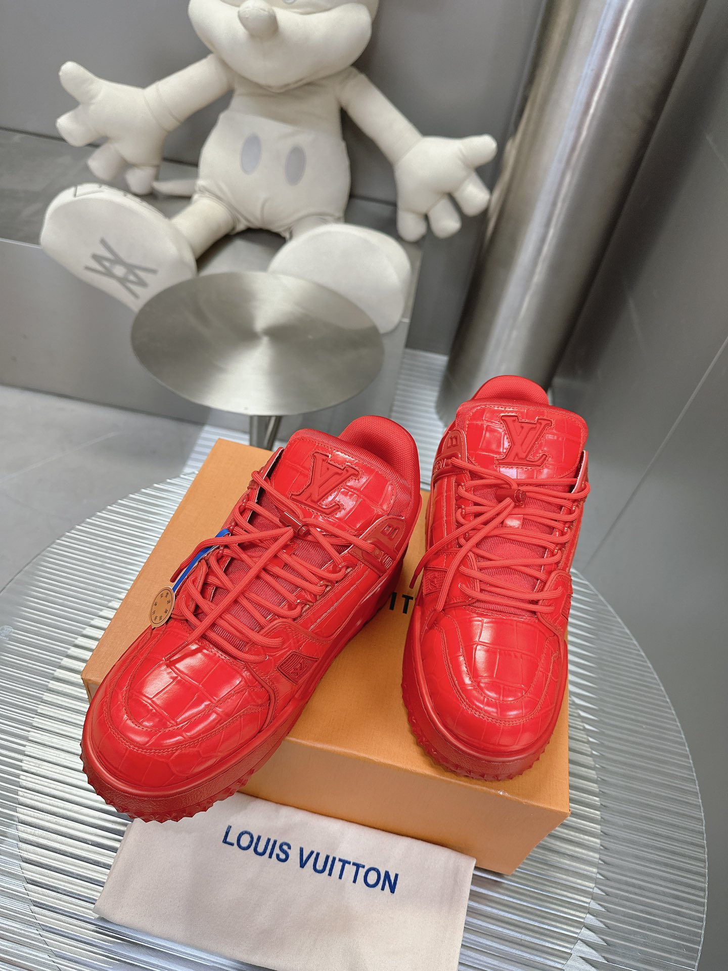 这款鞋子是AAAAA 1:1 质量 (非常棒). 使用了和原版一模一样的材料. 商标部分也保持了和路易威登/Louis Vuitton一样. 图片拍摄是实物鞋子拍摄, 您所收到的实物保证和我们图片一模一样.