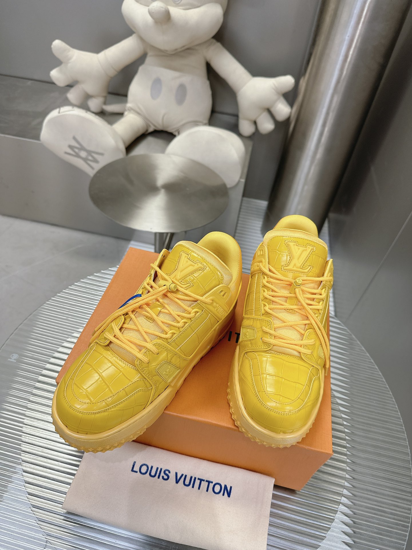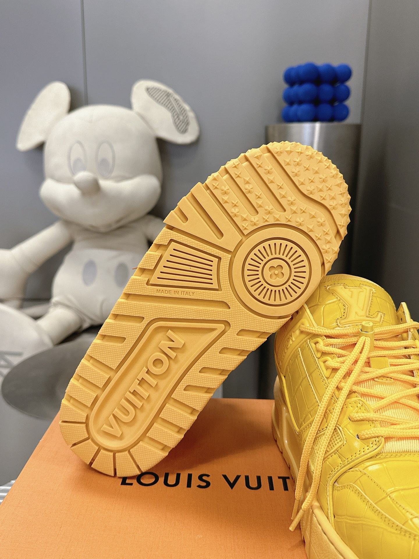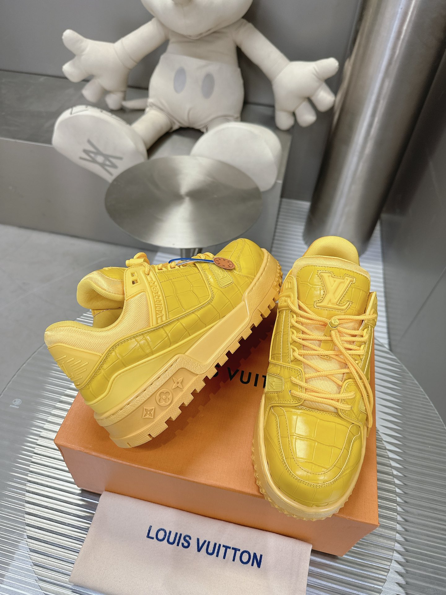 这款鞋子是AAAAA 1:1 质量 (非常棒). 使用了和原版一模一样的材料. 商标部分也保持了和路易威登/Louis Vuitton一样. 图片拍摄是实物鞋子拍摄, 您所收到的实物保证和我们图片一模一样.