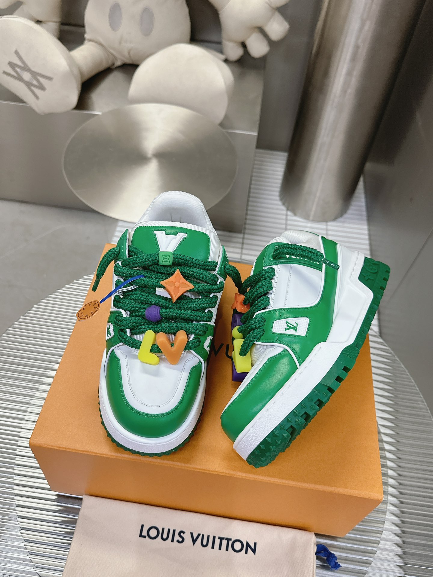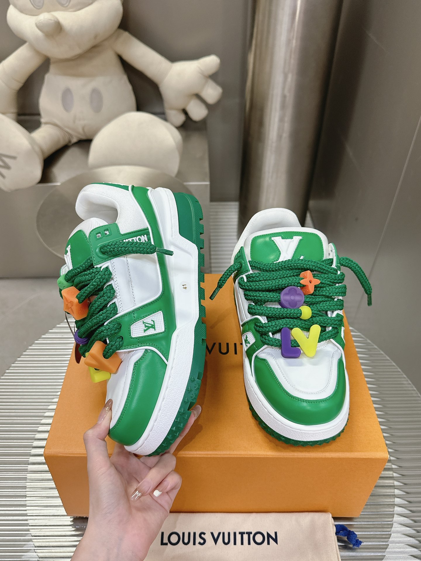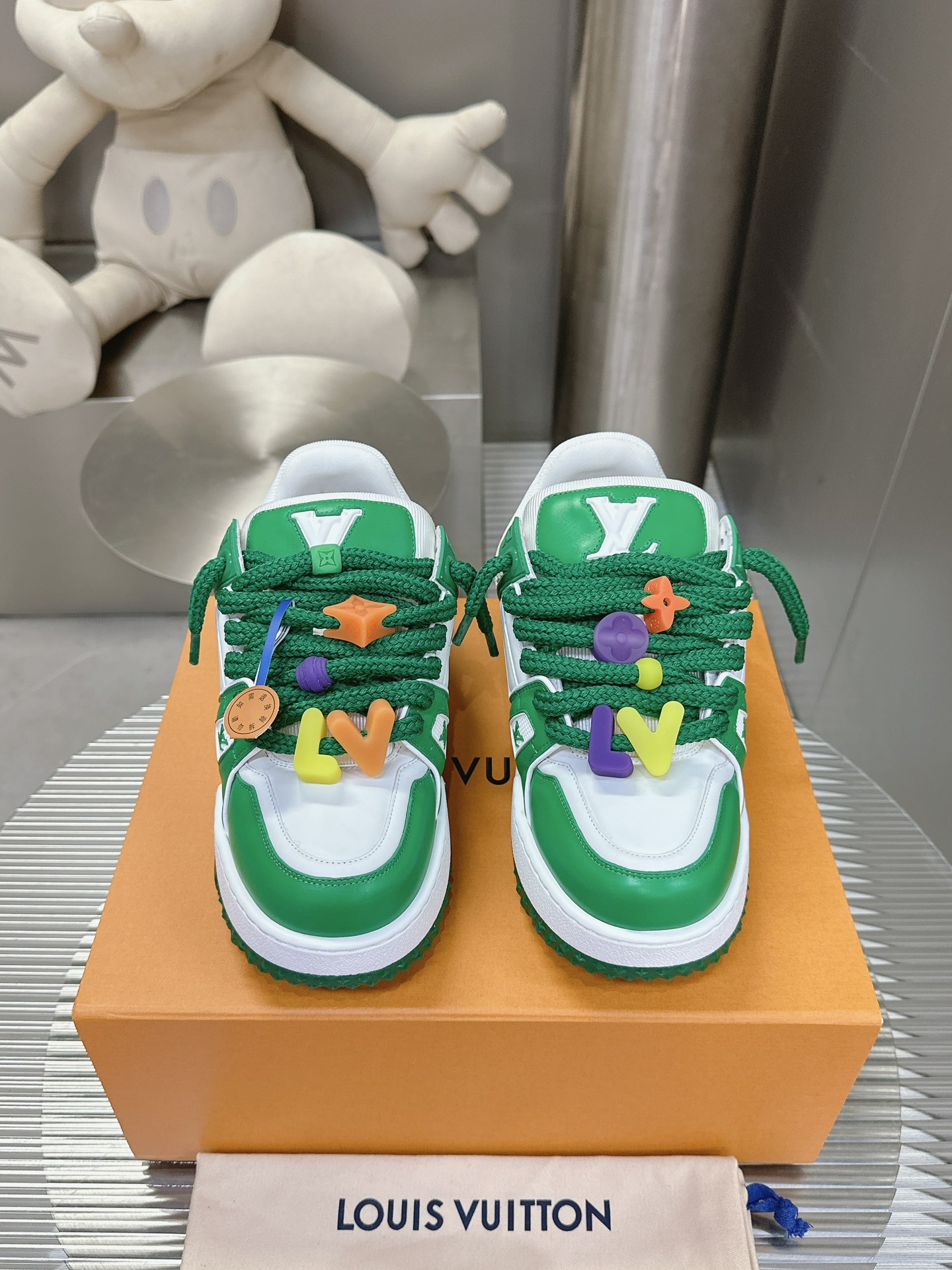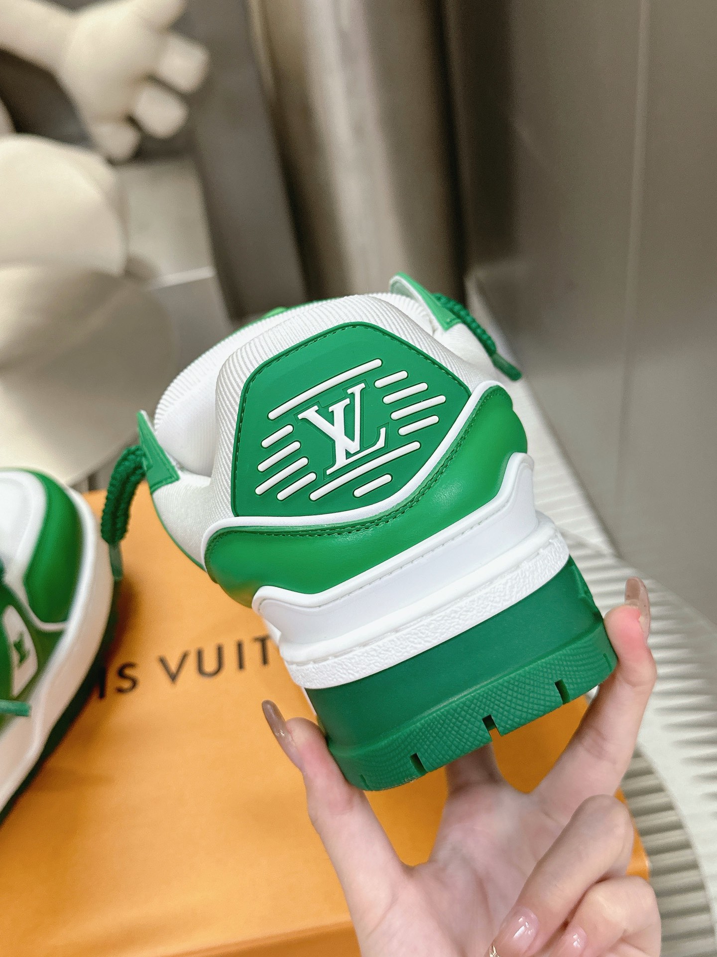 这款鞋子是AAAAA 1:1 质量 (非常棒). 使用了和原版一模一样的材料. 商标部分也保持了和路易威登/Louis Vuitton一样. 图片拍摄是实物鞋子拍摄, 您所收到的实物保证和我们图片一模一样.