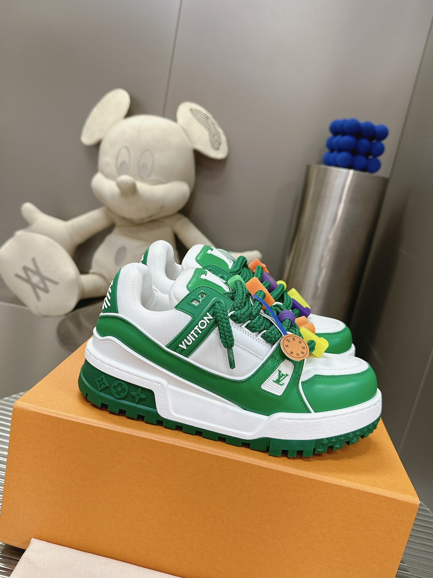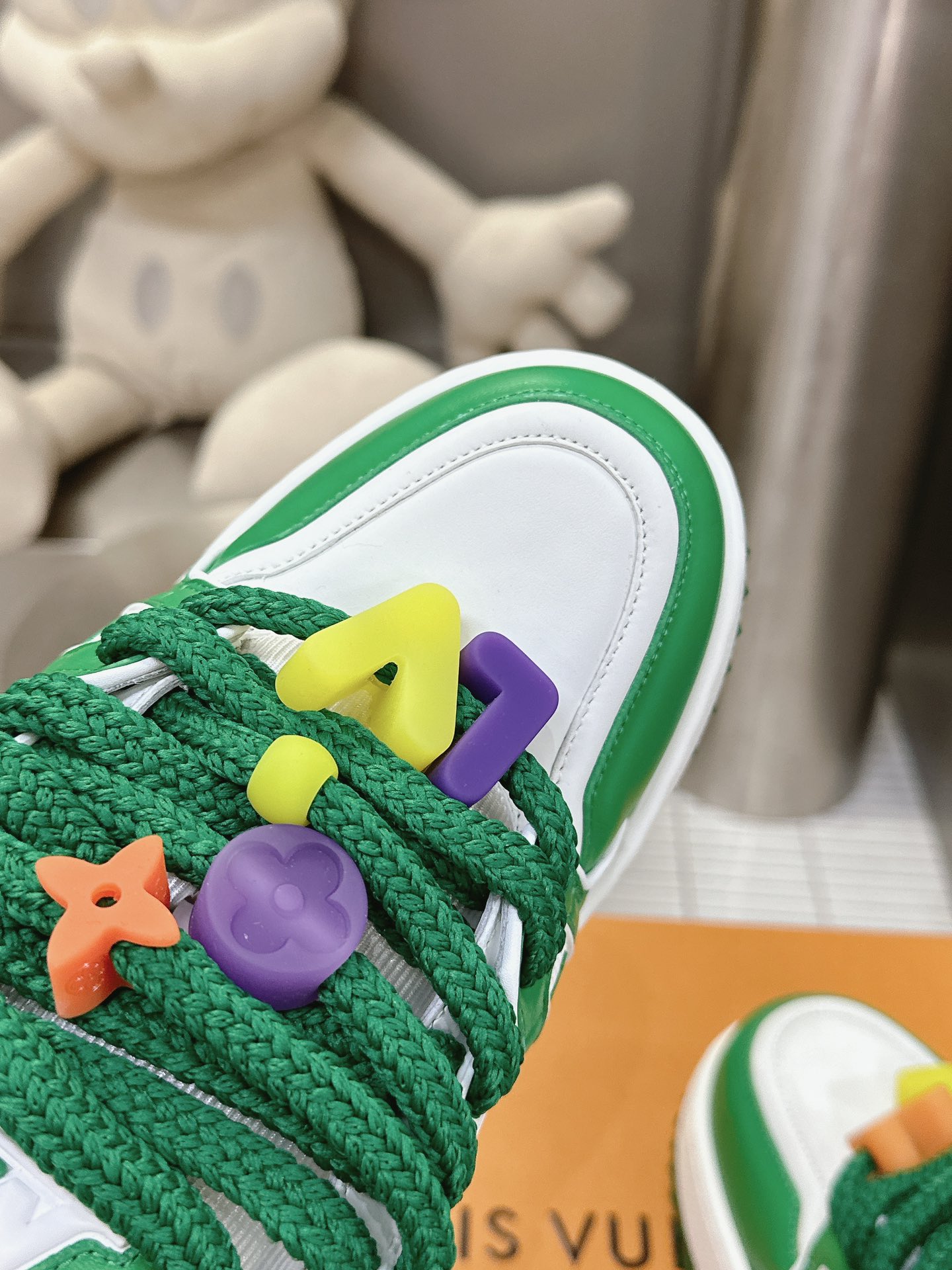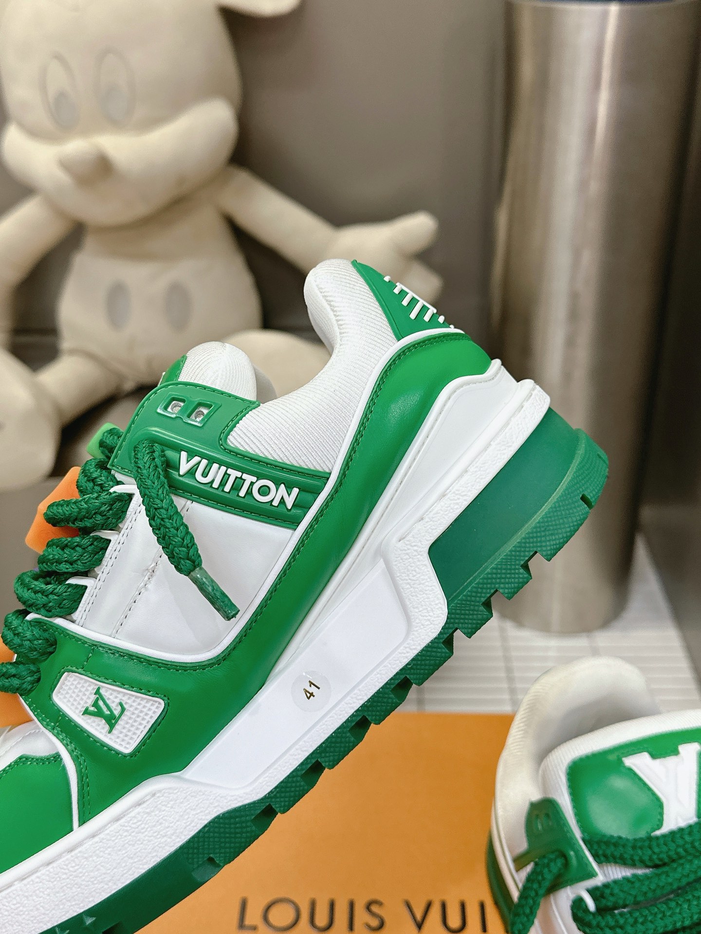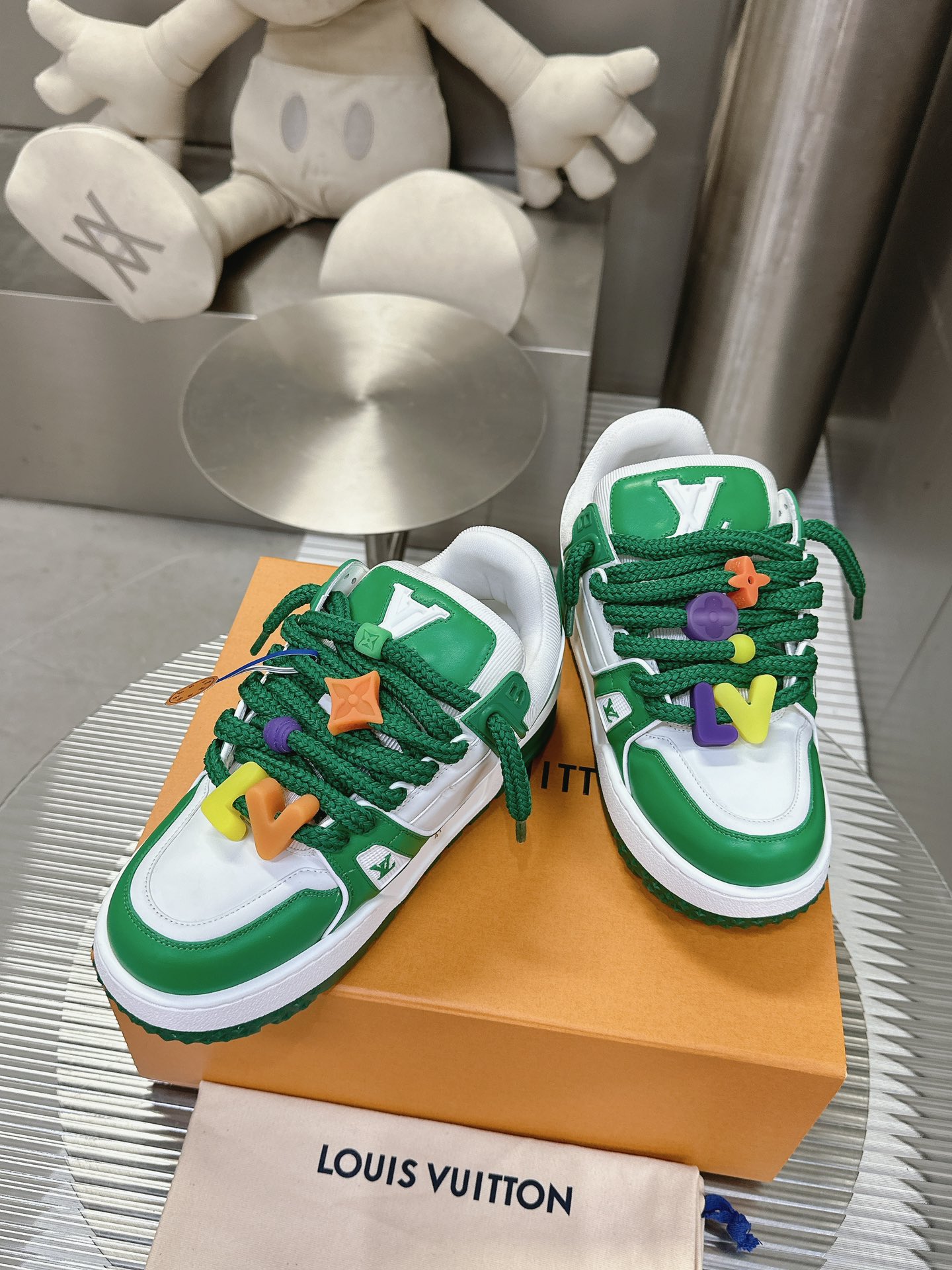这款鞋子是AAAAA 1:1 质量 (非常棒). 使用了和原版一模一样的材料. 商标部分也保持了和路易威登/Louis Vuitton一样. 图片拍摄是实物鞋子拍摄, 您所收到的实物保证和我们图片一模一样.