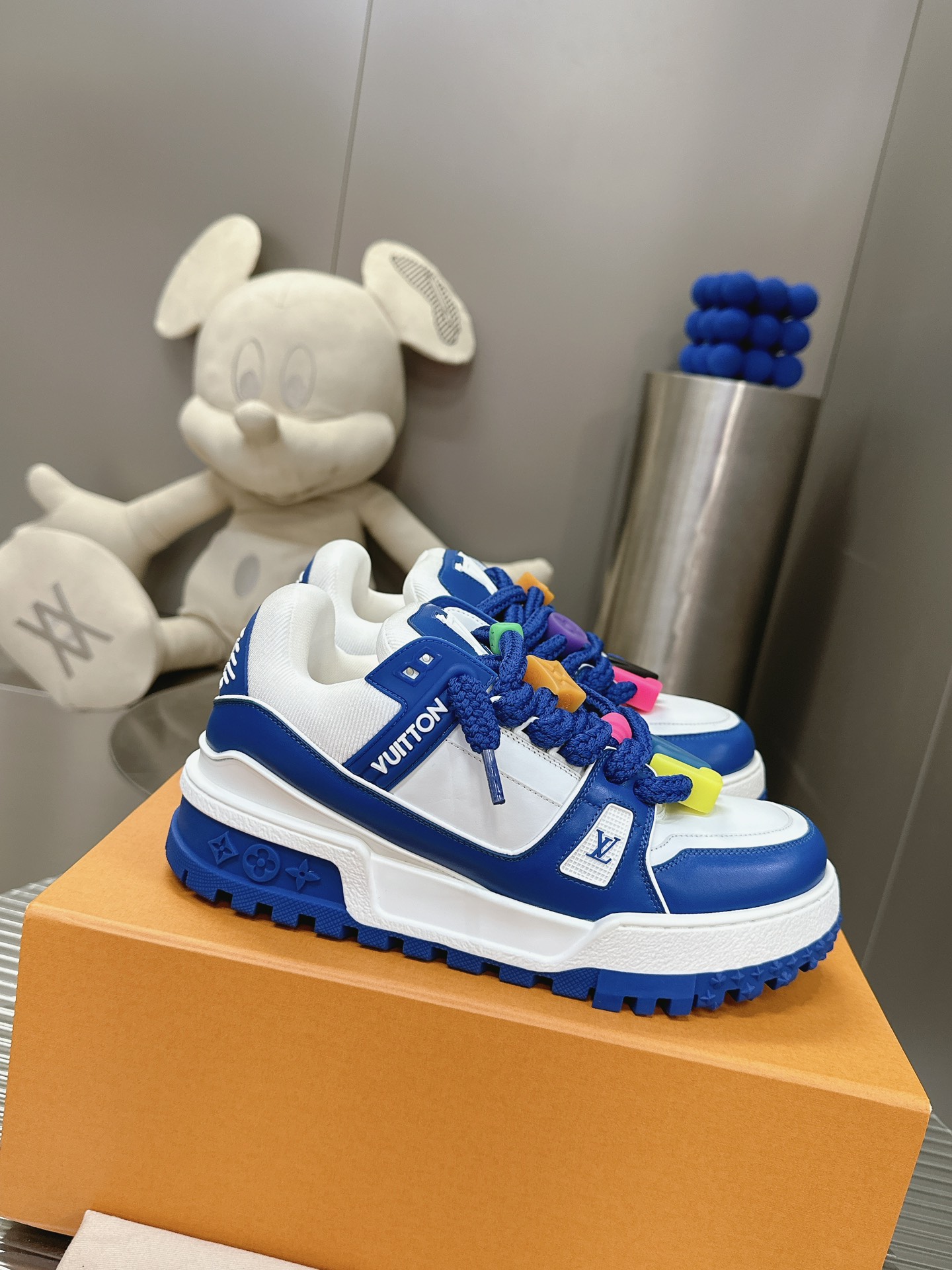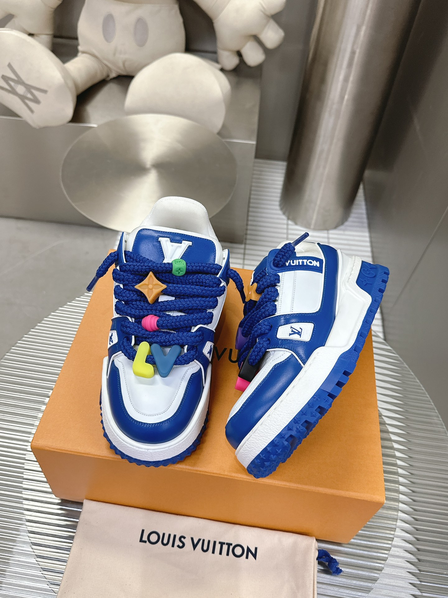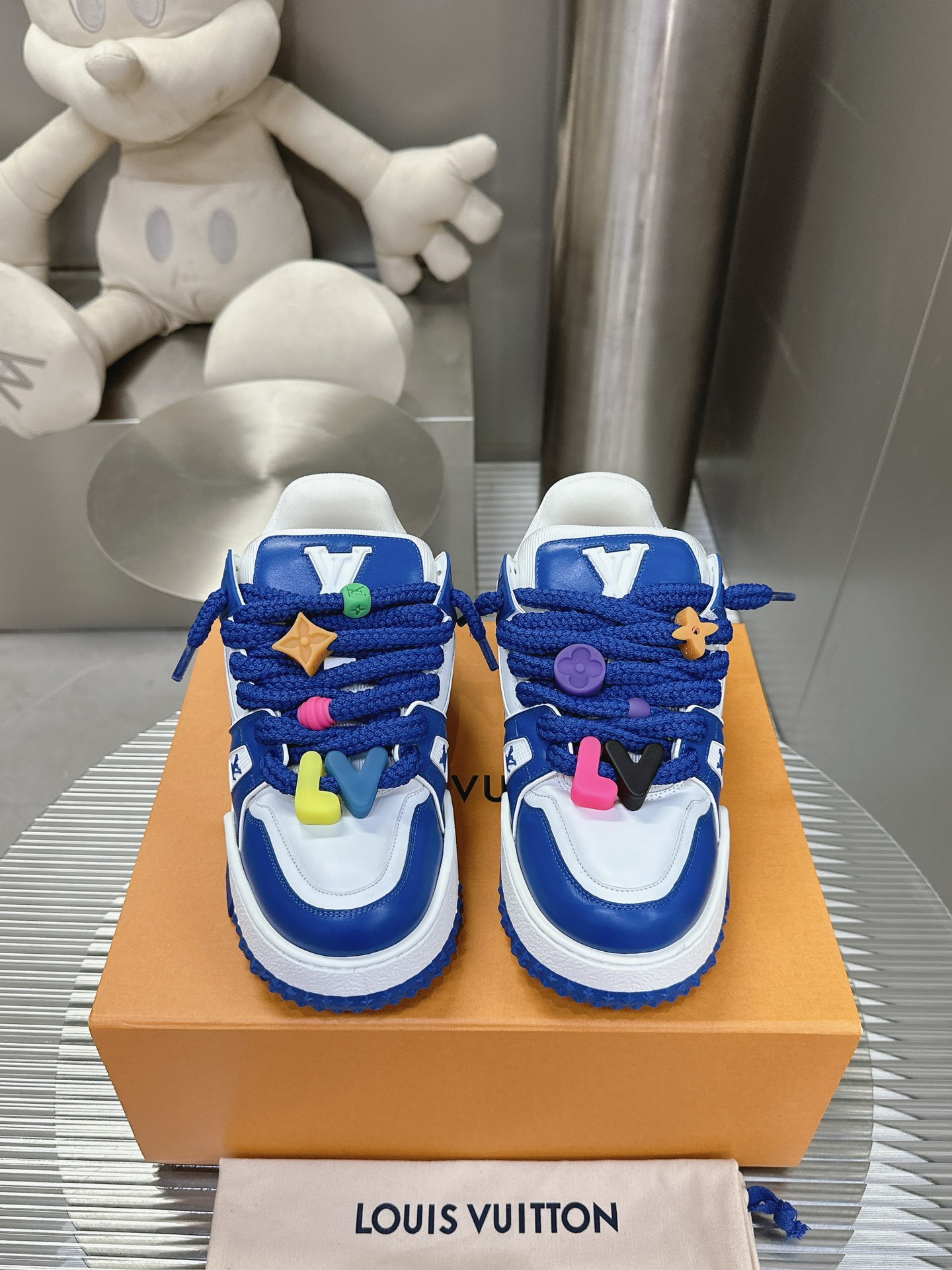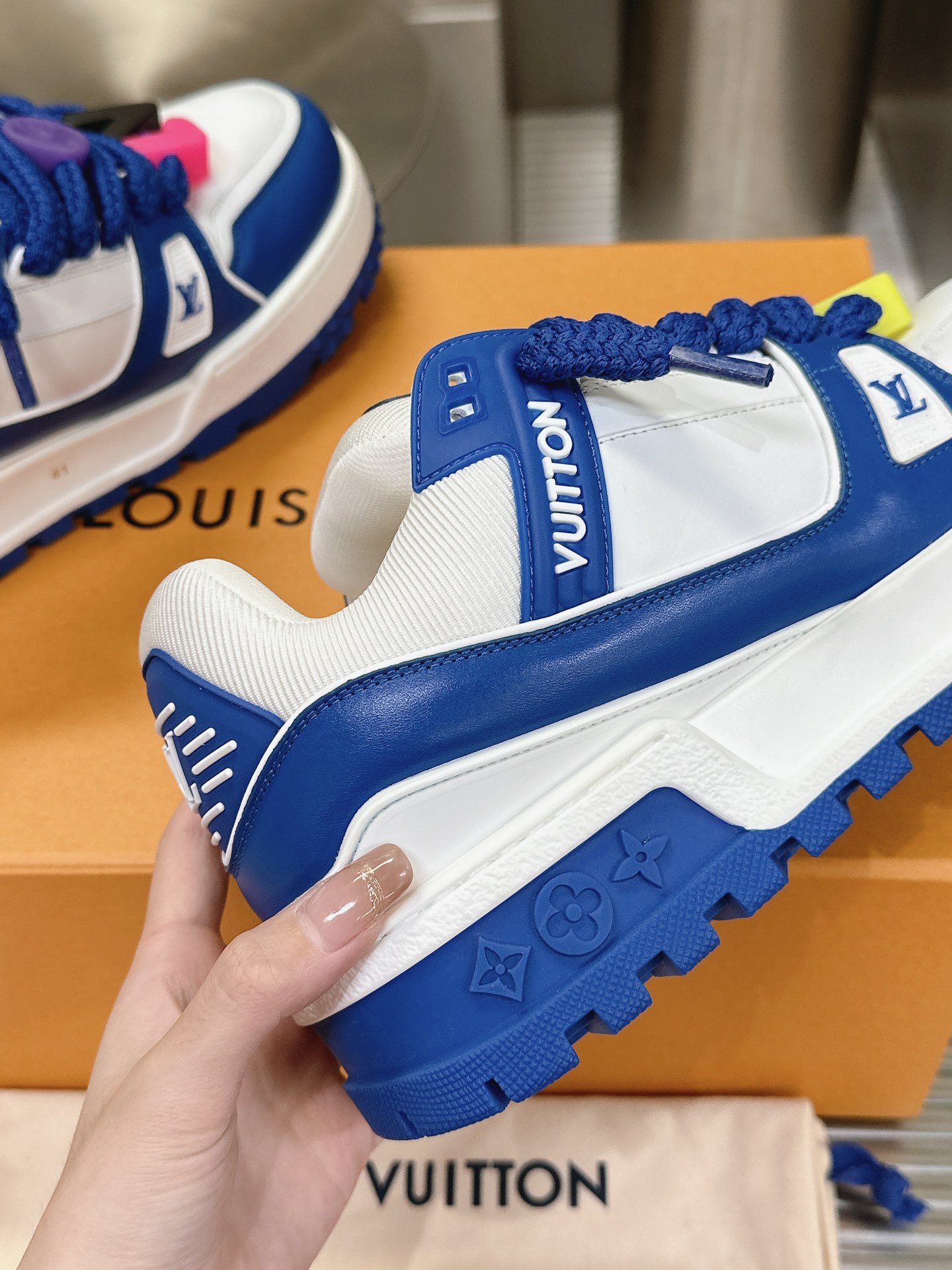 这款鞋子是AAAAA 1:1 质量 (非常棒). 使用了和原版一模一样的材料. 商标部分也保持了和路易威登/Louis Vuitton一样. 图片拍摄是实物鞋子拍摄, 您所收到的实物保证和我们图片一模一样.