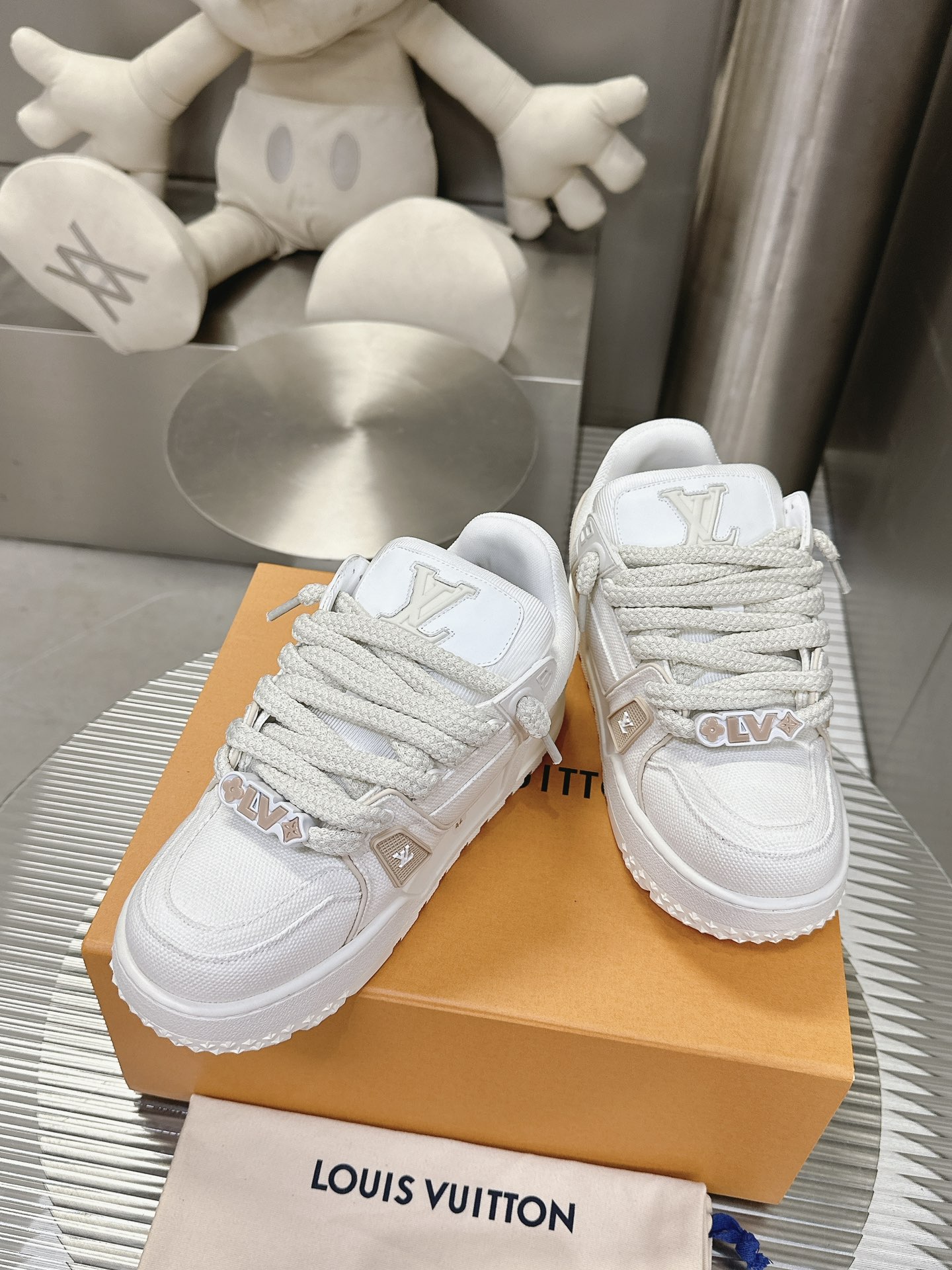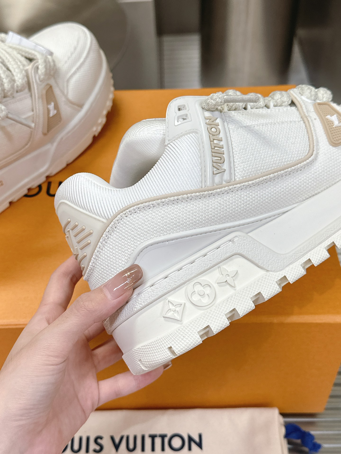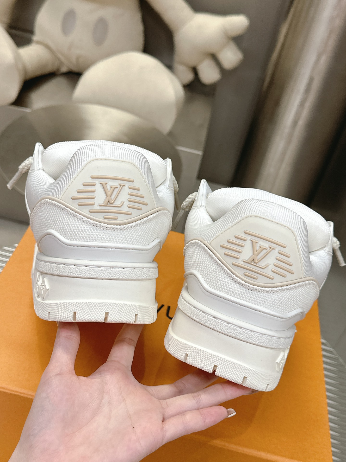 这款鞋子是AAAAA 1:1 质量 (非常棒). 使用了和原版一模一样的材料. 商标部分也保持了和路易威登/Louis Vuitton一样. 图片拍摄是实物鞋子拍摄, 您所收到的实物保证和我们图片一模一样.