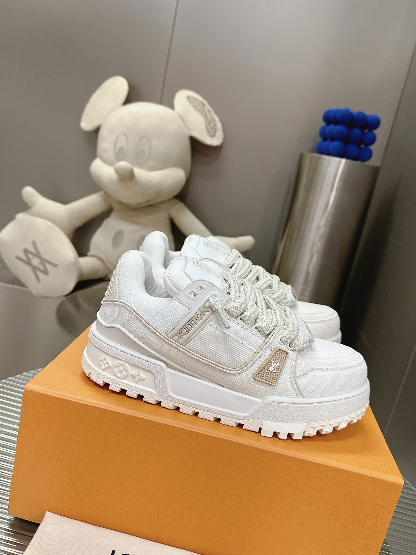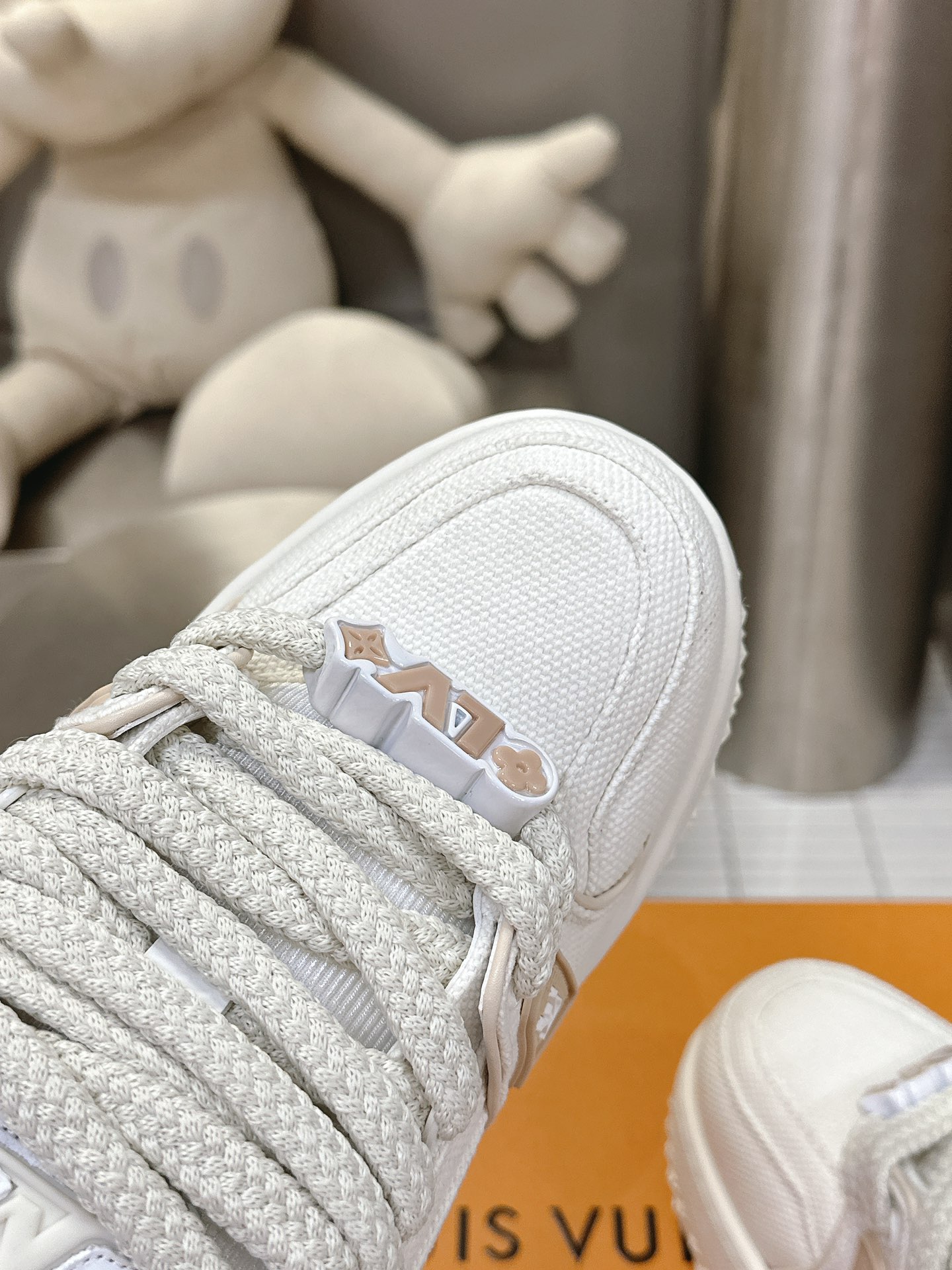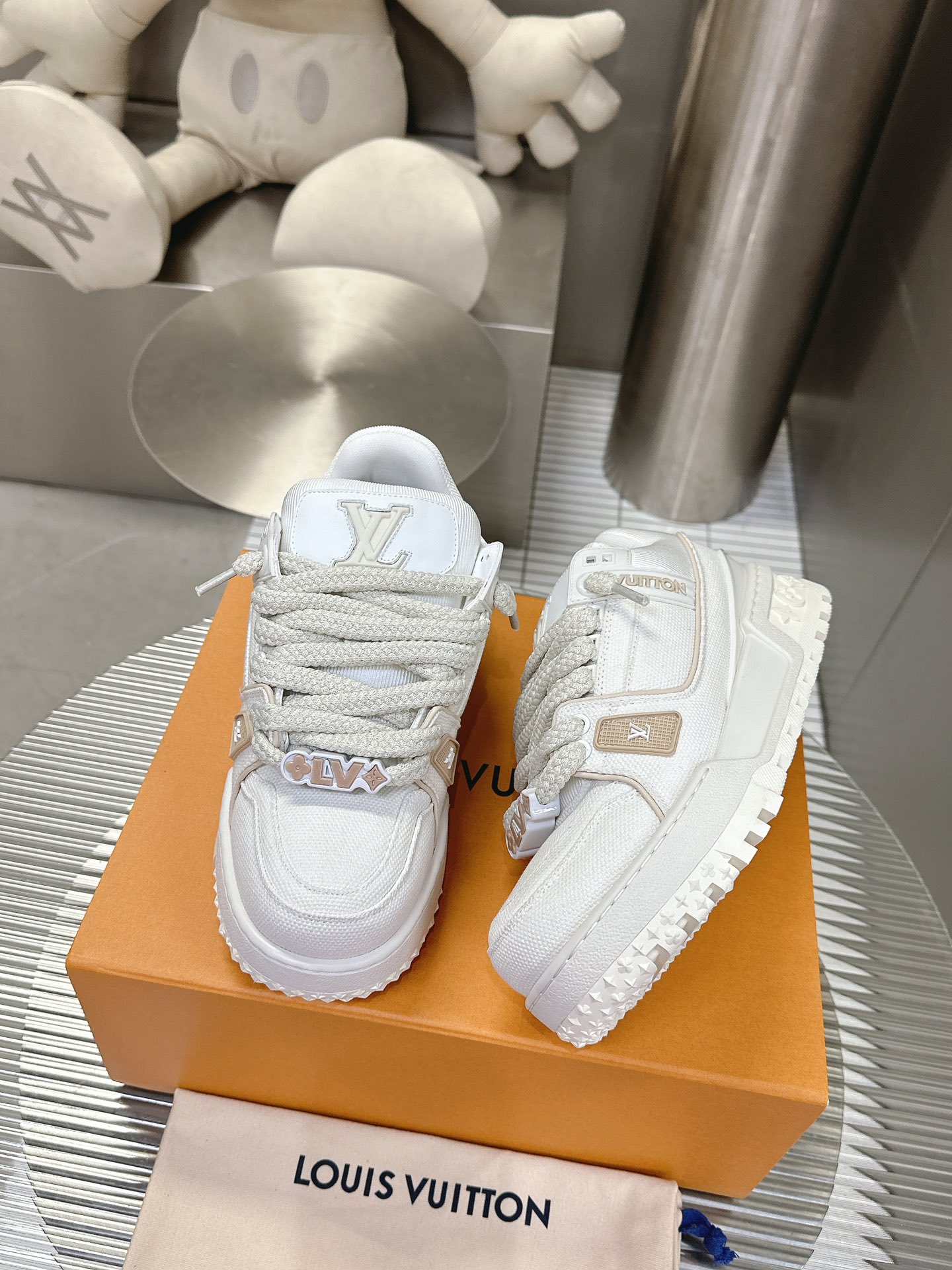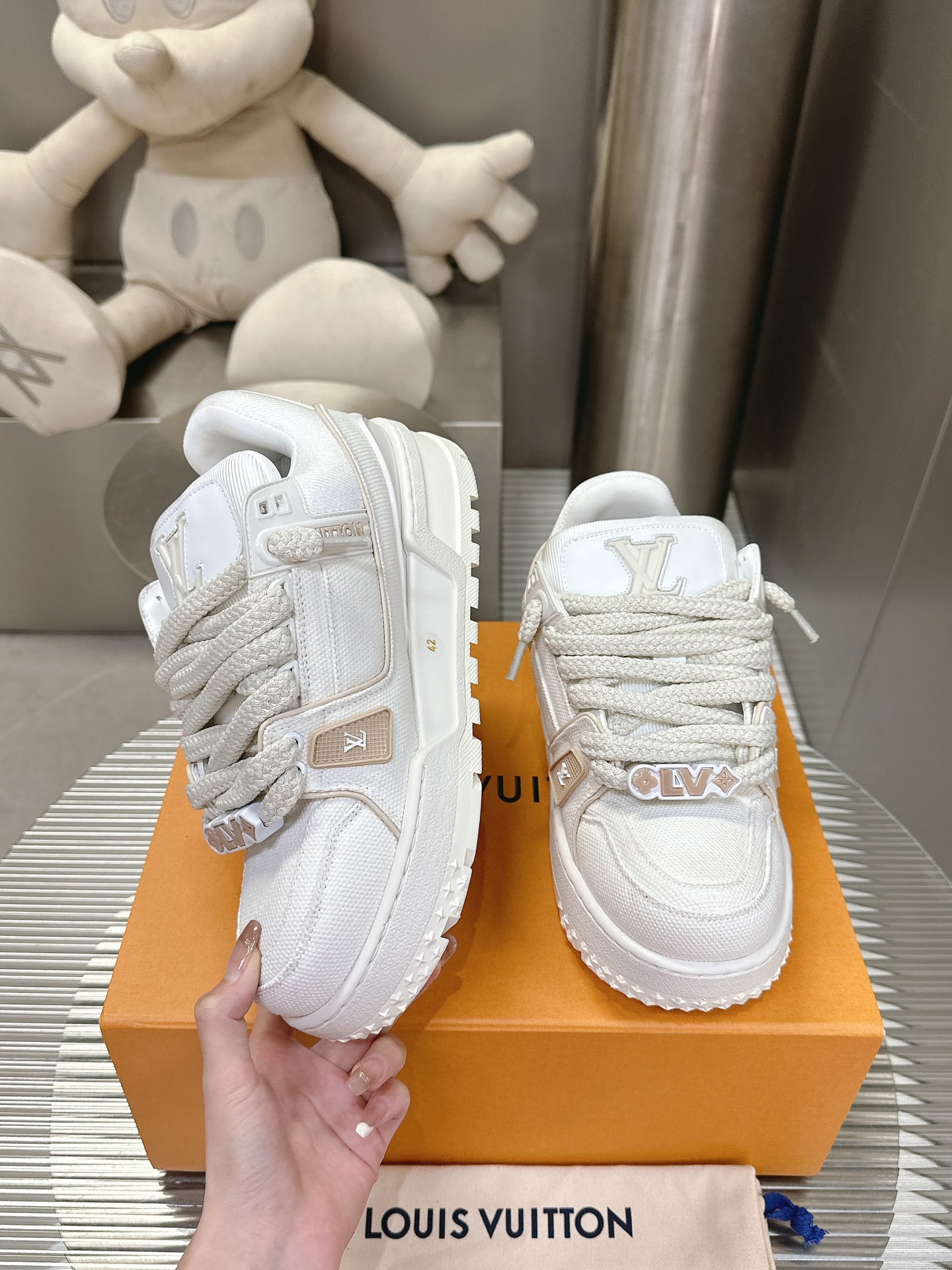 这款鞋子是AAAAA 1:1 质量 (非常棒). 使用了和原版一模一样的材料. 商标部分也保持了和路易威登/Louis Vuitton一样. 图片拍摄是实物鞋子拍摄, 您所收到的实物保证和我们图片一模一样.