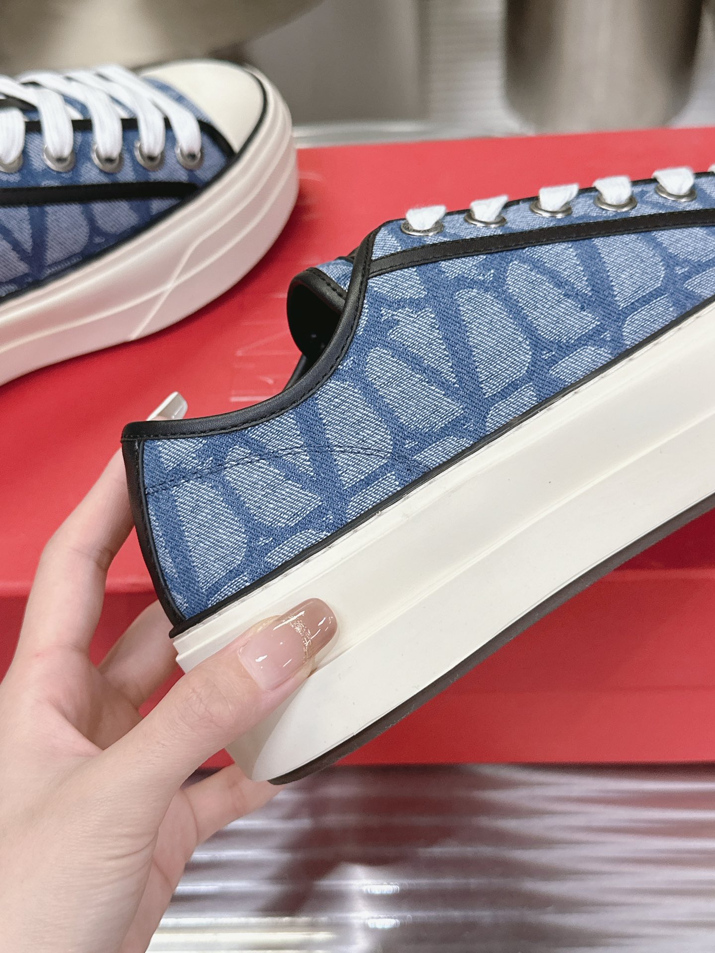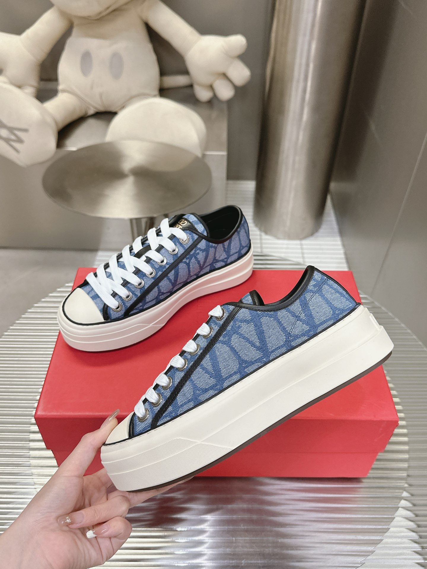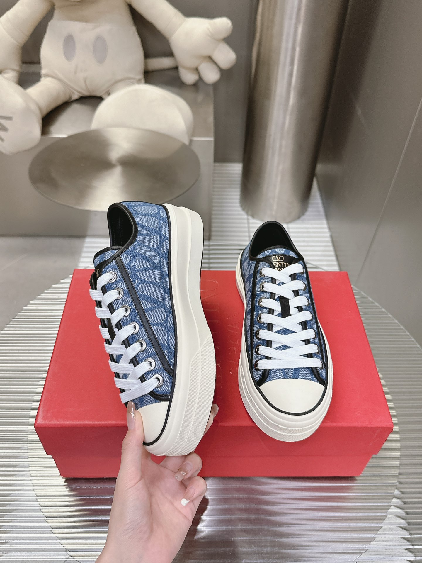 这款鞋子是AAAAA 1:1 质量 (非常棒). 使用了和原版一模一样的材料. 商标部分也保持了和华伦天奴/Valentino一样. 图片拍摄是实物鞋子拍摄, 您所收到的实物保证和我们图片一模一样.